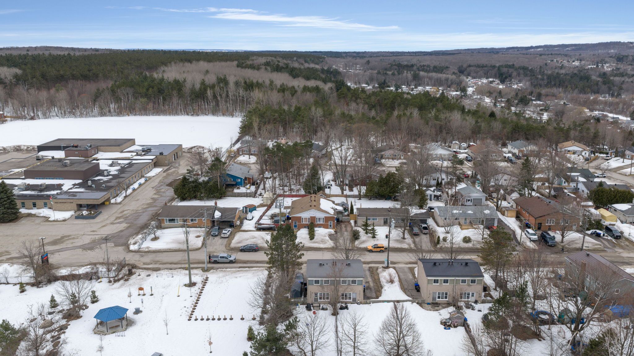 Welcome to this charming semi-detached home ideally located in a peaceful, family-friendly neighbourhood in penetanguishene. Perfectly positioned across the street from martin valley park, this home offers the perfect blend of quiet living and everyday convenience. Imagine stepping outside your front door to green space and playgrounds-an ideal setting for families, morning strolls, or relaxing evenings outdoors. Inside, the fully finished basement offers incredible versatility with an in-law suite. This flexible space is perfect for extended family, guests, or potential rental income, making the home both practical and investment-friendly. Families will appreciate the home's close proximity to three schools, making busy mornings simple and convenient. You'll also enjoy being just a short drive from the beautiful waterfront and vibrant downtown core of penetanguishene, where you can explore marinas, local shops, restaurants, and scenic shoreline views. The property features a spacious backyard that feels like a private retreat, highlighted by mature trees that provide both shade and natural beauty throughout the seasons. Whether you're hosting summer barbecues, letting the kids play freely, or simply unwinding after a long day, this backyard offers the perfect outdoor escape. A standout feature is the impressive 10 x 12 cabana, complete with its own dedicated 15-amp electrical panel-ideal for a workshop, hobby space, outdoor entertaining lounge, or even a creative studio. With its unbeatable park-side location, spacious yard, versatile living spaces, and proximity to schools and the waterfront, this home presents a wonderful opportunity to enjoy the relaxed lifestyle and natural beauty that penetanguishene is known for.