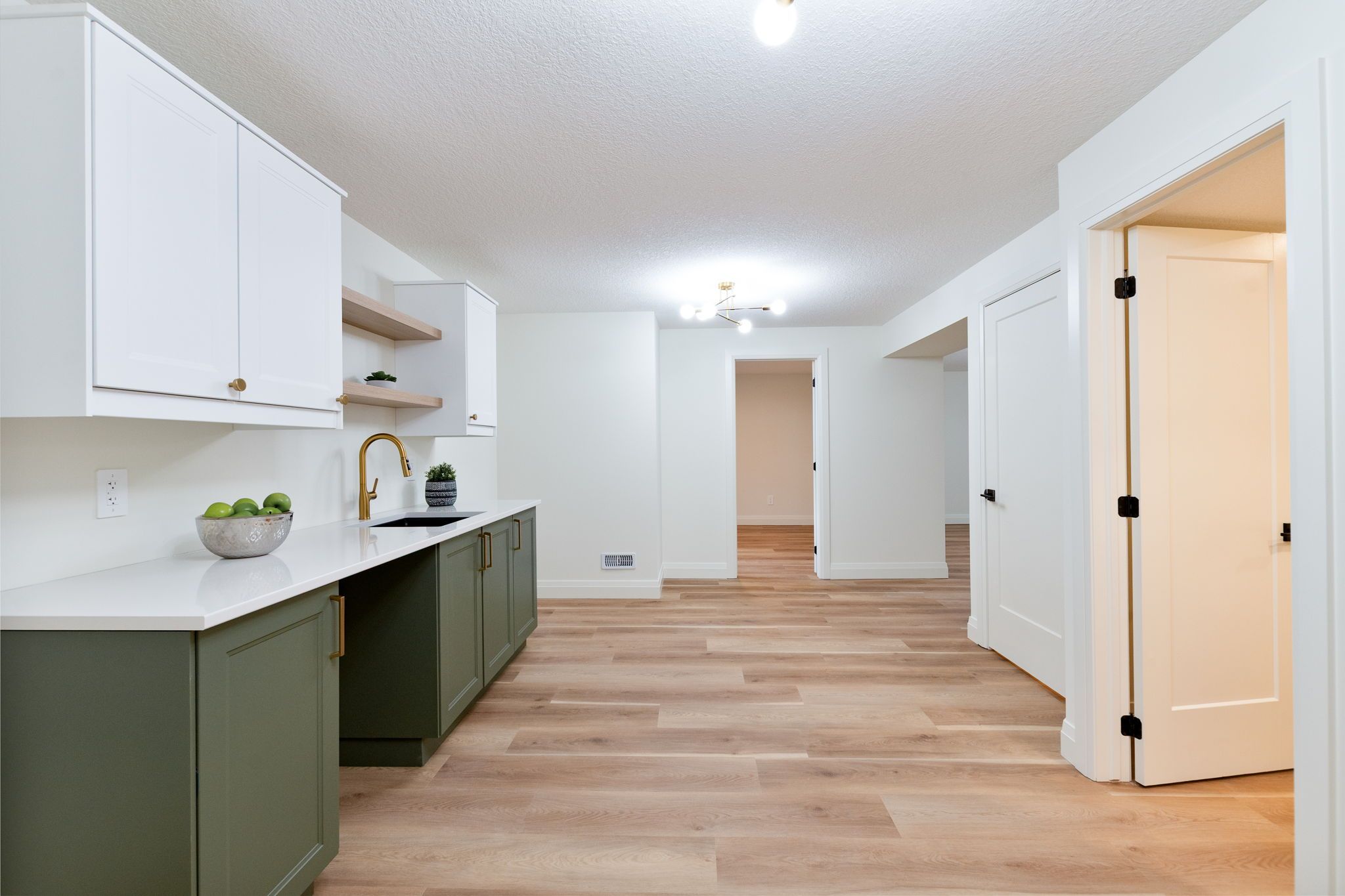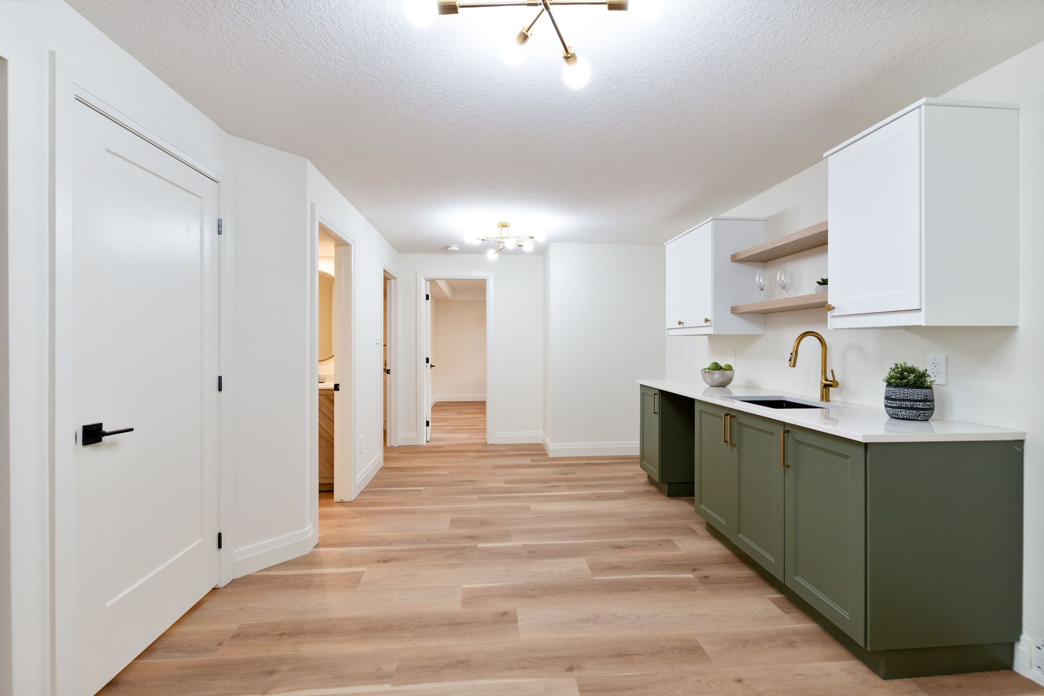 • Fully finished basement includes kitchenette, two bedrooms, and family room.