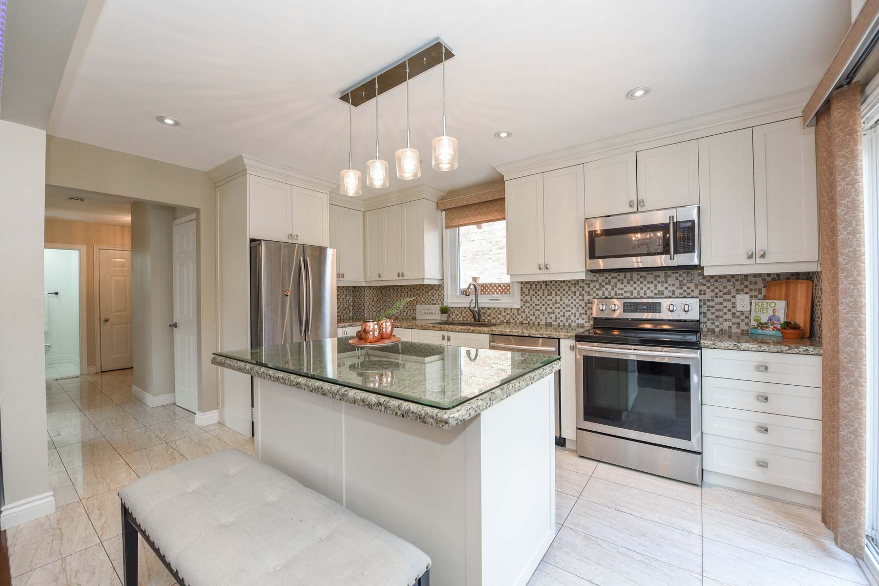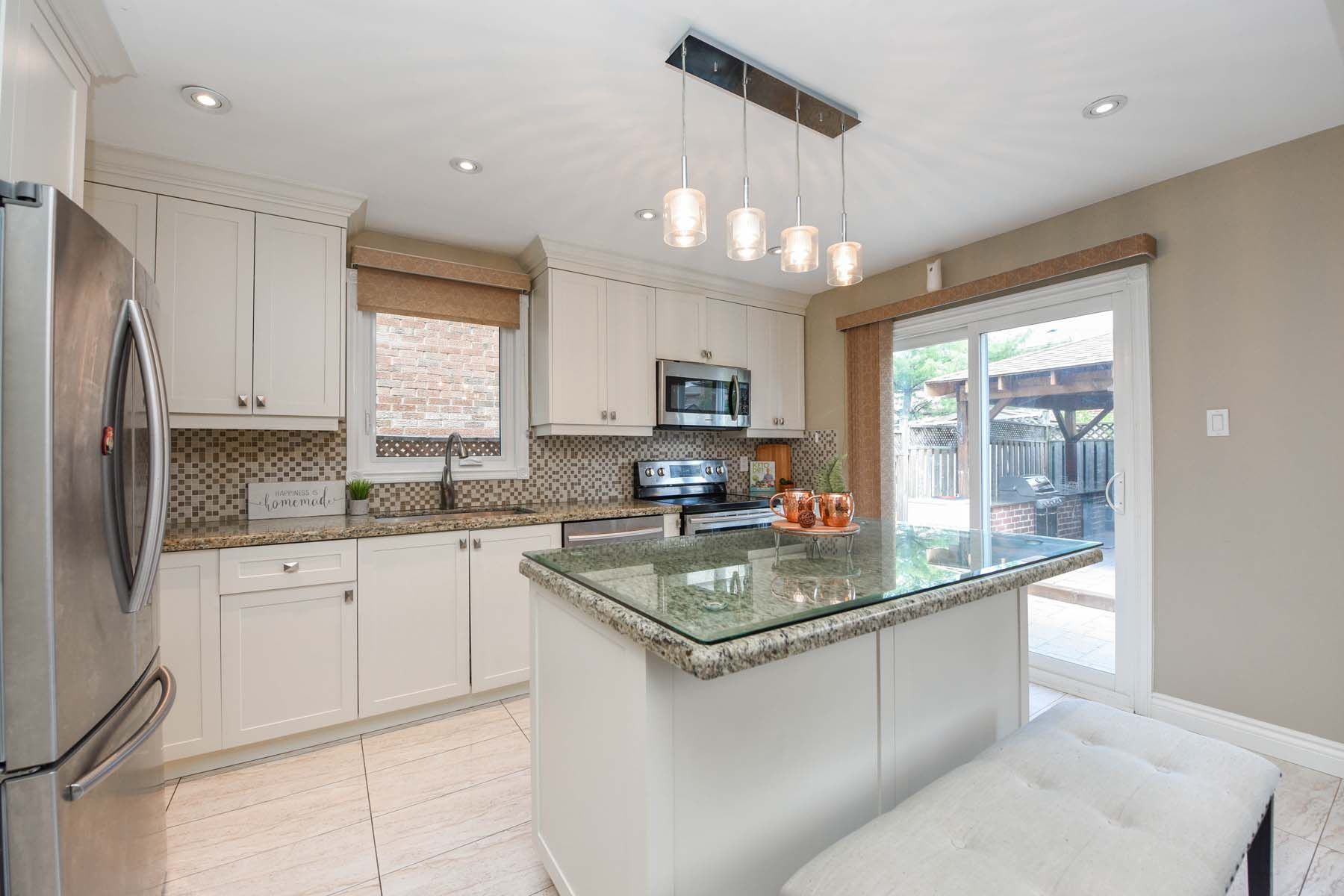 Gorgeous all brick detached located on "cul de sac"! ( rental potential ) bachelor basement apartment with 3 pc bath with glass shower enclosure + rainhead prof reno'd top to bottom w/superior workmanship & materials. New open concept kit w/ soft close cabinets/crown moulding, granite counter tops, deep undermount sink, centre island, breakfast bar, glass mosaic b/splash, task + potlights. 4 pce bath , s/s appl, bsmt fireplace, beautiful porch, storage in garage, new & big windows.