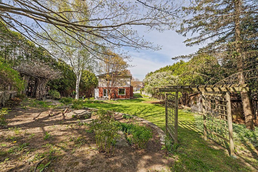 • Expansive backyard garden oasis attracting wildlife and blooming flowers.