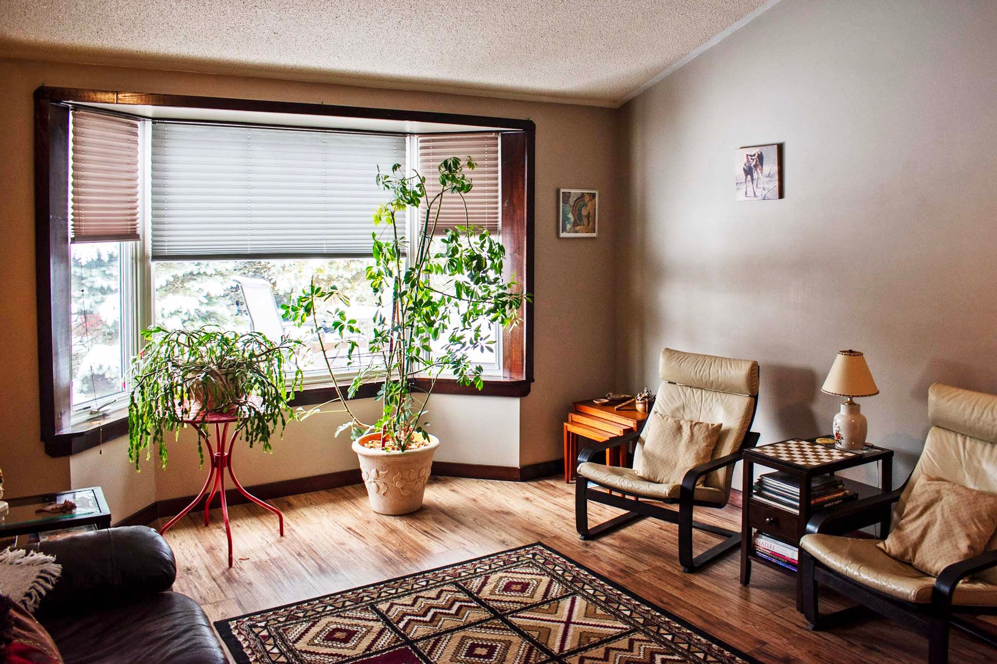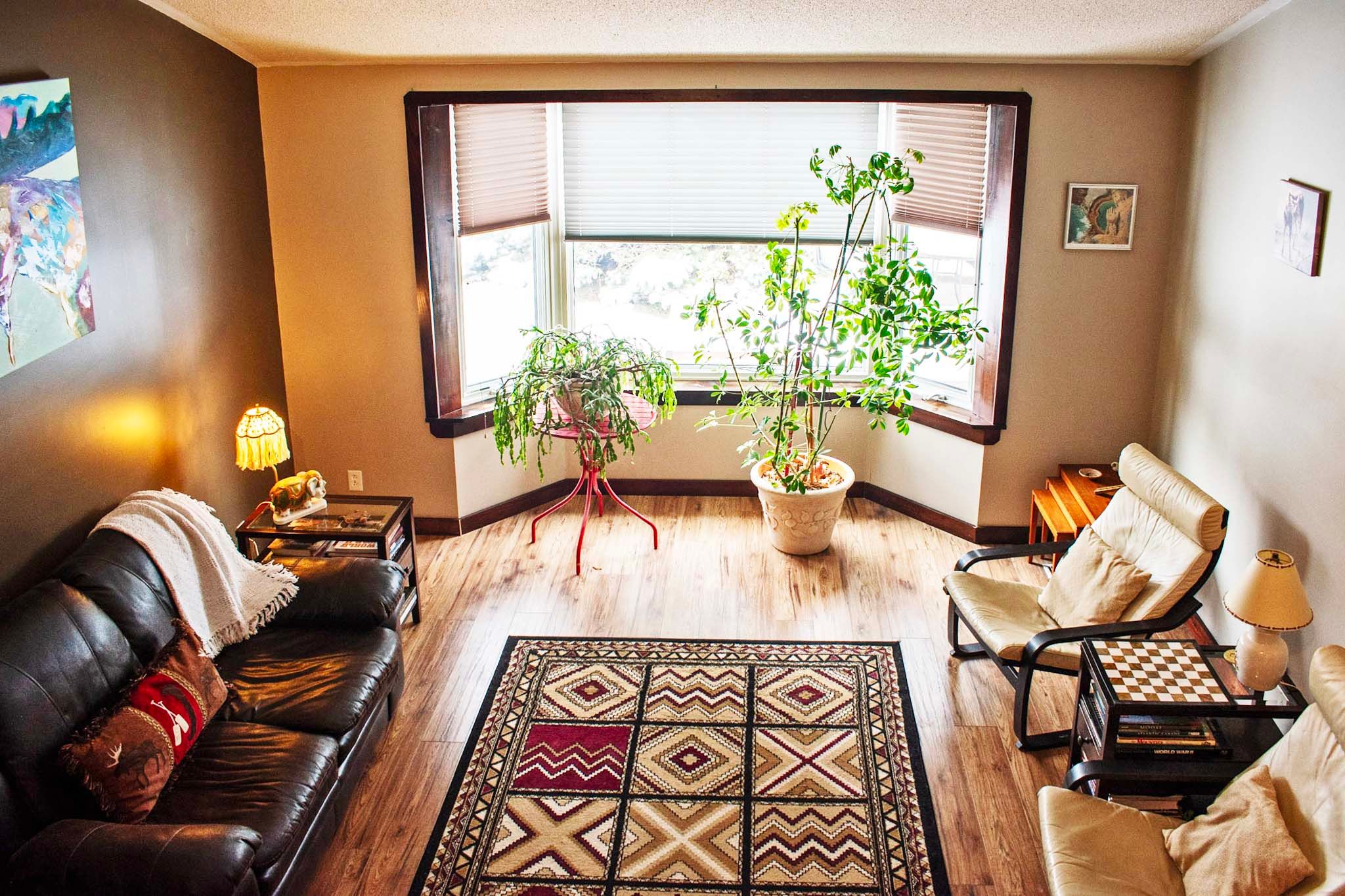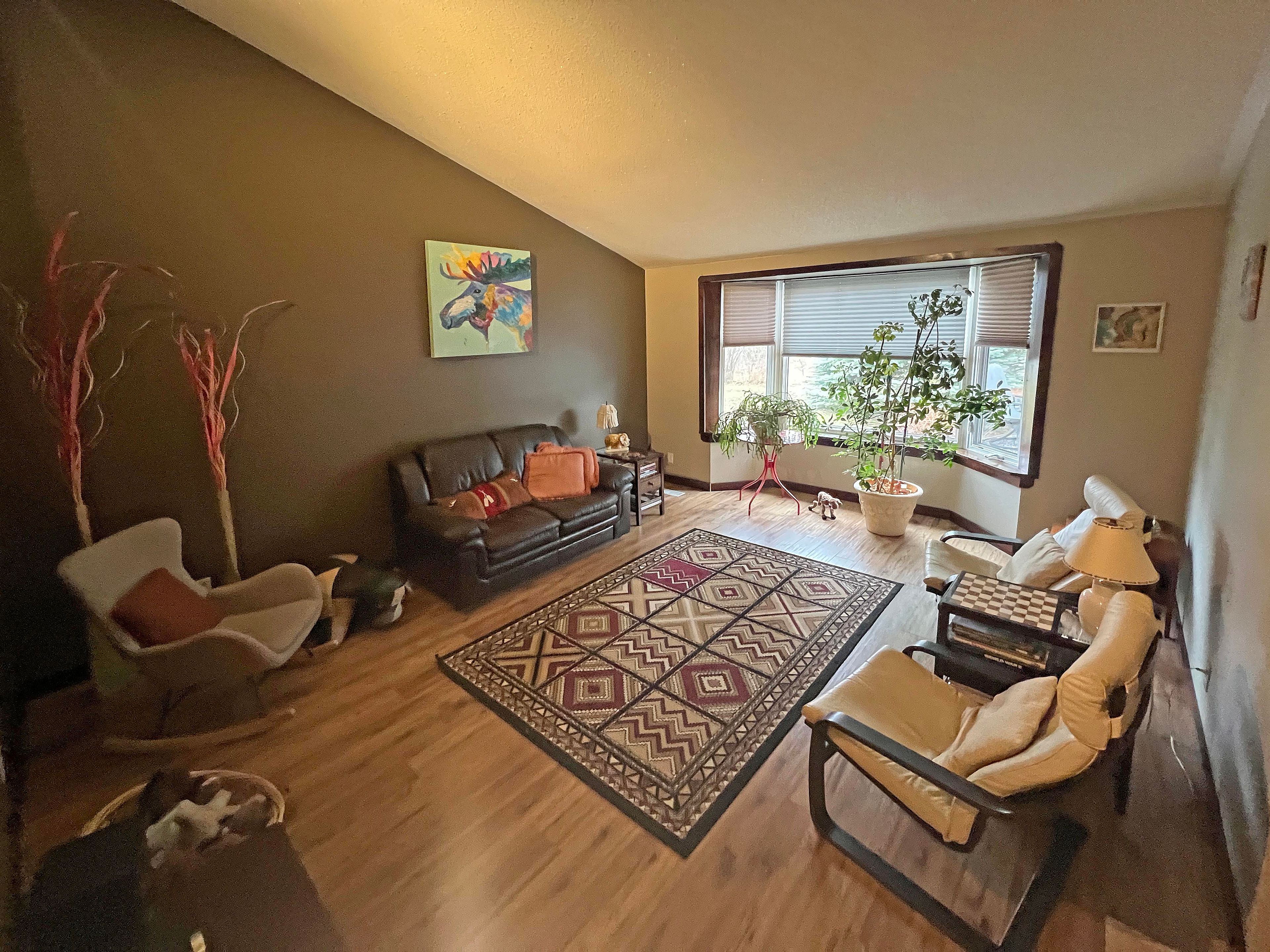 • Vaulted ceiling in living room creates an inviting atmosphere.