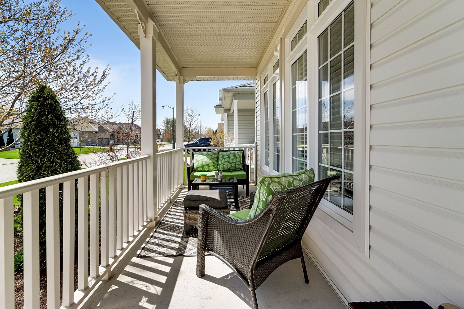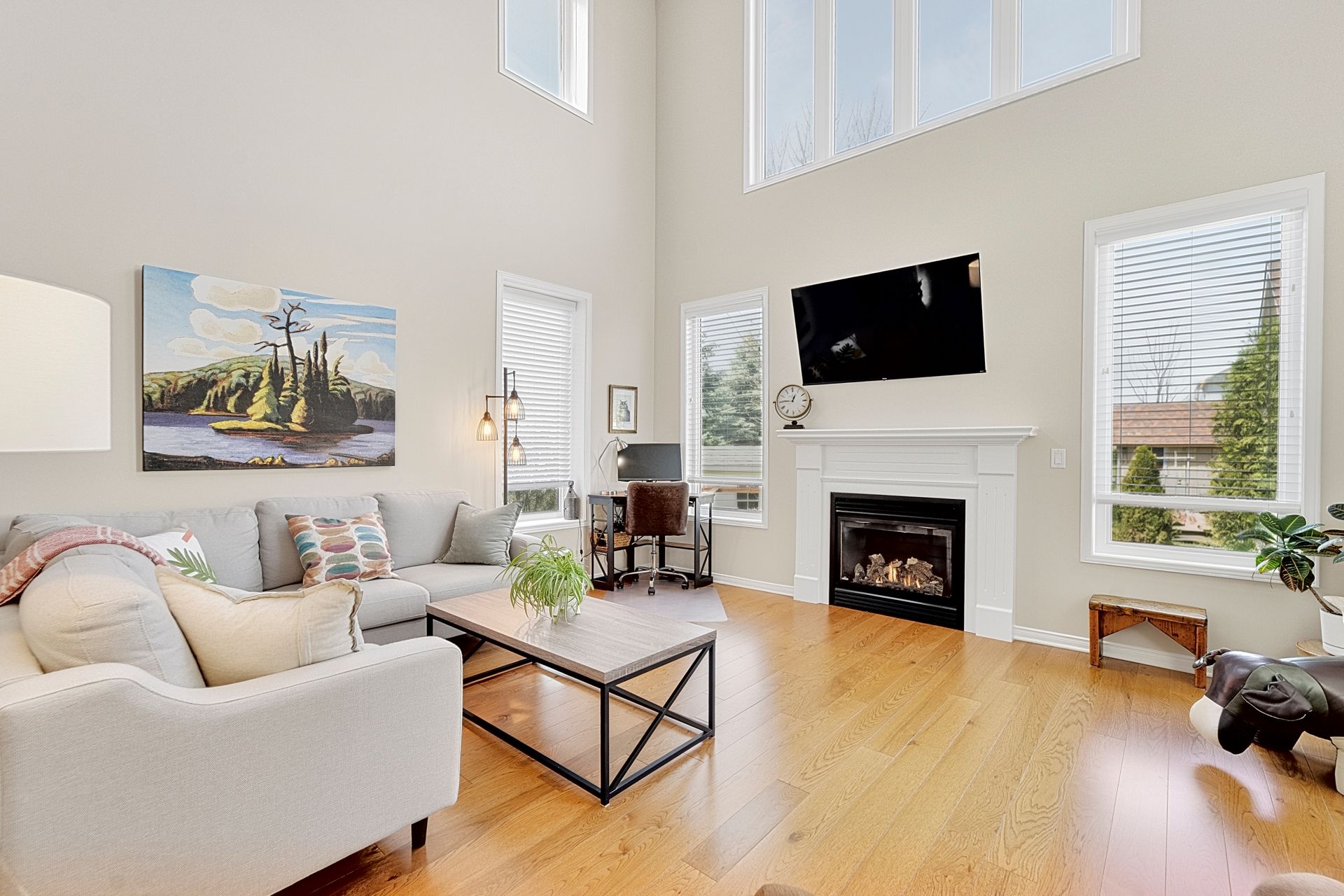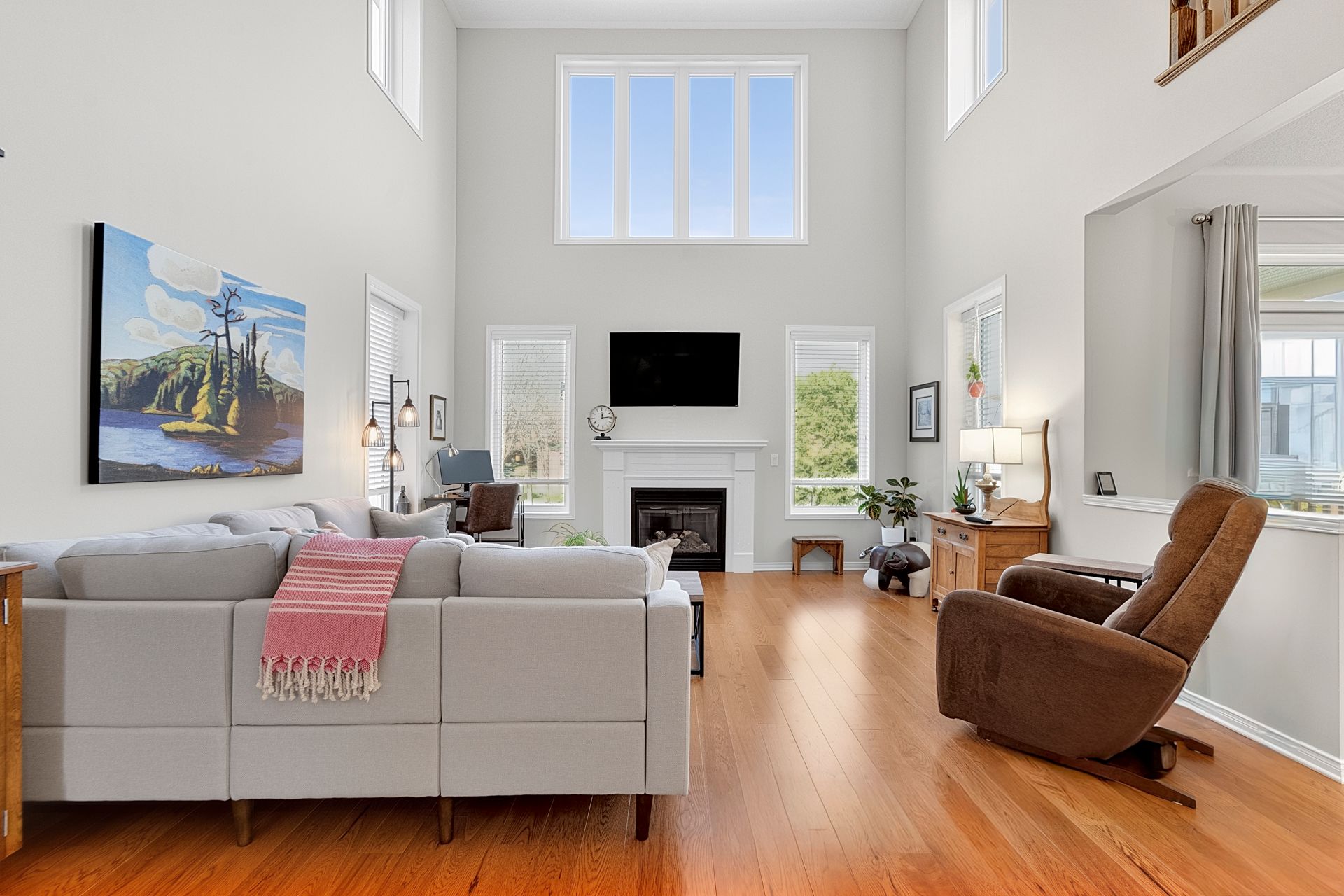 • Open-concept design with cathedral ceilings and oversized windows for natural light.