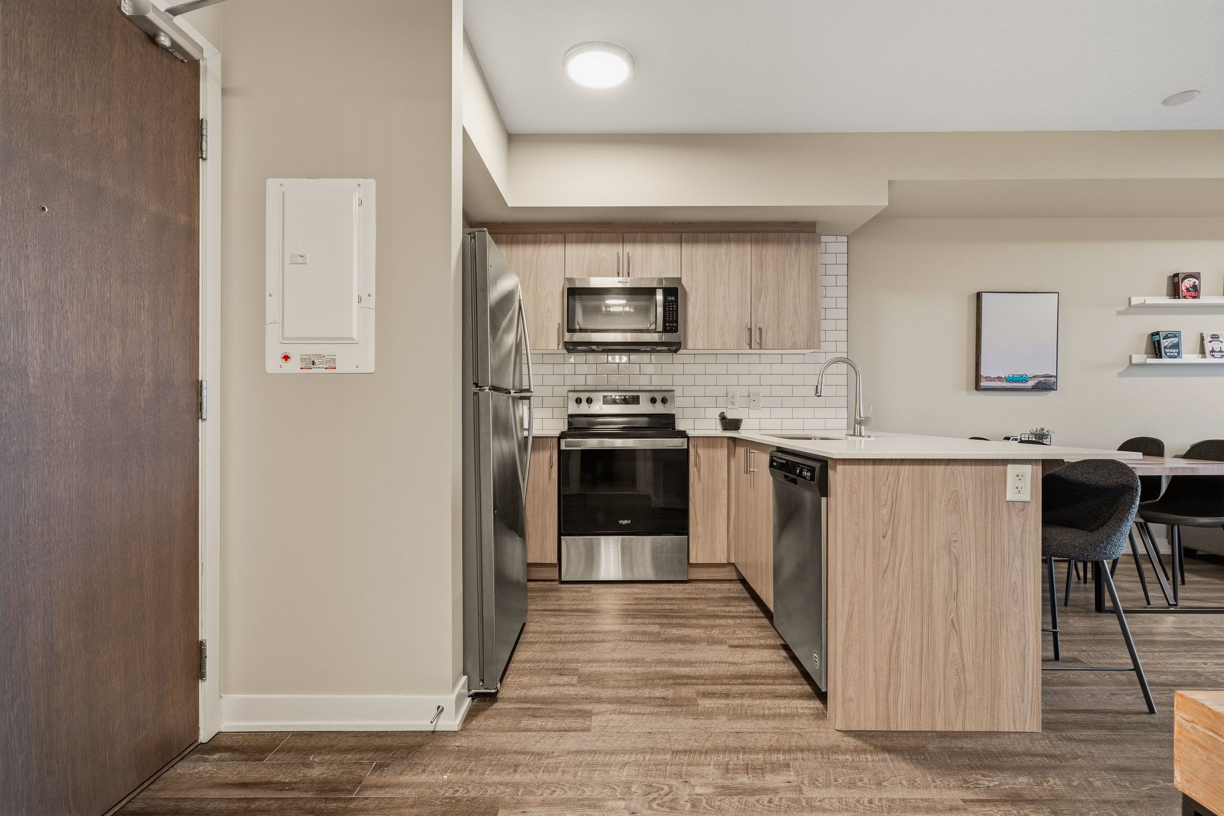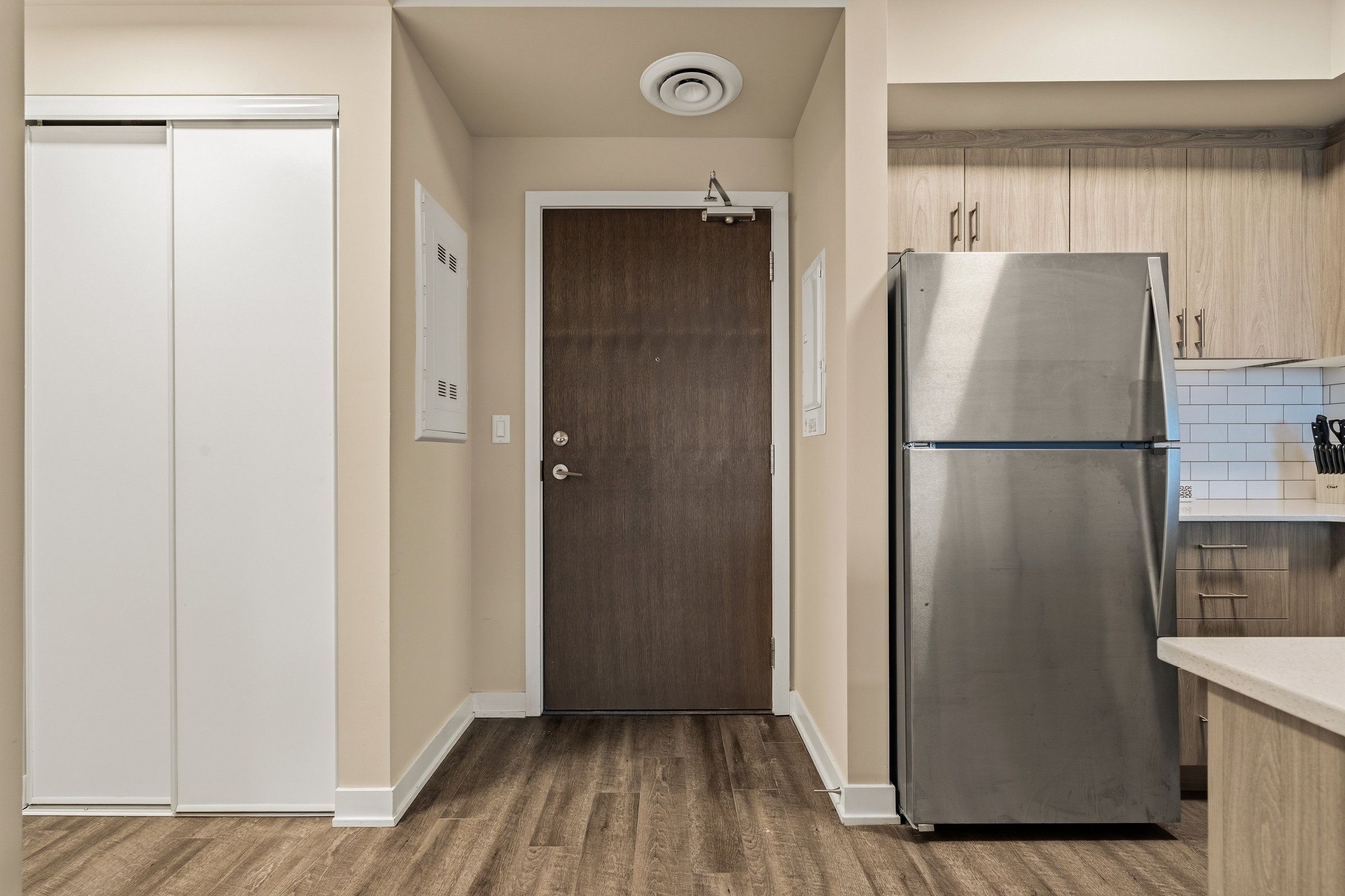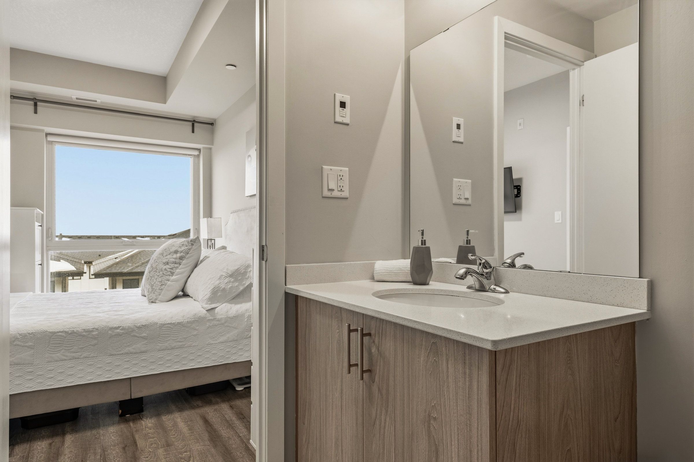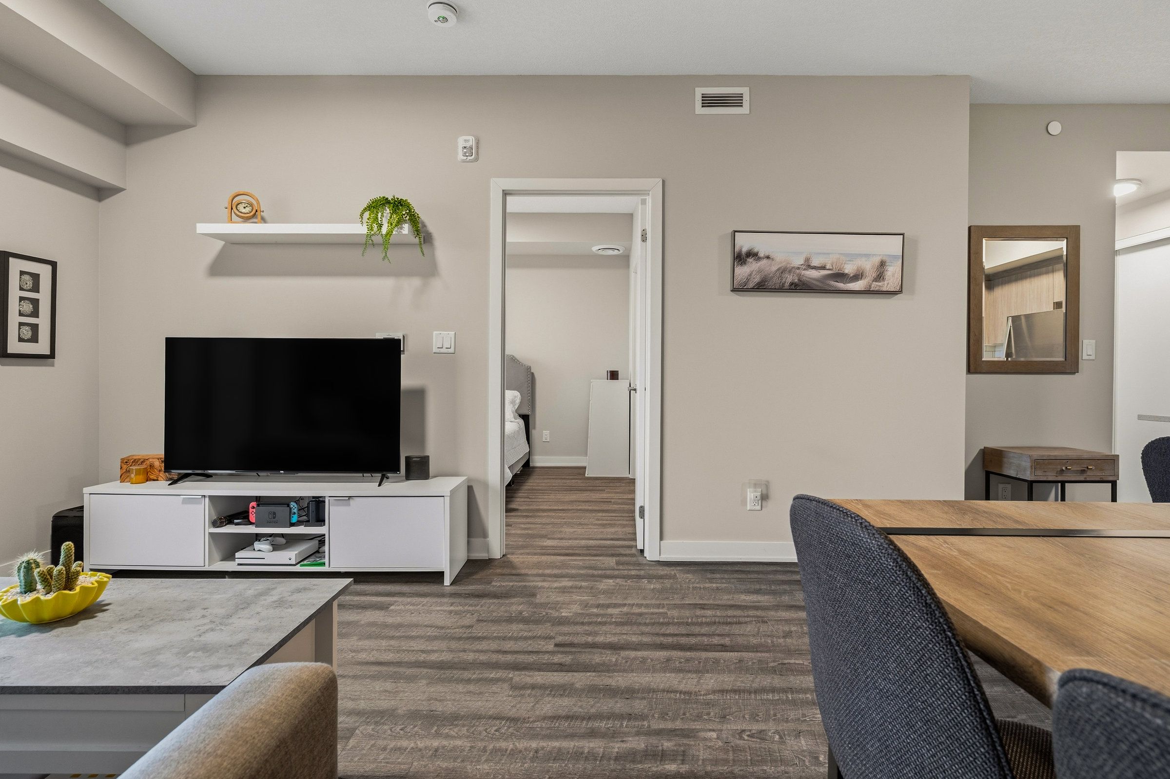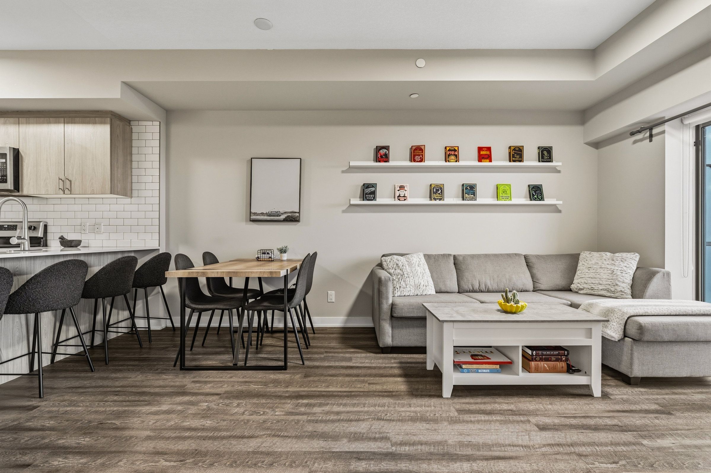 Step into elevated living in this recently built, beautifully appointed condo in a fantastic ancaster community. Designed with style and comfort in mind, this 1-bedroom, 1. 5-bath suite delivers the perfect blend of modern luxury and everyday ease. The open-concept layout feels airy and inviting, anchored by a stunning chef-inspired kitchen featuring sleek stainless steel appliances, quartz countertops, subway tile backsplash, contemporary cabinetry, and a generous breakfast bar made for casual mornings or hosting friends. Soaring 9-foot ceilings and expansive windows flood the living space with natural light, creating a bright, sophisticated atmosphere throughout. The primary retreat is a true standout, complete with a large picture window, a spa-like ensuite, and a walk-in closet outfitted with a custom organization system. In-suite laundry adds everyday convenience, while your private balcony offers the perfect spot to unwind and catch sunset views. Enjoy a carefree lifestyle with exceptional building amenities, including a fully equipped fitness centre, dedicated yoga studio, and an impressive party room with full kitchen that opens onto a landscaped terrace featuring bbqs and cozy gas fire tables. Underground parking, a private locker, and access to two ev charging stations add even more value. Ideally located just minutes from shopping, dining, trails, community centres, and only a short drive to mcmaster and redeemer university, this upgraded, move-in-ready condo is your opportunity to enjoy refined, maintenance-free living from day one.