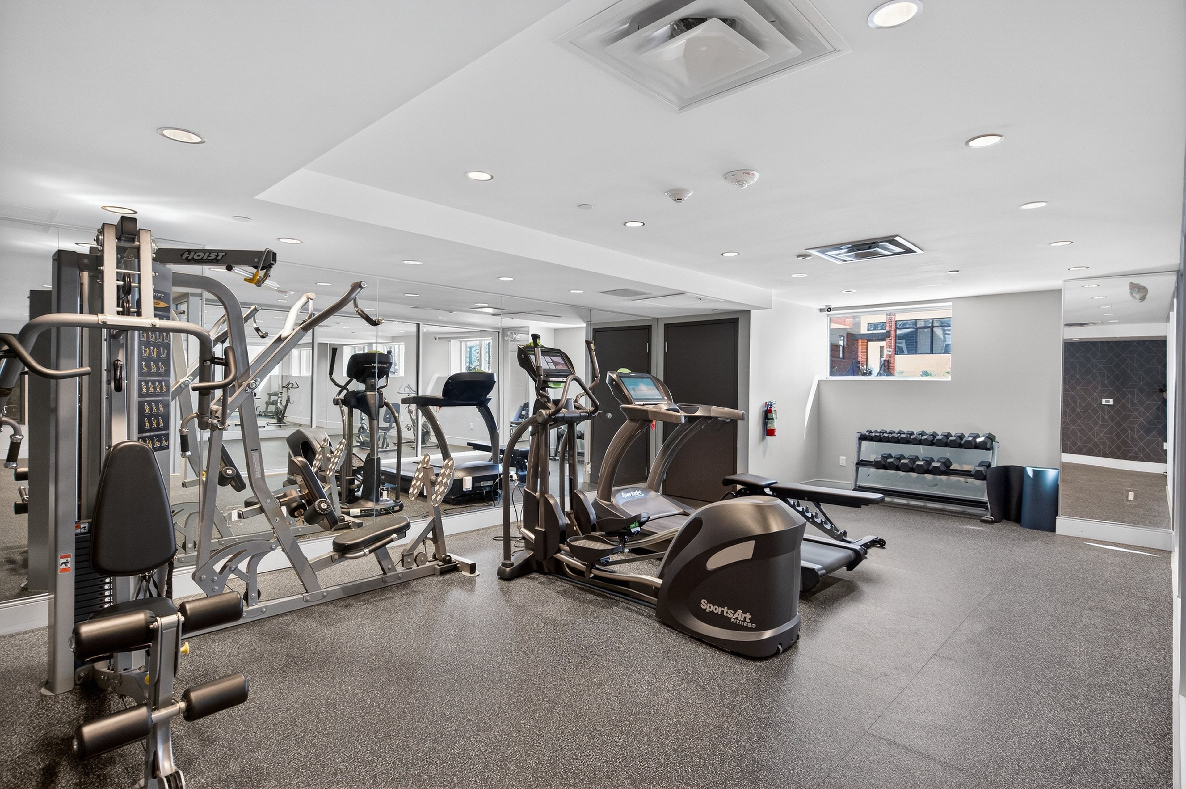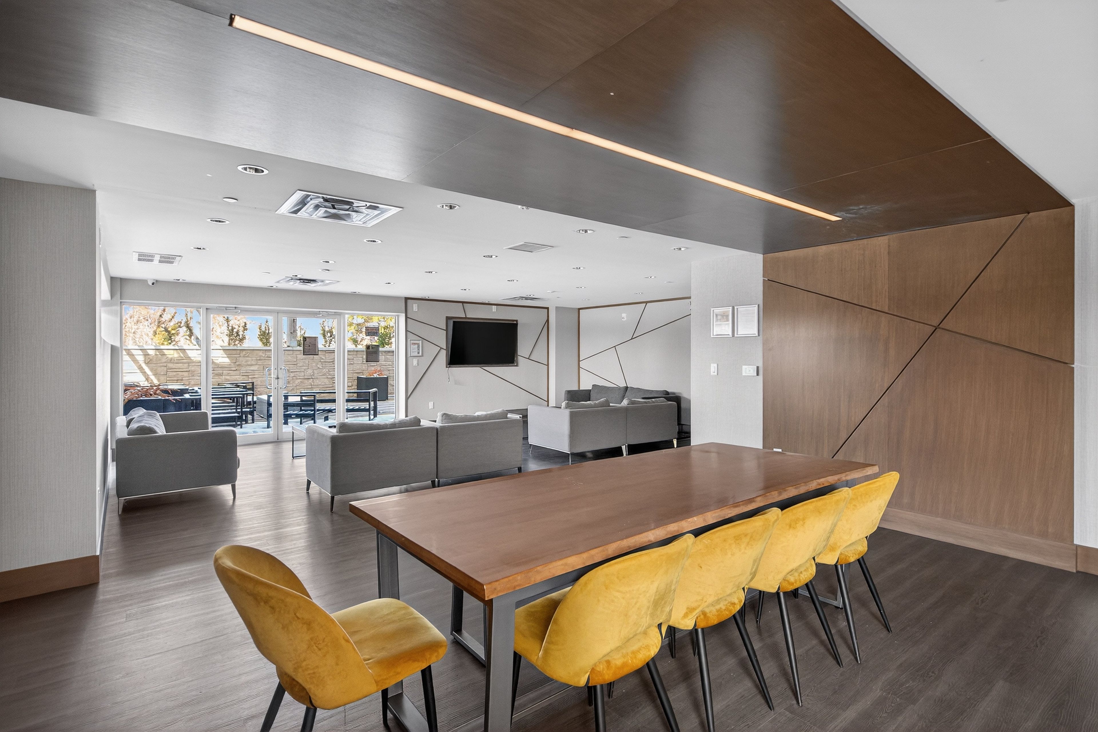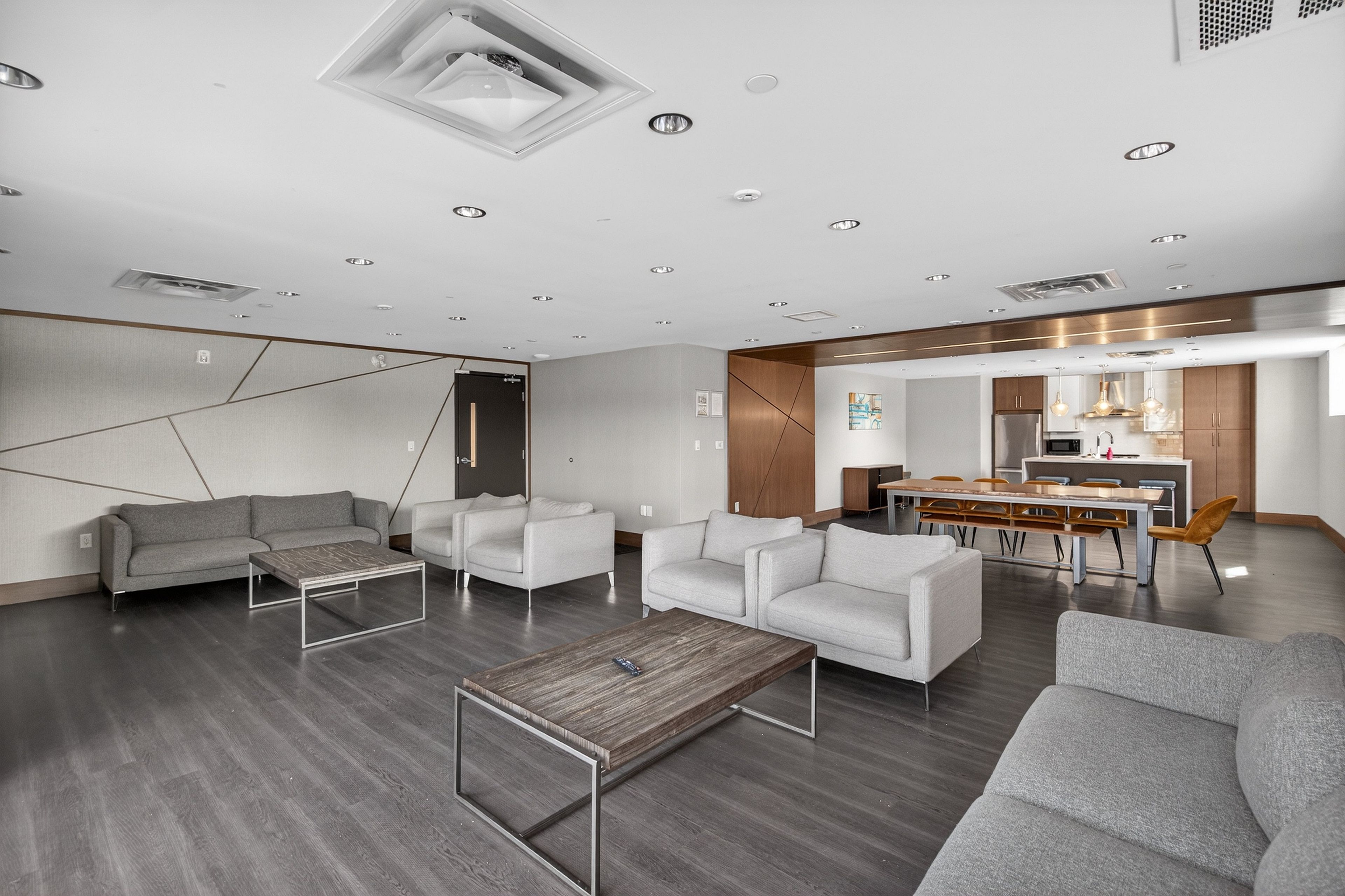 • Access to upscale amenities including fitness center and elegant party lounge.