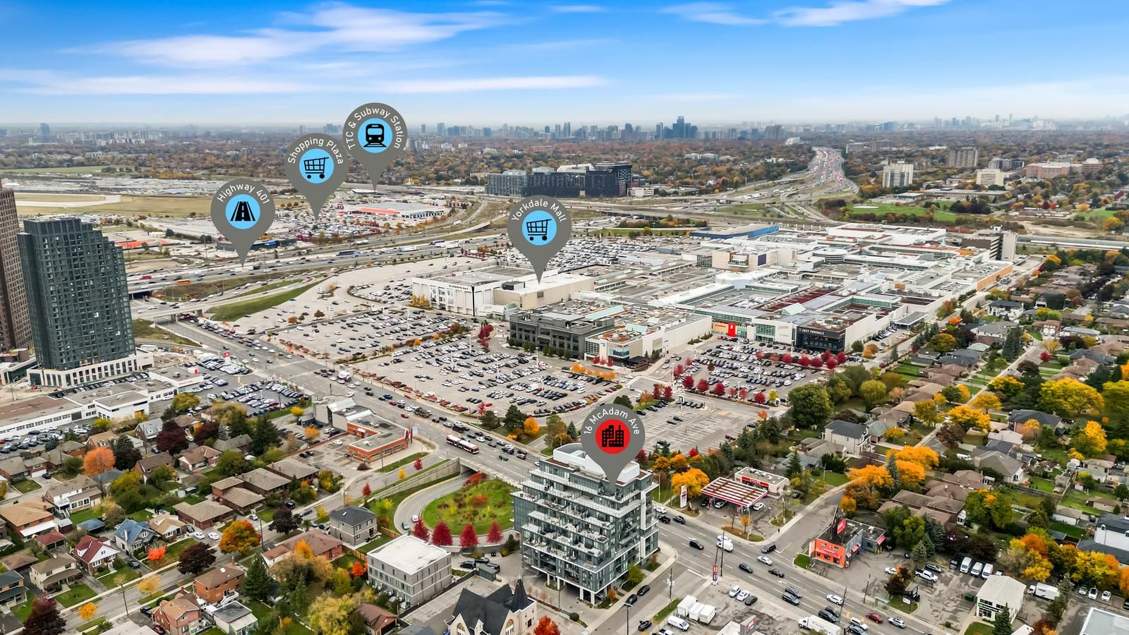 Fully renovated, spacious 2 bed, 2 bath condo with massive 400sqft private terrace across from yorkdale mall. Bright and functional 800 sq ft split-bedroom layout in a boutique mid-rise building, featuring floor-to-ceiling windows and a rare 400 sq ft private terrace with unobstructed views and full-day sun exposure. Open-concept living and dining area with a modern kitchen, spacious primary bedroom with ensuite, and a large laundry room with additional storage space. The split layout provides ideal separation and privacy between bedrooms. Includes underground parking and oversized locker. Prime location directly across from yorkdale mall, with easy access to hwy 401, subway and go transit, pearson airport, costco, home depot, and a variety of shops and restaurants. A unique opportunity to enjoy condo living with generous outdoor space and unbeatable convenience.