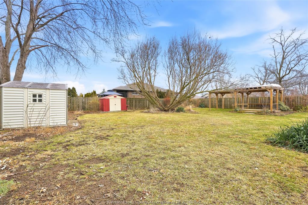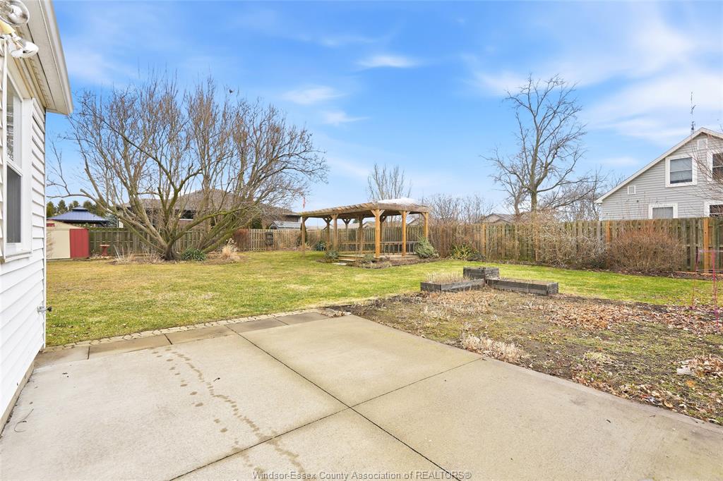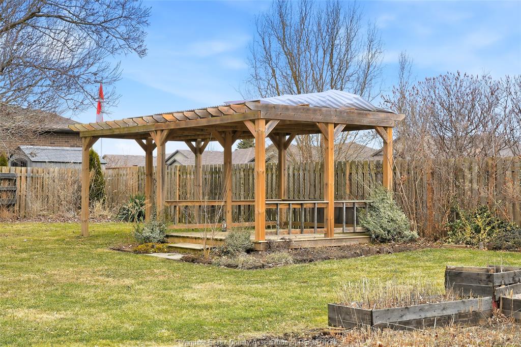 • Spacious fenced yard with mature gardens and a large pergola.