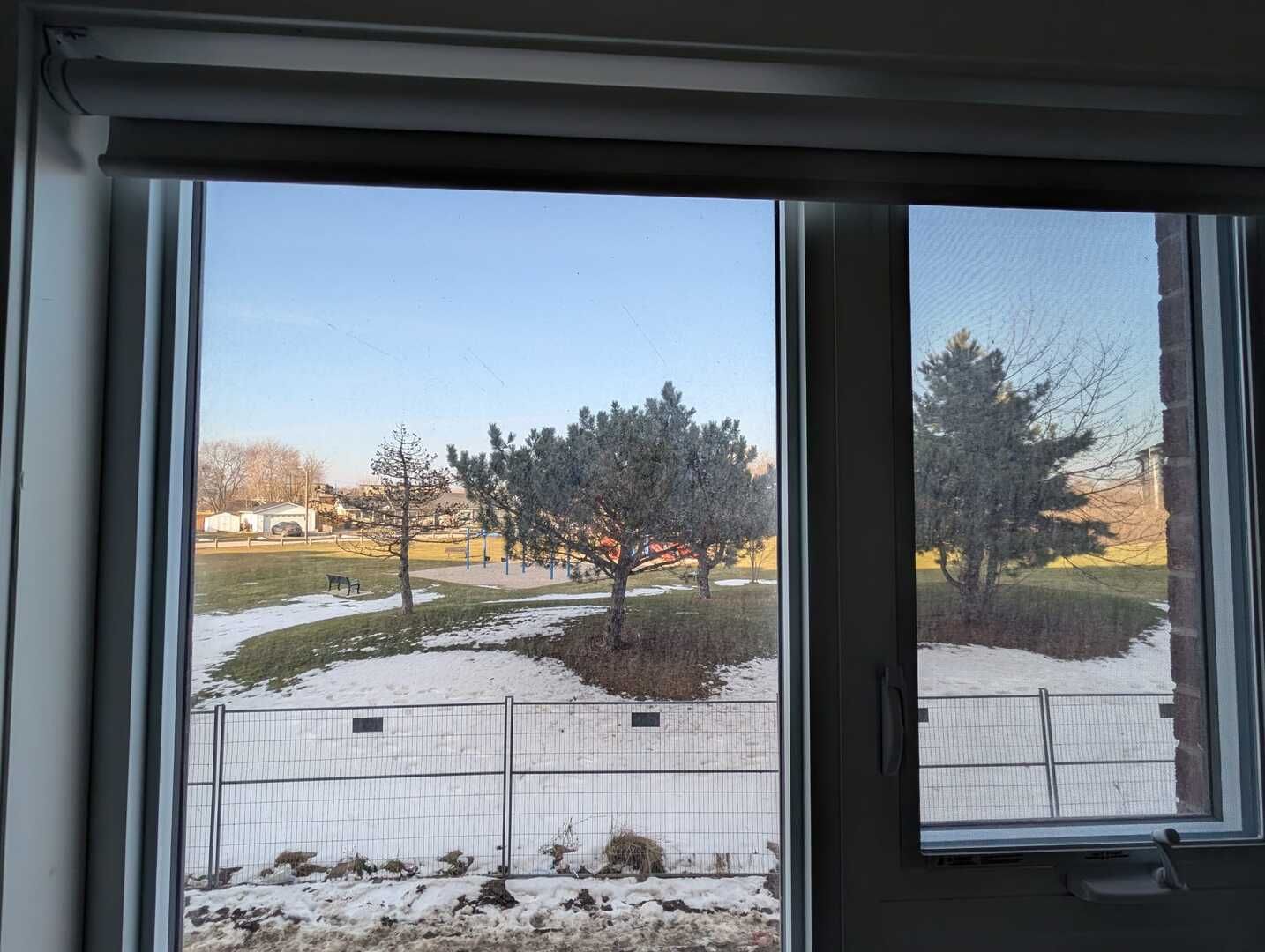 • Bright open-concept layout with large windows and peaceful park views.