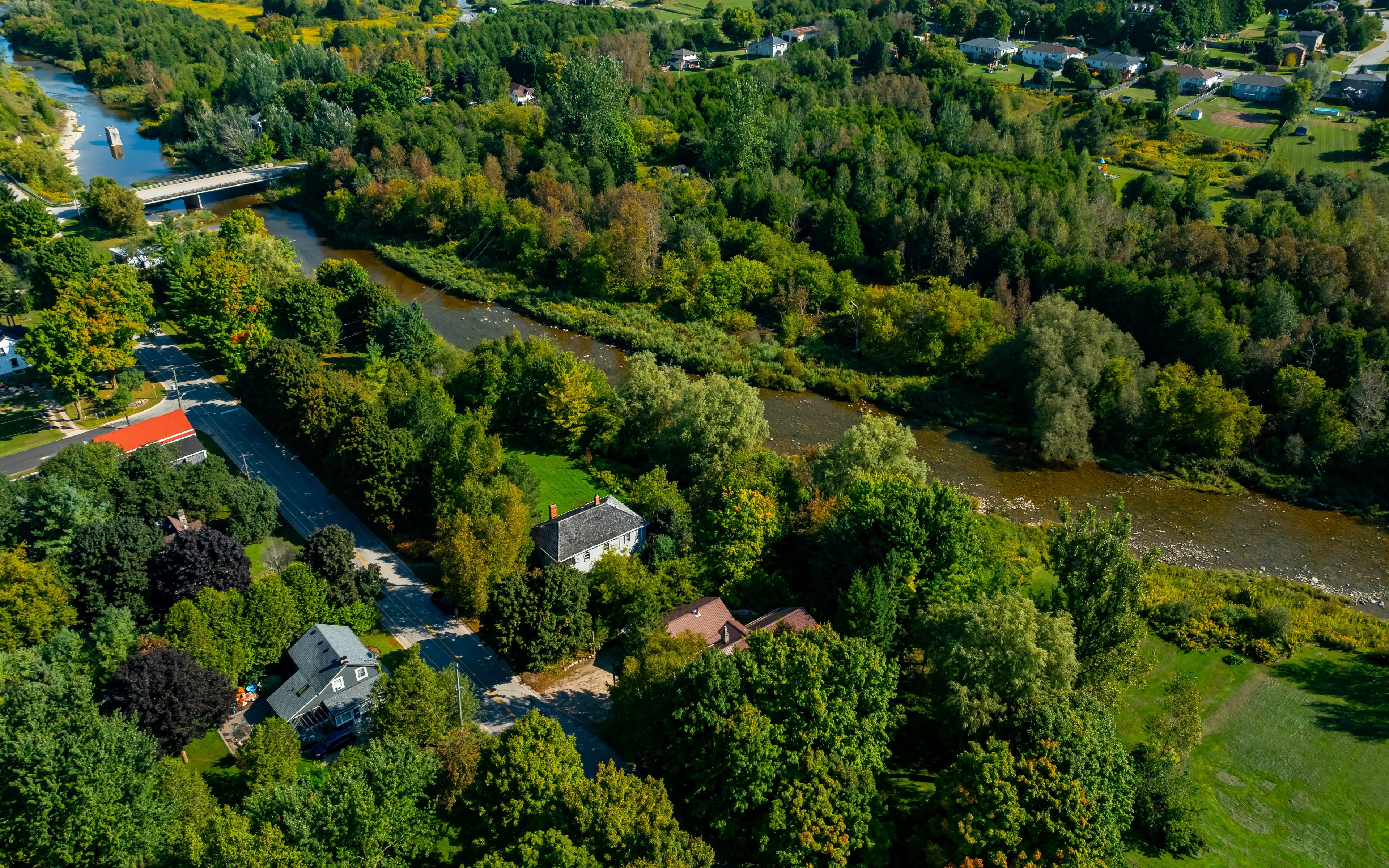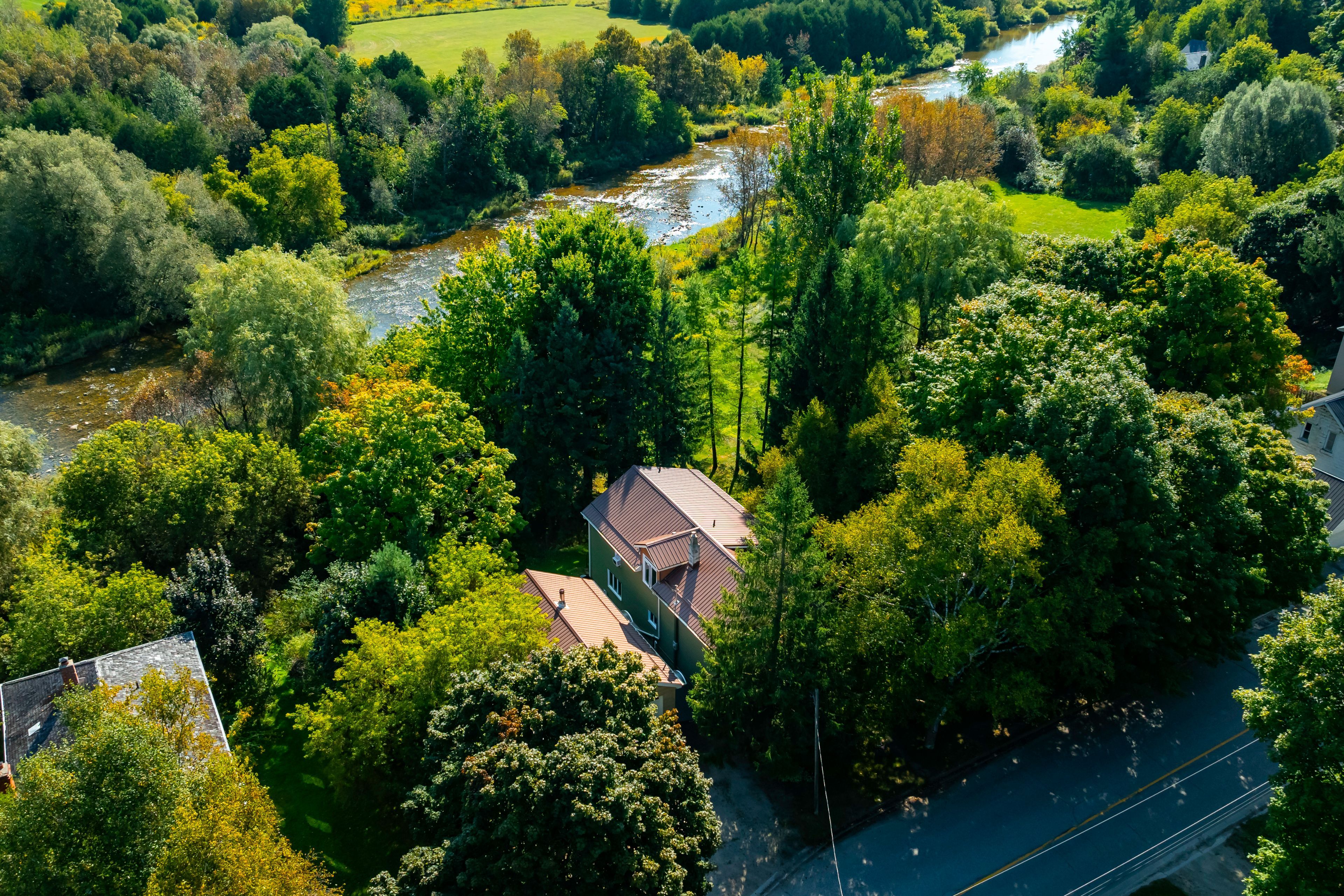 A home with a river view! Overlooking the grand river, this extensively updated century home, in the quiet hamlet of waldemar, has everything you've been searching for. The spacious main floor includes custom eat-in kitchen with bay window, wood cupboards offering tons of storage and tile backsplash. Living spaces on either side of the kitchen, each with one-of-a-kind features including beautiful oak barn beams, hand painted ceiling light feature, oversize trim and hardwood floors. 2 separate staircase lead upstairs. The primary suite is the highlight of the home with its private staircase, wall of windows overlooking beautiful nature, soaring ceilings, wood feature wall and so much more. You will fall in love with the 5 pc semi ensuite with its soaker tub, walk in shower, heated floors and stunning double vanity mixing historic and modern beauty. 2 more great bedrooms upstairs that have been fully updated recently. Another amazing feature this home offers is the fabulous detached garage with space for 3 cars, lots of storage, drive through garage doors, plus a heated workshop. The large lot features stunning gardens, landscaped patio space and open area to entertain or spend the summer in the solitude of your own nature retreat. Steps from trails, park, and of course the beautiful grand river. Close to amenities of grand valley and orangeville. New furnace, hot water system & water softener in 2024, steel roof, updated windows, bathrooms, bedrooms, electrical plumbing & siding all offer a low maintenance, move in ready home. This home and property are so uniquely beautiful, you won't find anything like it. Come see for yourself.