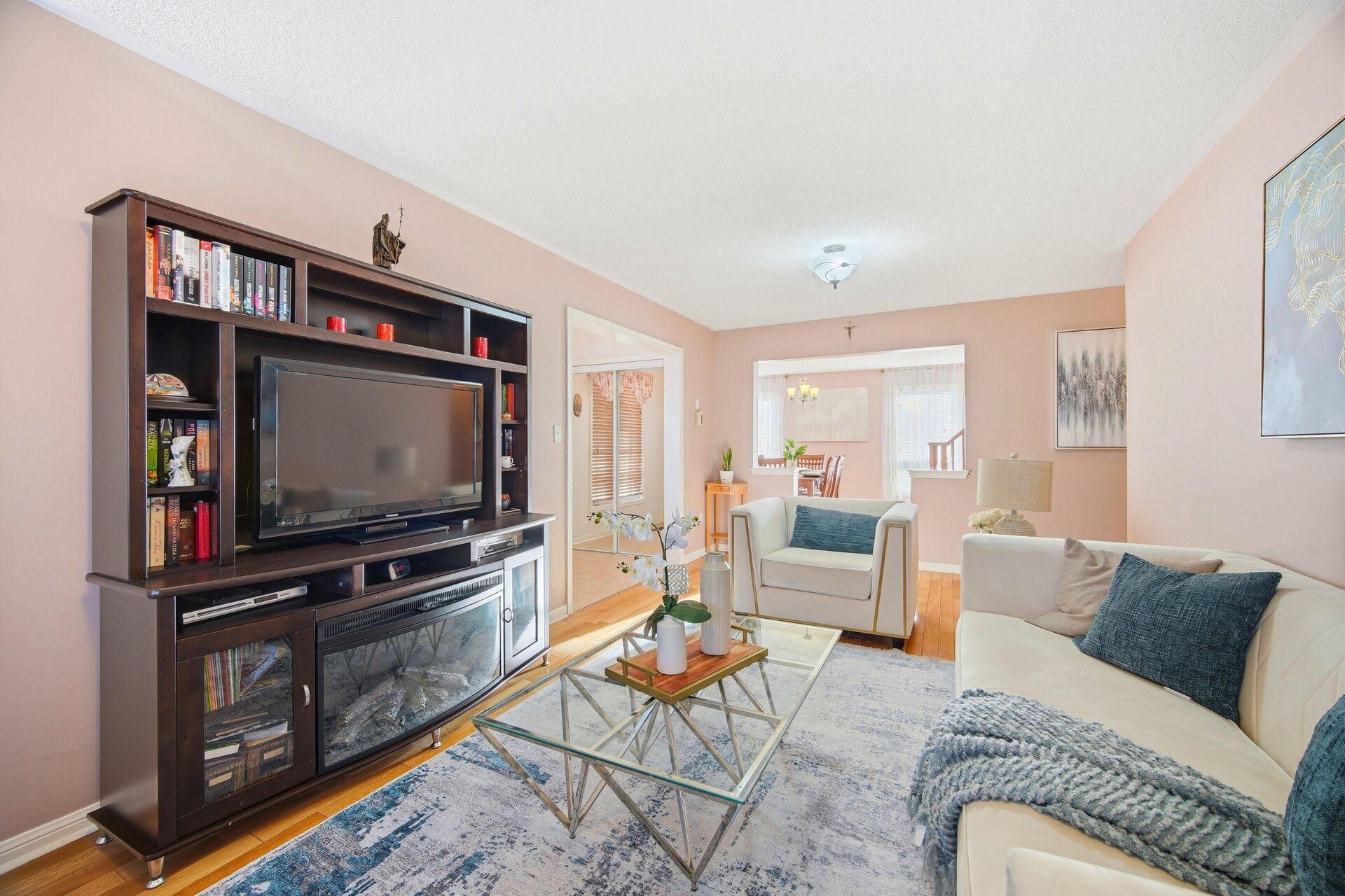 Simply stunning fully detached home in highly sought-after fletcher's meadow! Beautifully maintained 4-bedroom, 3-bathroom home situated in a prime family-friendly neighbourhood. This home features an extended driveway with parking for 4 cars and a well-designed open-concept layout. The main floor offers spacious living and dining areas, a separate family room, and a family-size kitchen with breakfast area, perfect for everyday living and entertaining. The primary bedroom includes a private ensuite and walk-in closet, while all other bedrooms are generously sized. The home also features a partially finished basement offering additional space and future potential. Enjoy the professionally landscaped front and backyard, ideal for relaxing or hosting family gatherings. Located just steps from parks, top-rated schools, grocery stores, shopping, public transit, and all essential amenities' must-see home!