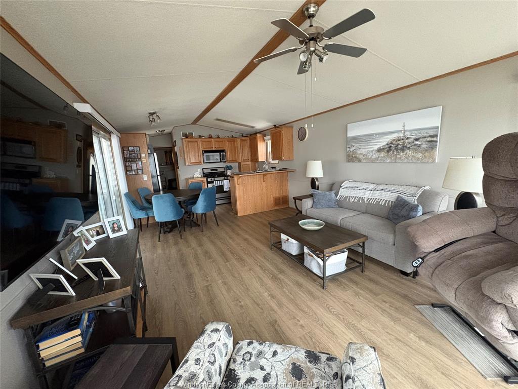 Seasonal paradise at leisure lake on a gorgeous double premium waterfront lot w/ vehicle and golf cart parking. Just move in & enjoy the summer on the lake w/ everything that leisure lake has to offer! 2007 luxury northlander 40 foot seasonal home includes: open concept design, full kitchen w/ gas stove, built in microwave & double sink, dining table that seats 4, living area w/ 70" tv w/ surround sound, 4pc bathroom w/ tub & large primary bedroom. 2 large patio doors to deck, one with amazing panoramic views of the lake. New roof & hwt 2025. 2 golf carts included w/ purchase. Outdoor includes: waterfront views, huge wrap around deck to host great gatherings w/ beautiful landscaping, large gazebo w/ string lights. Large storage shed. Fire-pit area w/ tons of grass space leading to the water. Propane fire pit. Leisure lake resort offers so much including; multiple pools, bike/hiking path, mini golf, basketball, rec halls, playground, events & so much more! Come see for yourself!!