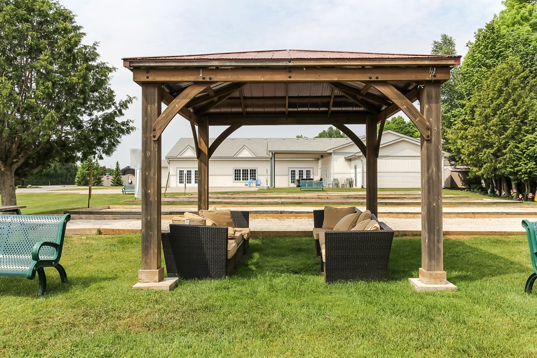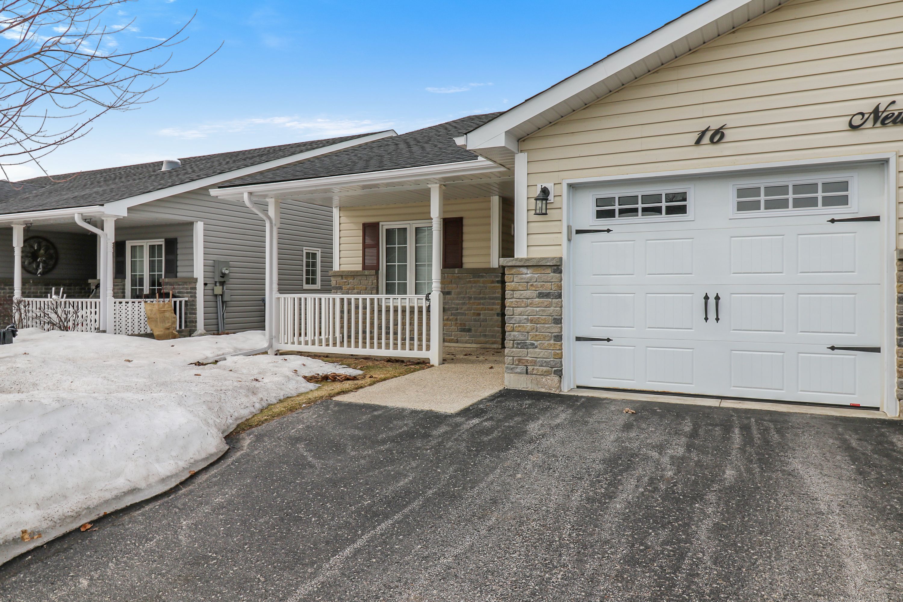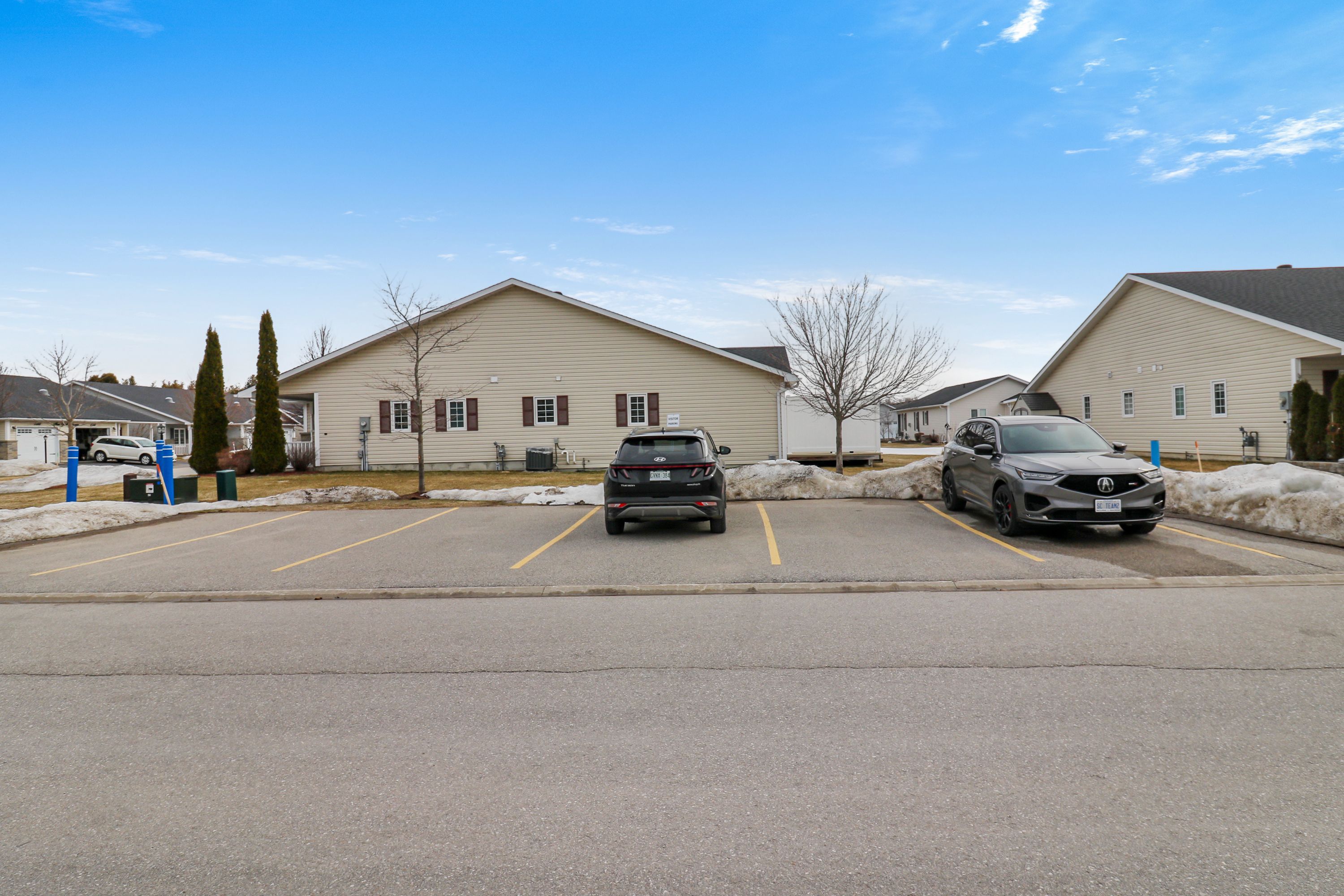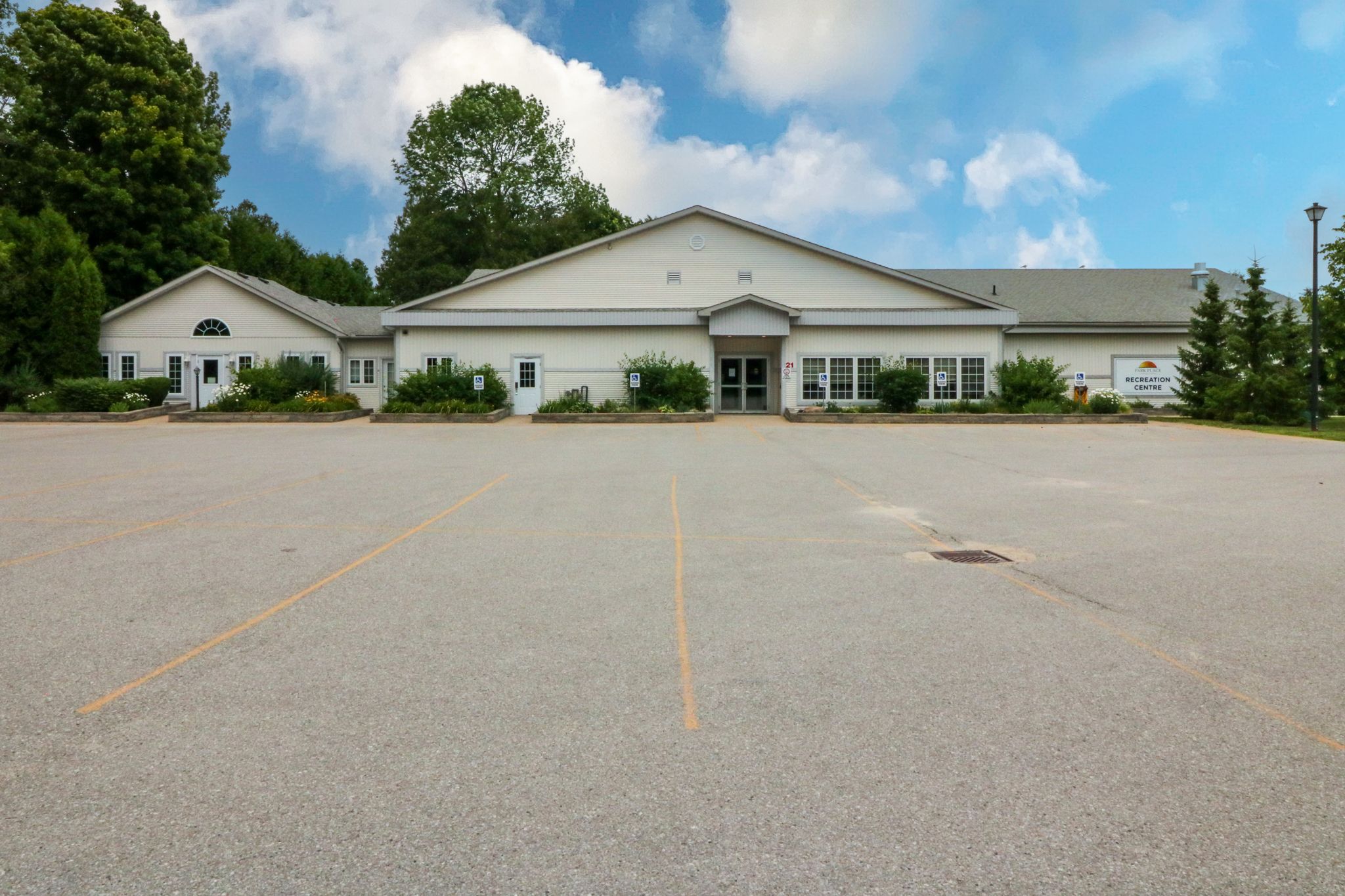Spotlessly clean, wonderfully laid-out true bungalow (no steps at front door) located in a popular adult (age 55+) land lease community in a very quiet & tranquil area of wasaga beach. This 10-year-old, 1,248 sq. Ft. Semi-detached end-unit home has 2 bedrooms/2 bathrooms & shows like new. Features include open-concept principal living areas (kitchen, dining area & living room); vaulted ceilings with pot lights; elegant crown moulding; an upgraded kitchen (with a center island/breakfast bar & stainless steel appliances); low-maintenance flooring [a nice mixture of engineered laminate (living & dining areas), carpeted bedrooms, & laminate flooring (kitchen, bathrooms, laundry & foyer)]. You'll appreciate a covered front entrance & porch, a 10' x 29' screened-in rear deck (composite) with an open bbq area, the 12' x 25' (extra deep) garage, & a double-wide, paved driveway with room to park 2 cars. Located nearby is some very convenient visitor's parking too. As for hvac, the house features an economical forced-air gas furnace, central air-conditioning, & an hrv in the 4'5" crawl space (with a cement floor, great for off-season storage). Located in the 6th & final phase known as founder's village within park place (one of wasaga beach's premier adult land-lease communities). The nearby private pond (with a water fountain feature & gazebo) makes for a very private, peaceful, & tranquil neighbourhood. This gorgeous community (with trails) is part of 115 acres of forest & fields, water & wilderness in wasaga beach. Numerous amenities on-site include a 12,000 sq. Ft. Recreation complex, an indoor saltwater pool, game rooms, a woodworking shop & more. This neighbourhood is private yet still ideally located within minutes from the beach, shopping, marlwood golf course, the trail system & other amenities. Monthly fees to new owners will be $1,014. 13 [land lease ($800) + lot tax ($60. 40) + structure tax ($153. 73)]. Buyers are responsible for snow removal & lawn maintenance.