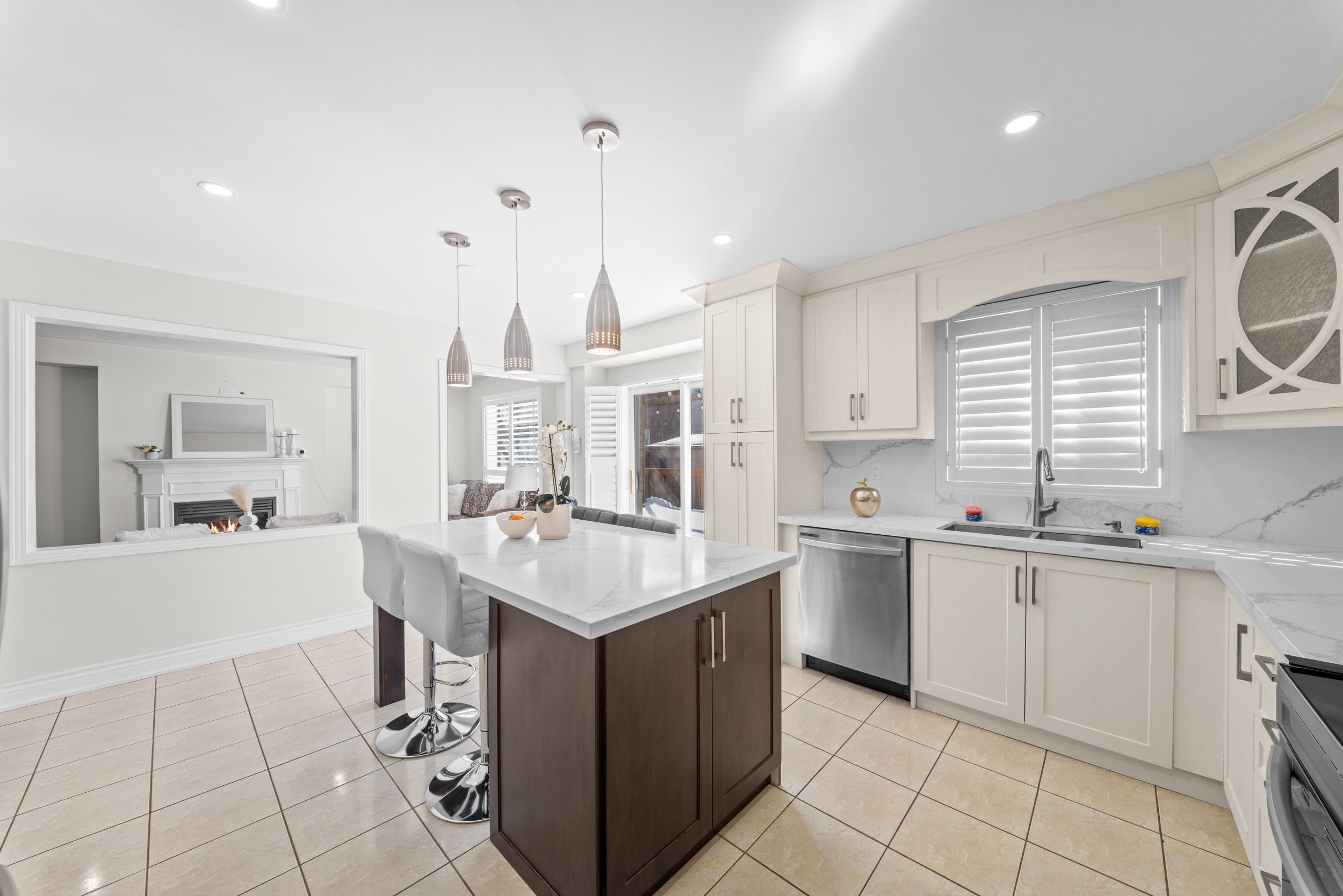 Amazing 3 full washrooms on the second floor set on a quiet street in fletcher's meadow, this home features 4 bedrooms, a stunning modern kitchen, and over 2,600 sq ft of high-end finishes. This fletcher's meadow gem is the upgrade you've been looking for. The open-concept, 5-bathroom detached delivers a main floor layout that families actually use: a combined living and dining room finished in hardwood with california shutters, a separate family room anchored by a gas fireplace, and a renovated kitchen with quartz countertops, a center island with pendant lighting, and a breakfast area that walks out to the deck and fully fenced yard. Upstairs, the three-washroom configuration includes a renovated primary ensuite with a glass shower and freestanding soaker tub, two semi-ensuites serving the secondary bedrooms, and a dedicated 4-piece bath for the fourth bedroom. Located near cassie campbell community centre, fletcher's plaza, sandalwood pkwy transit, public and secondary schools, grocery stores, and hwy 410. The capital work is done. Minutes to everything.