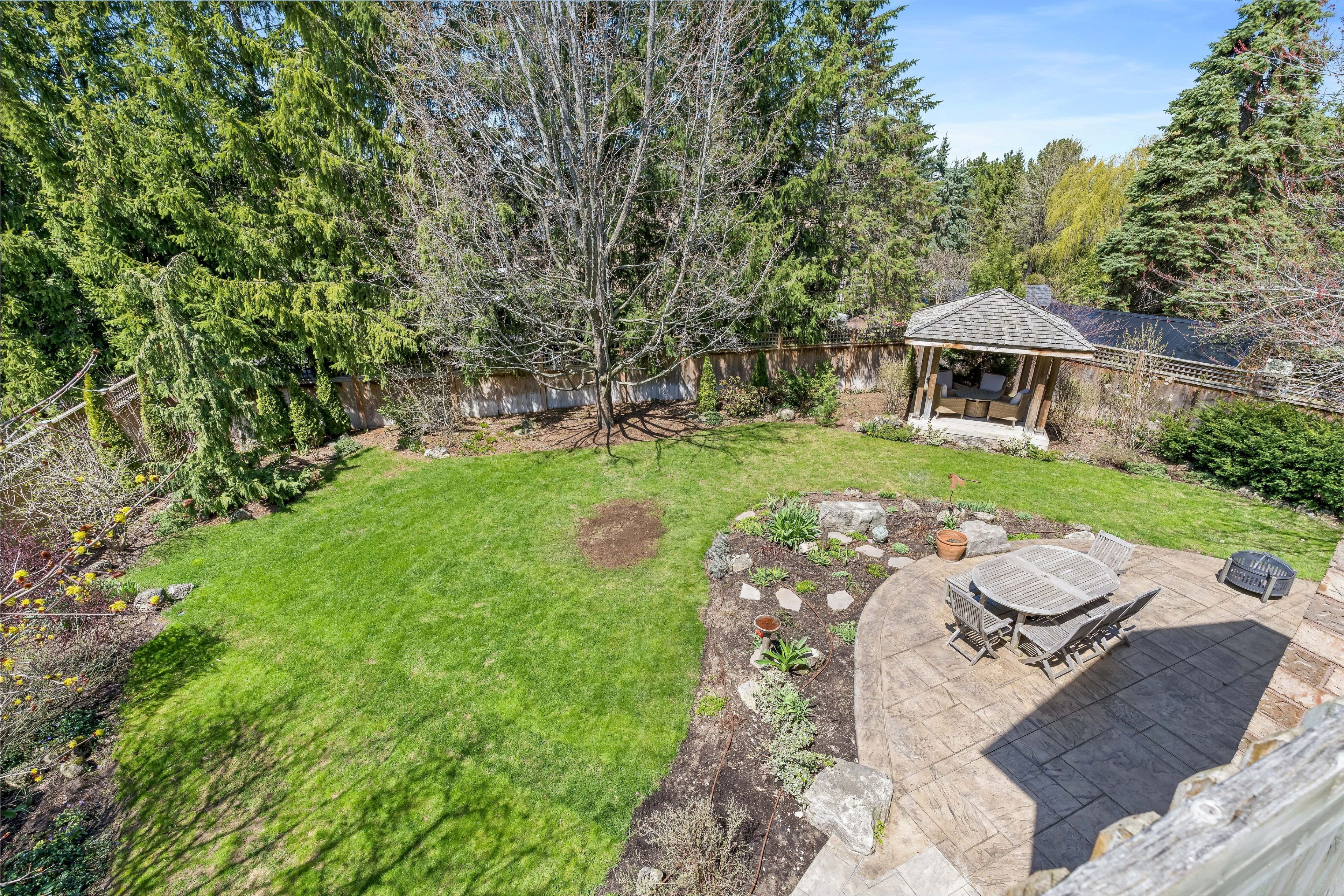 • Beautifully landscaped backyard with a patio and charming gazebo.