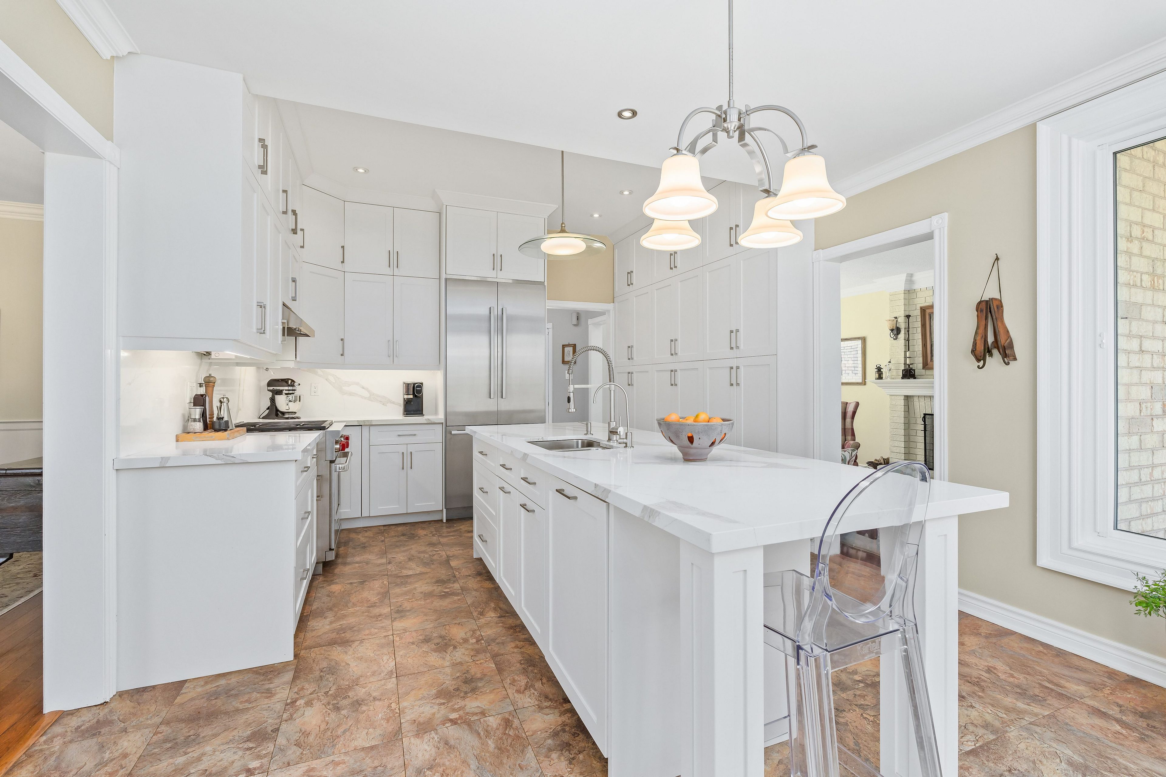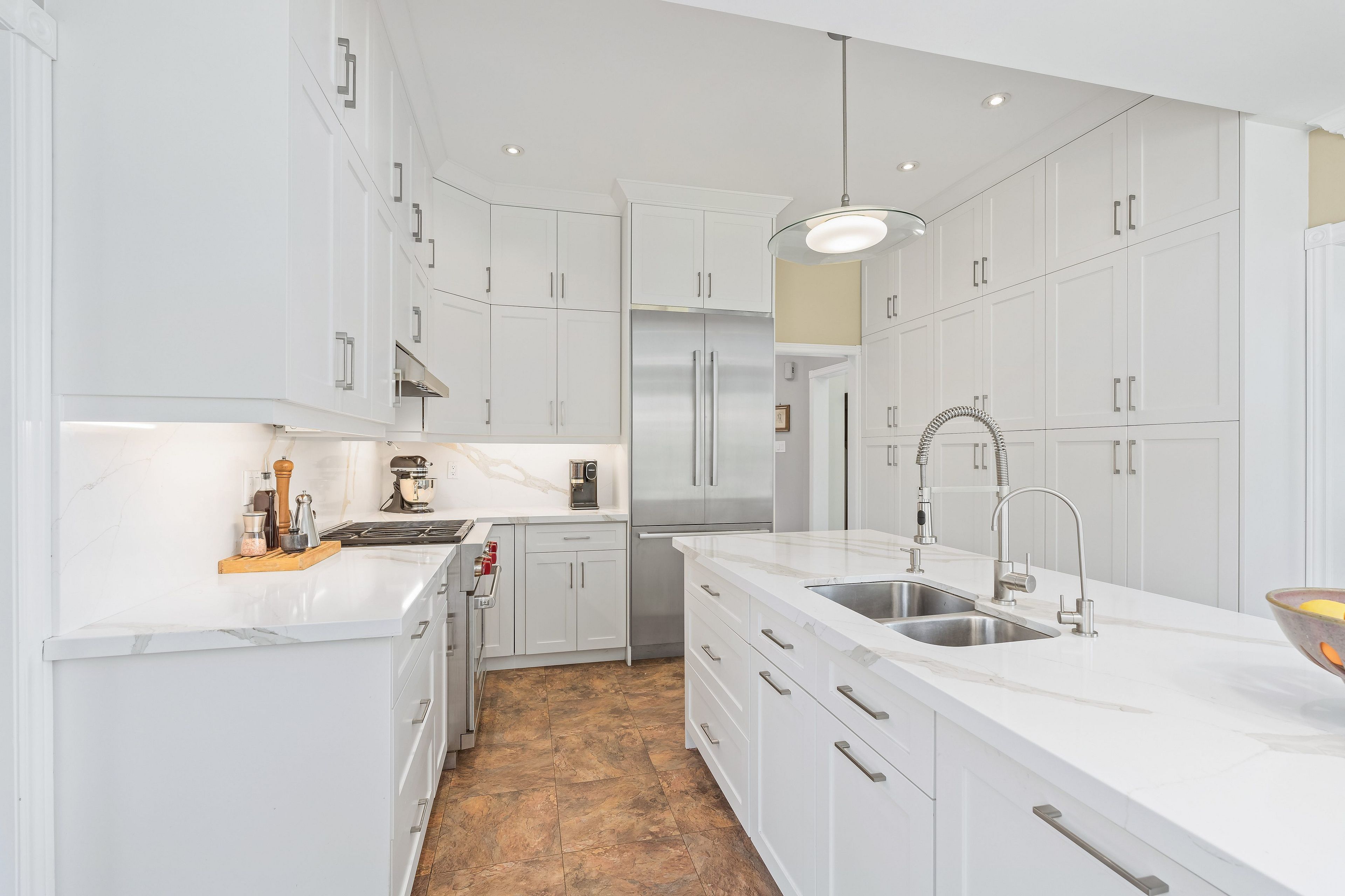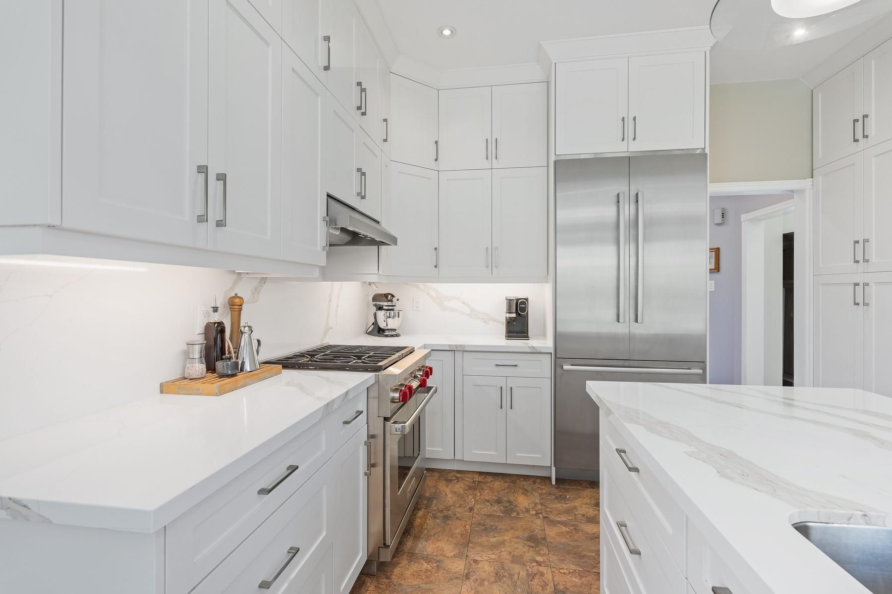 • Updated chef's kitchen with high-end appliances and quartz countertops.