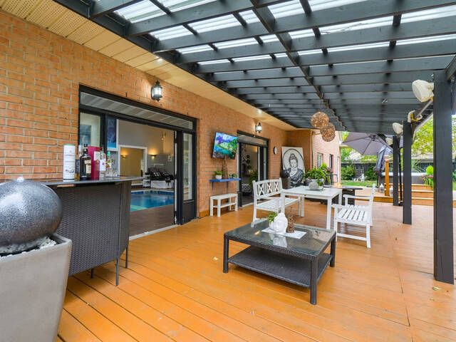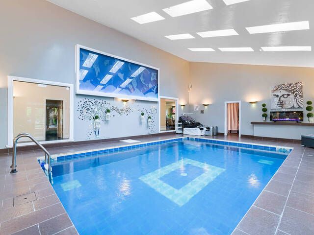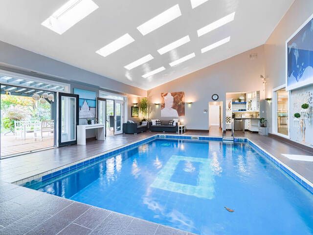 • Private indoor pool oasis with bar, change rooms, and two bathrooms.