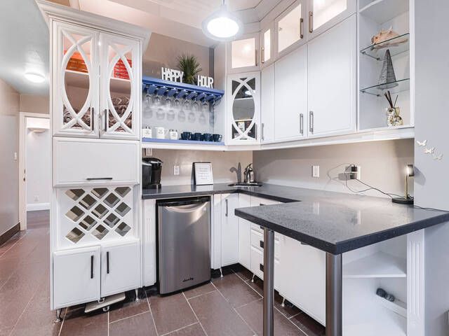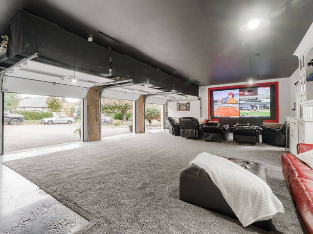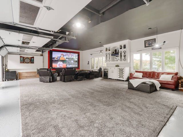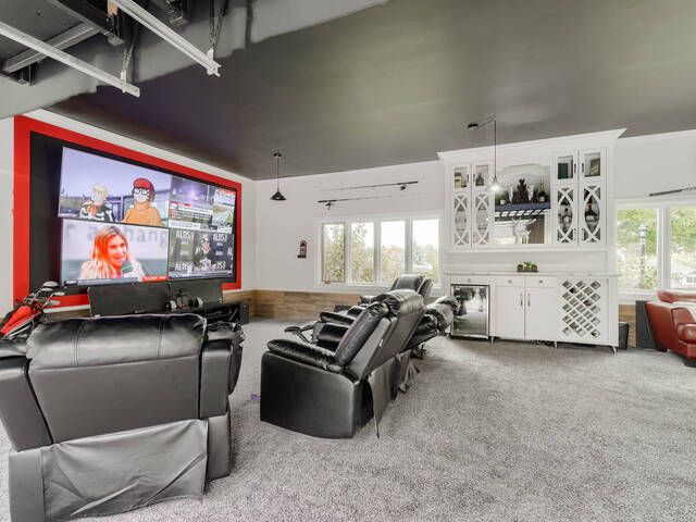 • Game room with custom bar and entertainment wall for hosting.