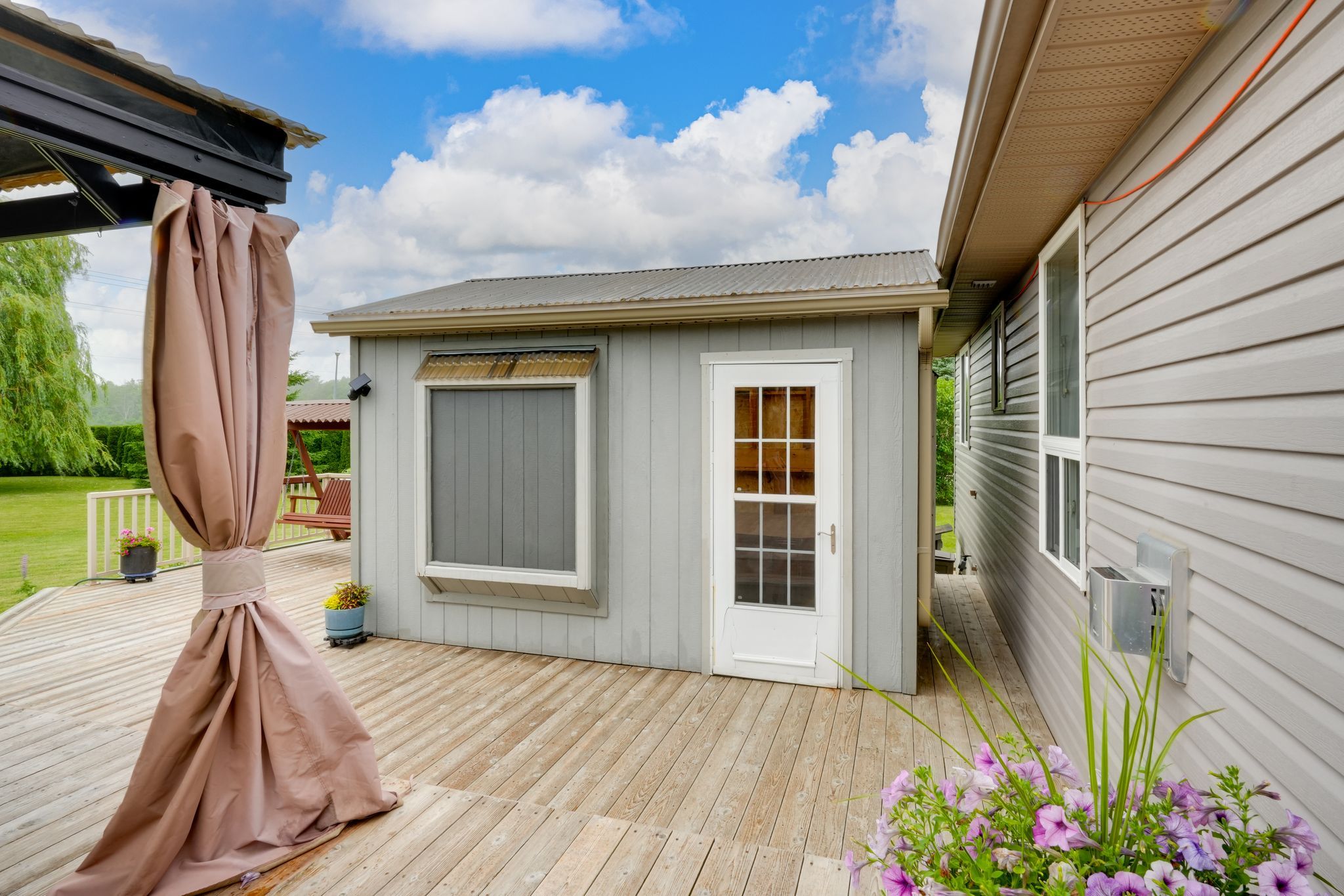 • Massive deck with a screened-in gazebo and hot tub for year-round use.
