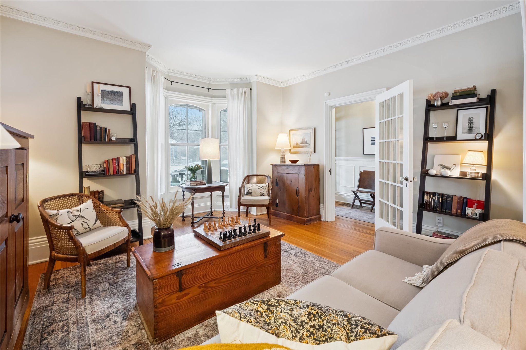 • Solid-wood doors and intricate millwork showcase timeless craftsmanship.