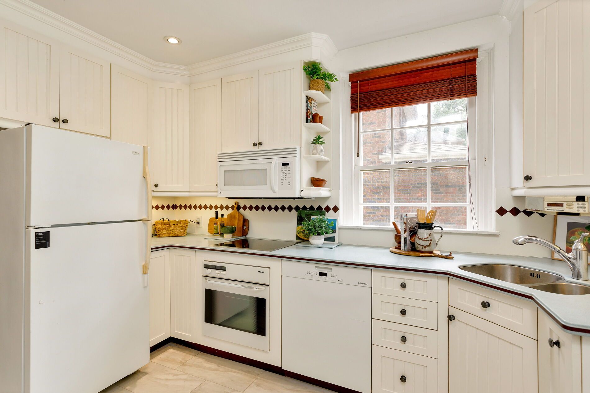 • Bright kitchen with a walkout to a two-tiered deck for BBQs.
