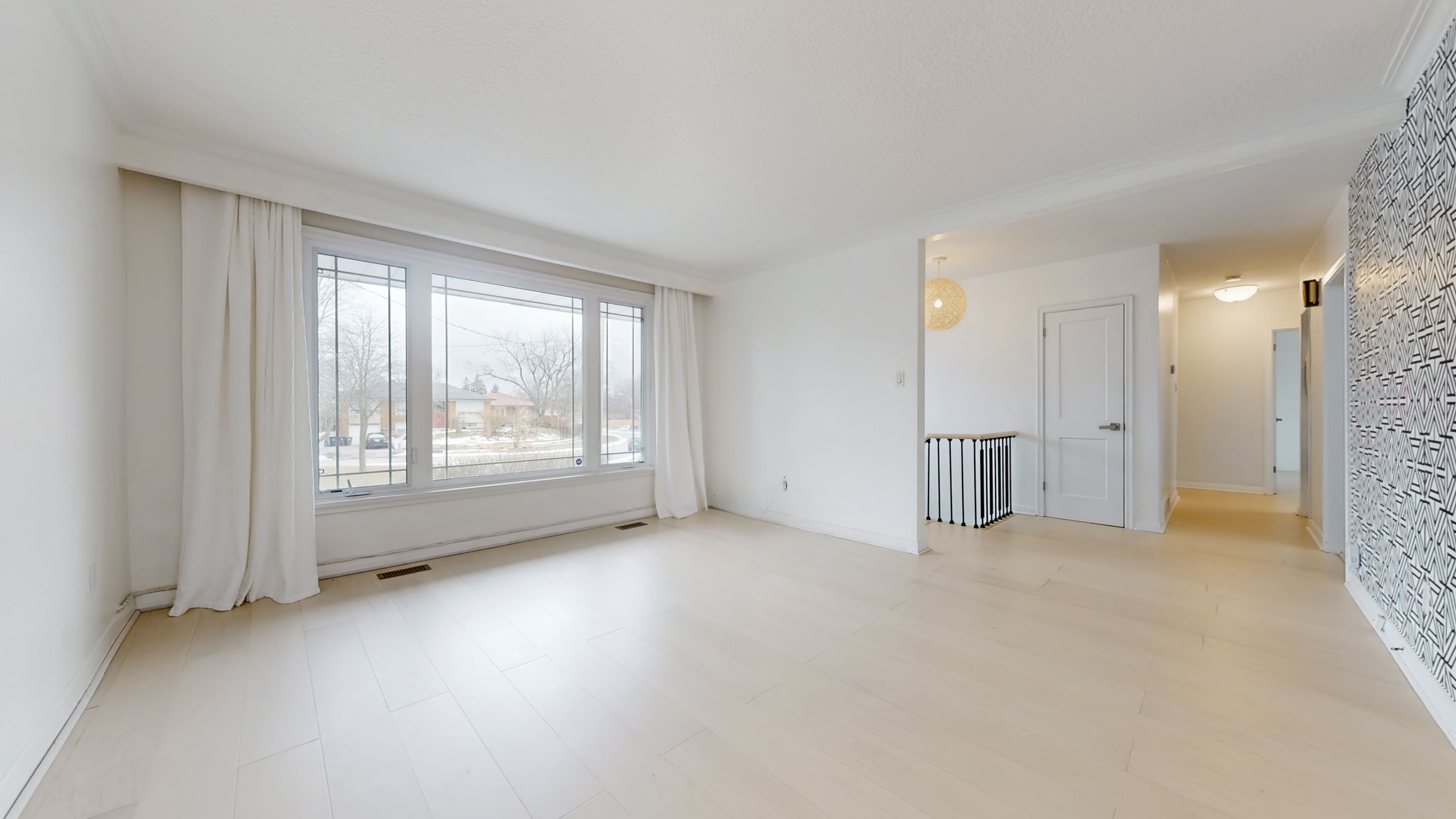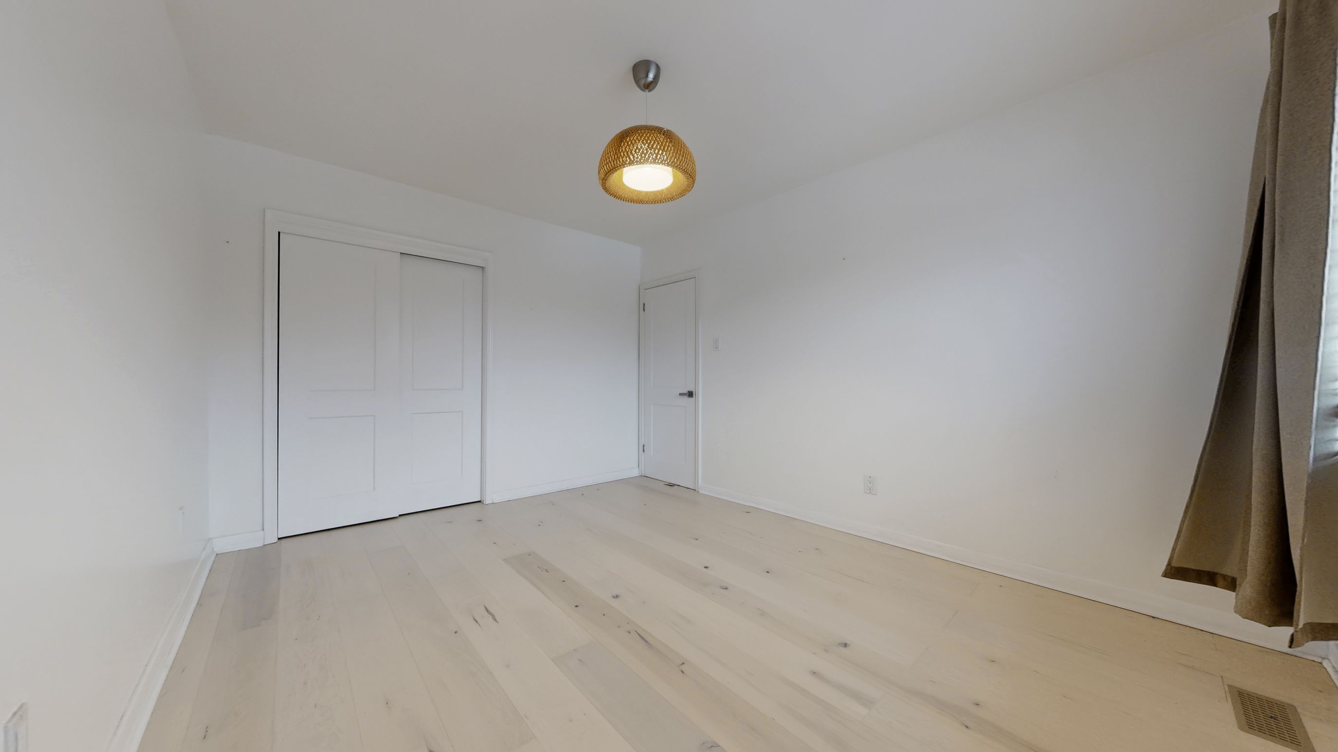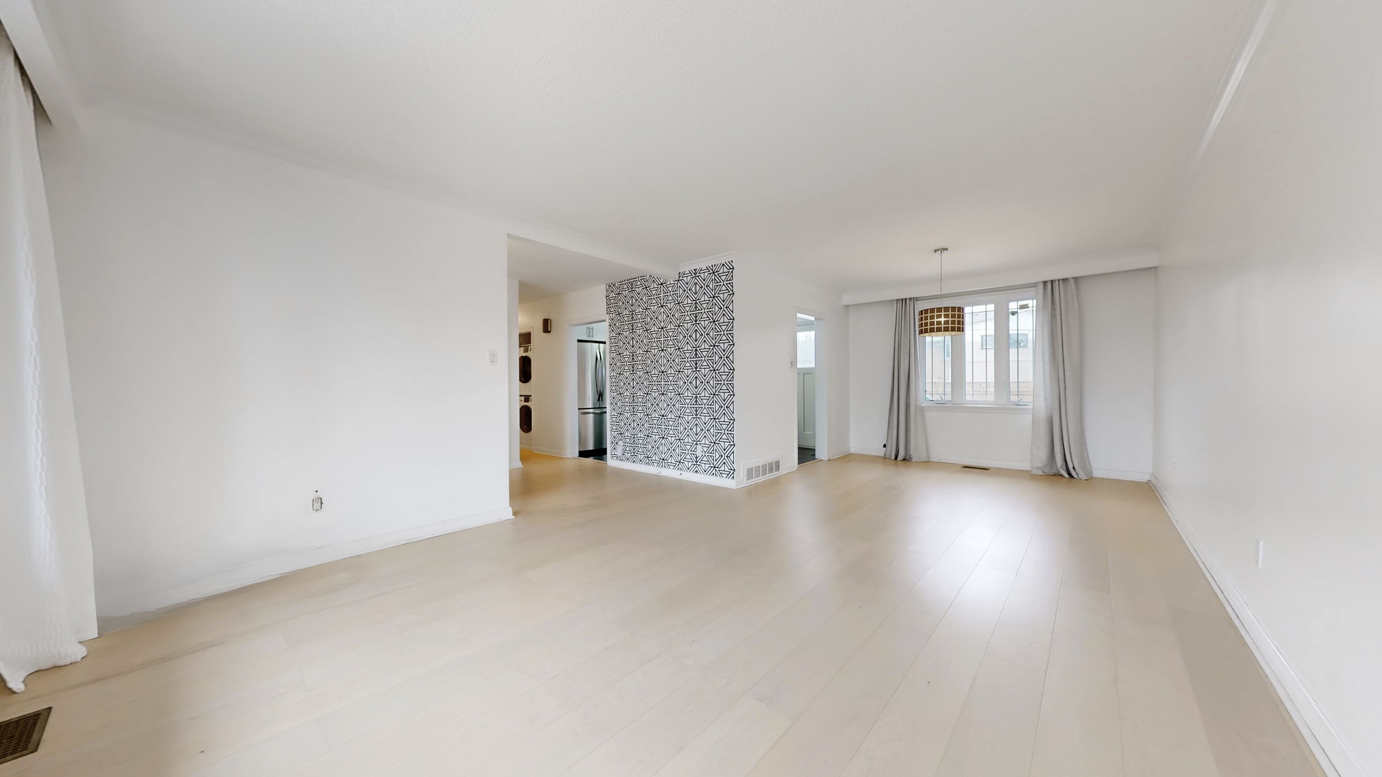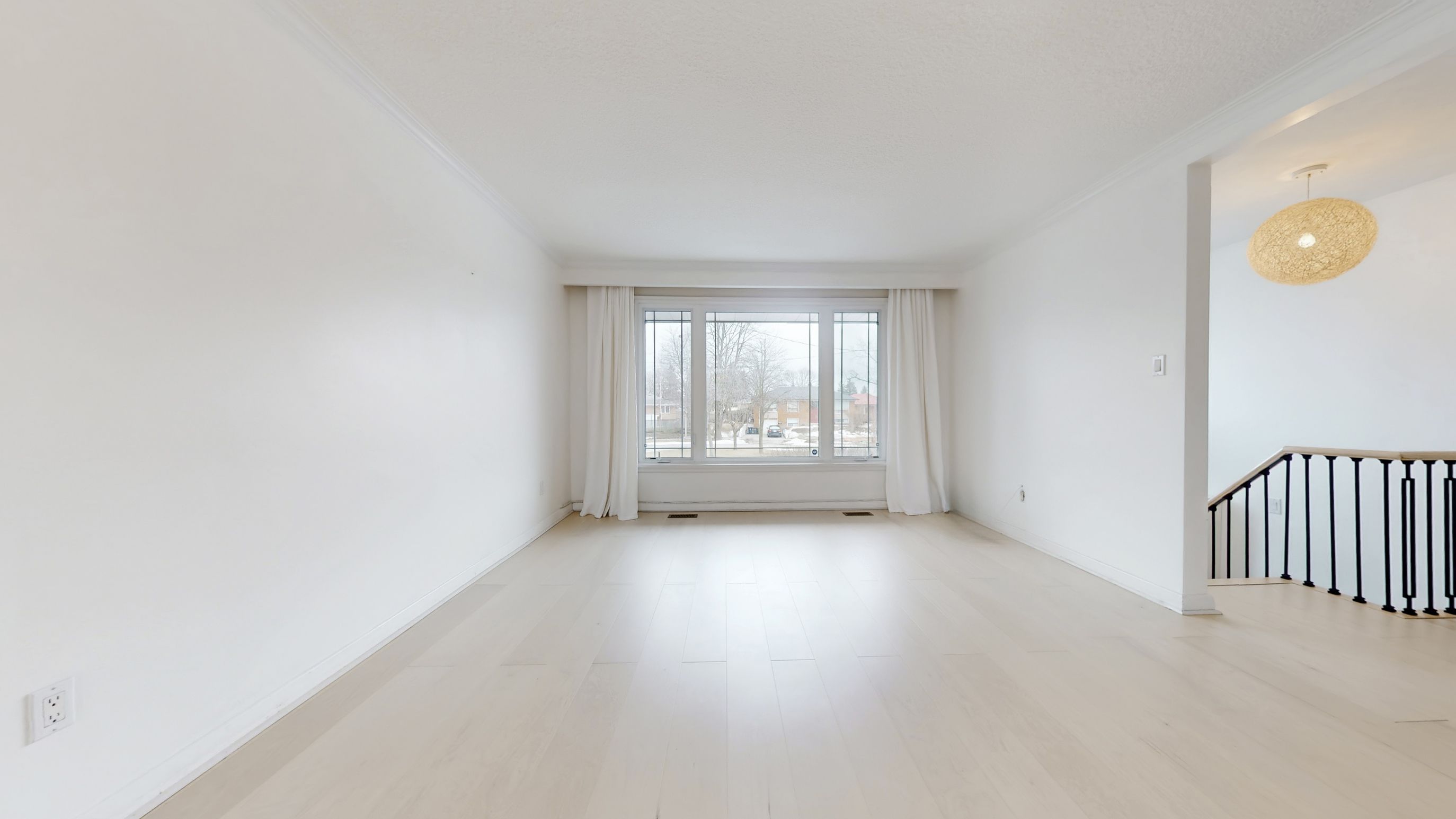 Main floor of a beautifully renovated home located on a quiet cul-de-sac. Features a fully renovated kitchen and bathroom, new flooring throughout, new appliances, and freshly painted interiors. Walk-out to a lovely backyard with deck. Private laundry included. One parking space provided (shared driveway with basement tenant). No access to garage.