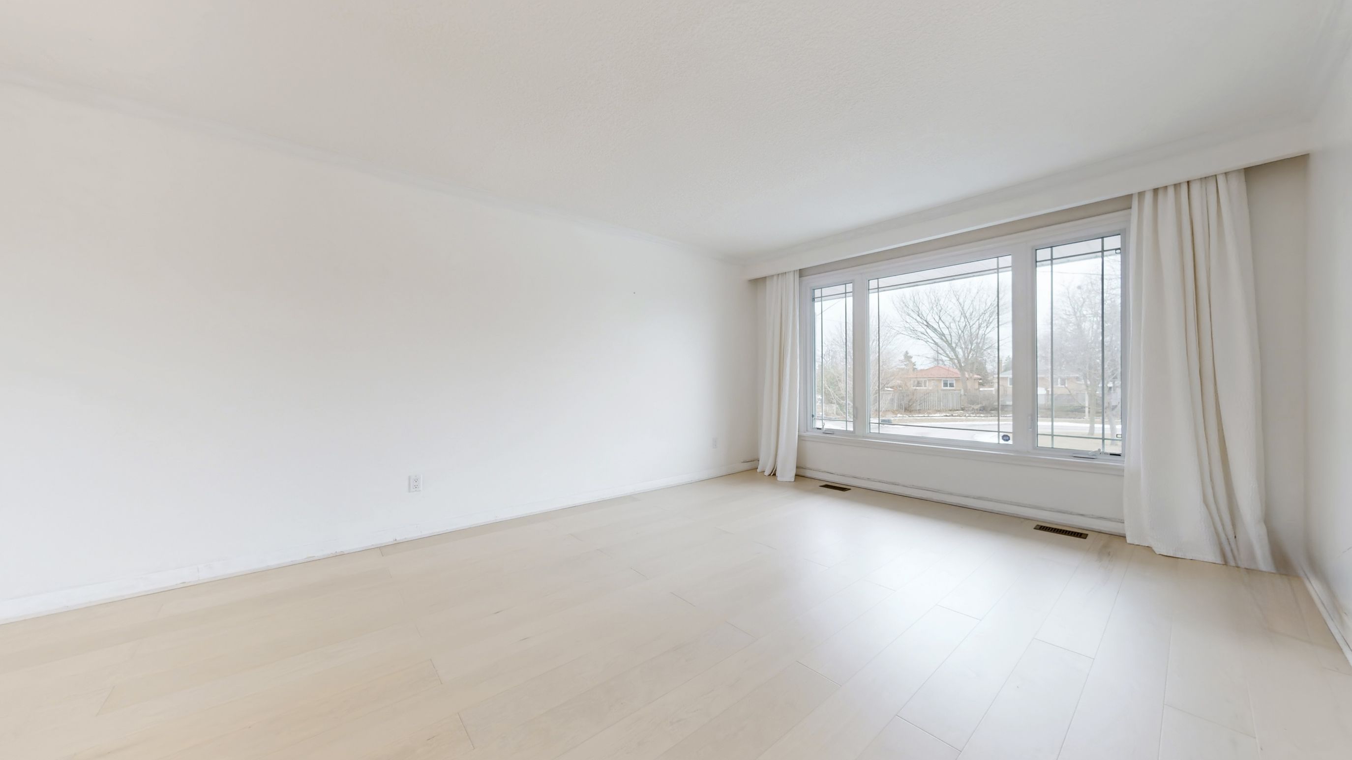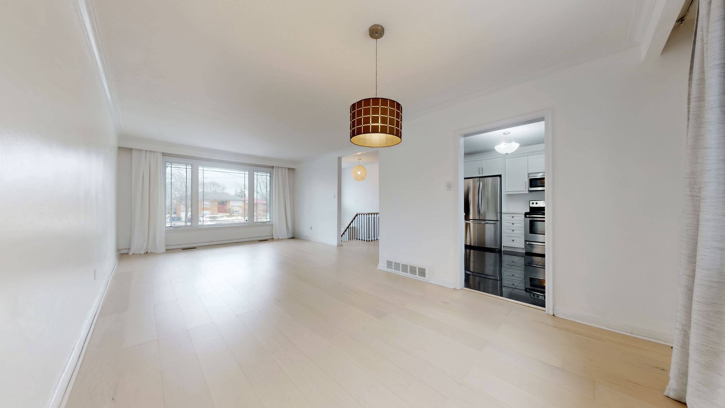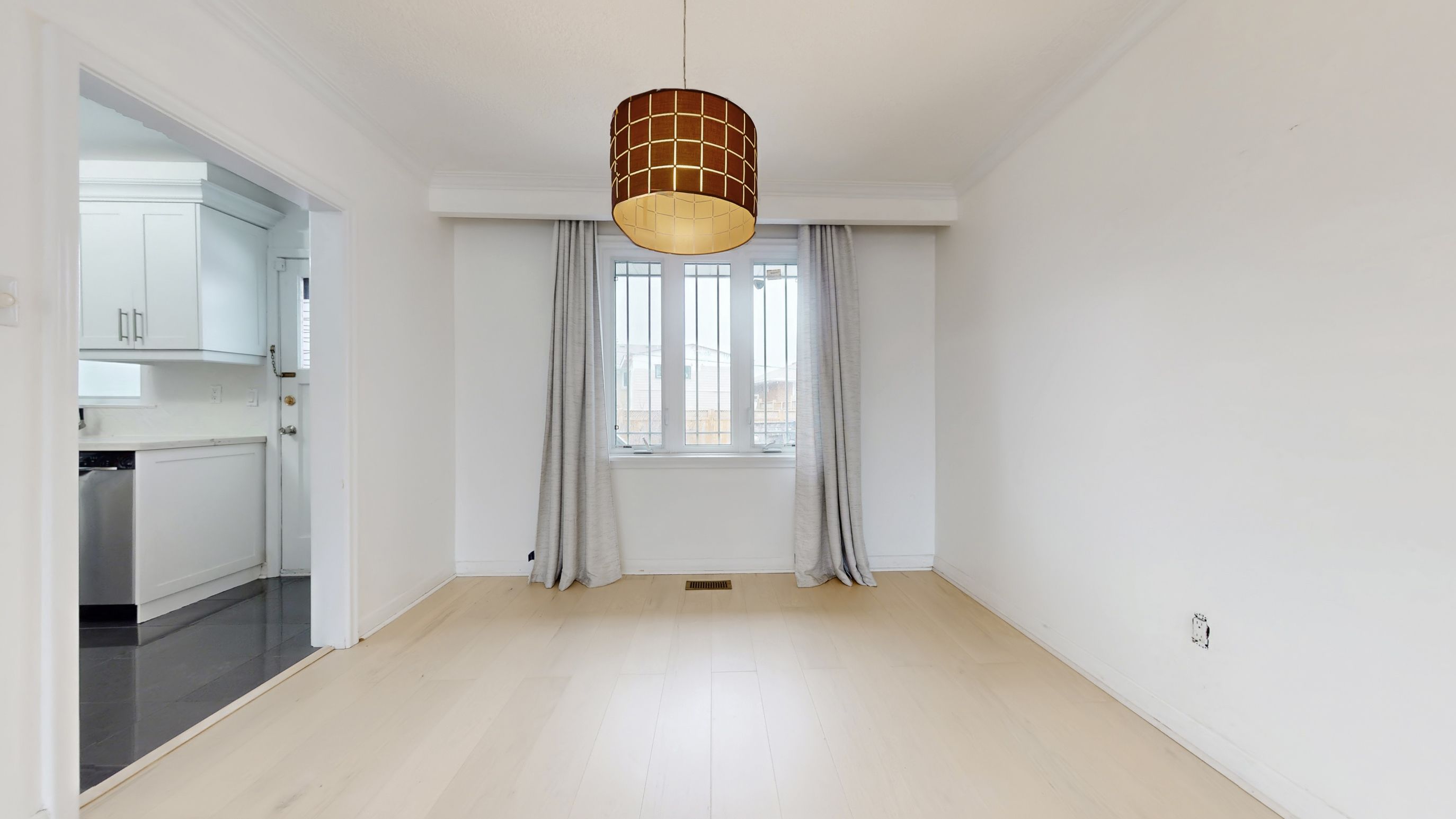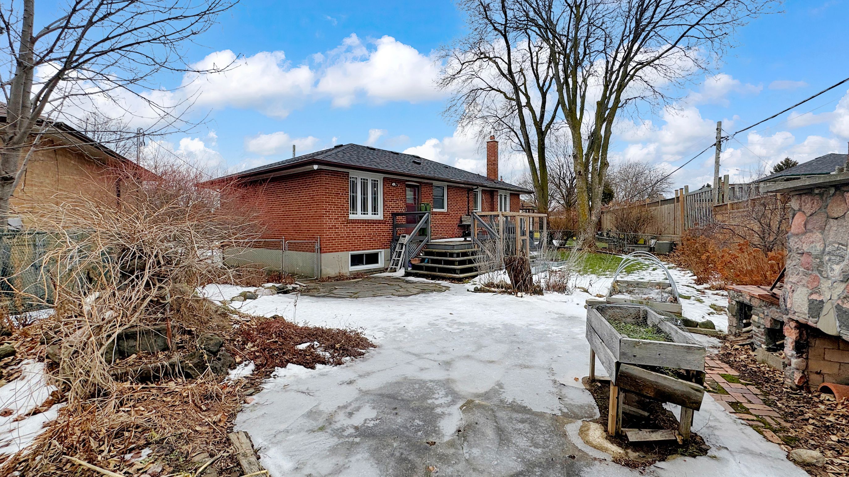 Main floor of a beautifully renovated home located on a quiet cul-de-sac. Features a fully renovated kitchen and bathroom, new flooring throughout, new appliances, and freshly painted interiors. Walk-out to a lovely backyard with deck. Private laundry included. One parking space provided (shared driveway with basement tenant). No access to garage.