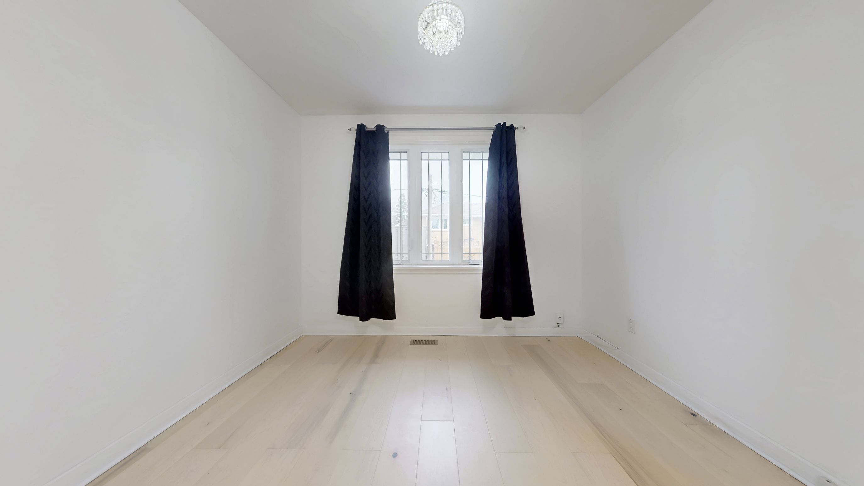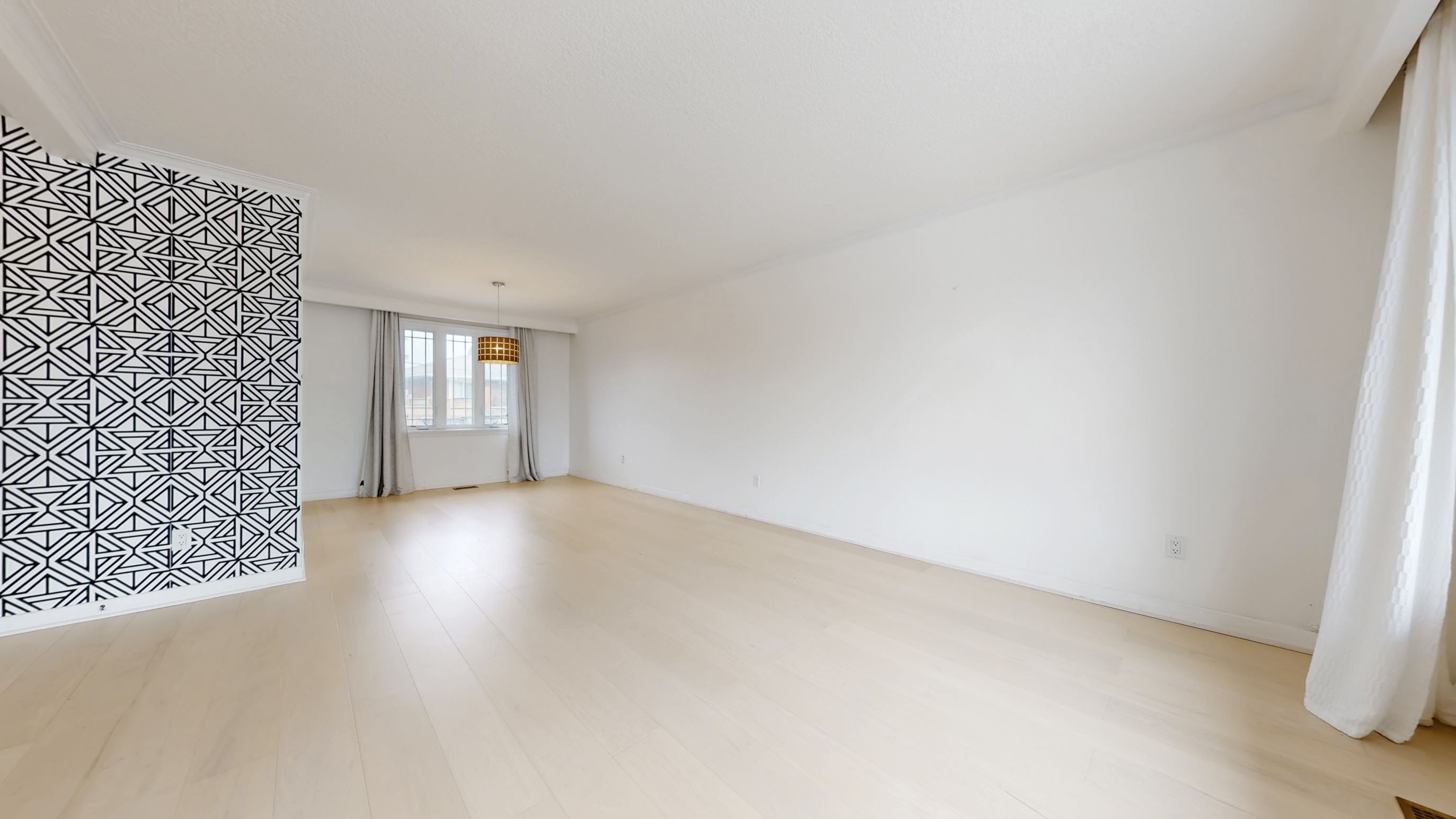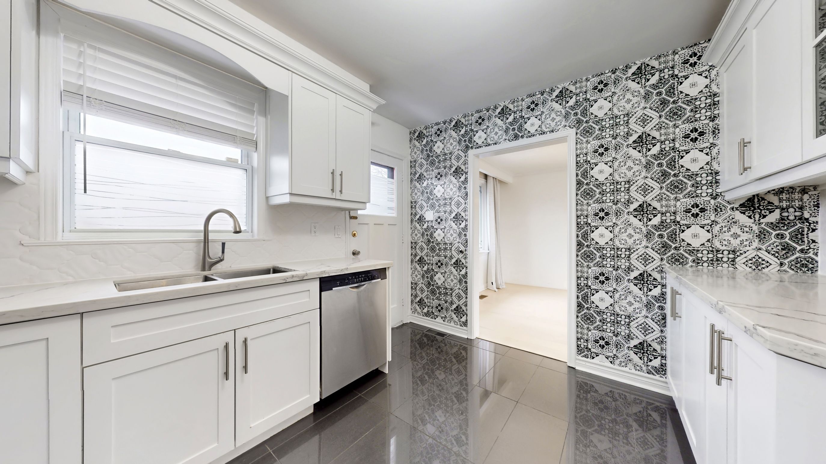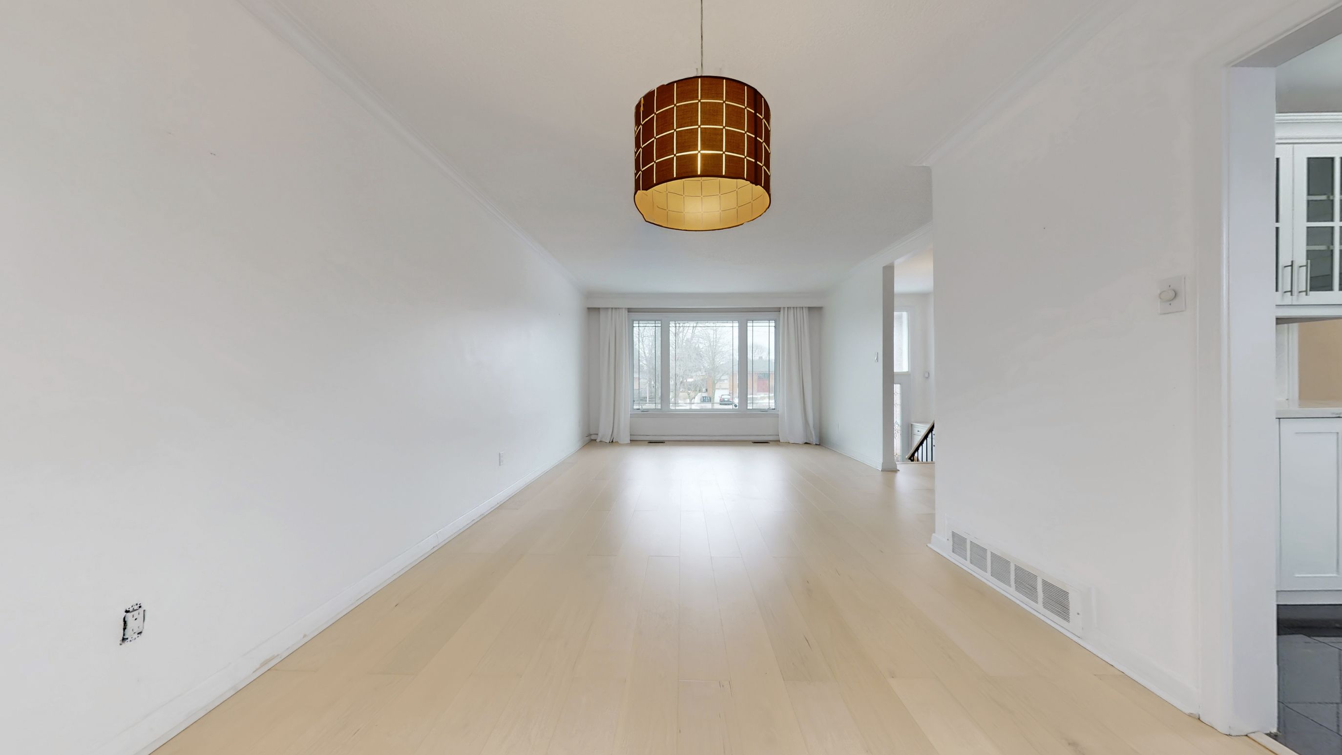 Main floor of a beautifully renovated home located on a quiet cul-de-sac. Features a fully renovated kitchen and bathroom, new flooring throughout, new appliances, and freshly painted interiors. Walk-out to a lovely backyard with deck. Private laundry included. One parking space provided (shared driveway with basement tenant). No access to garage.