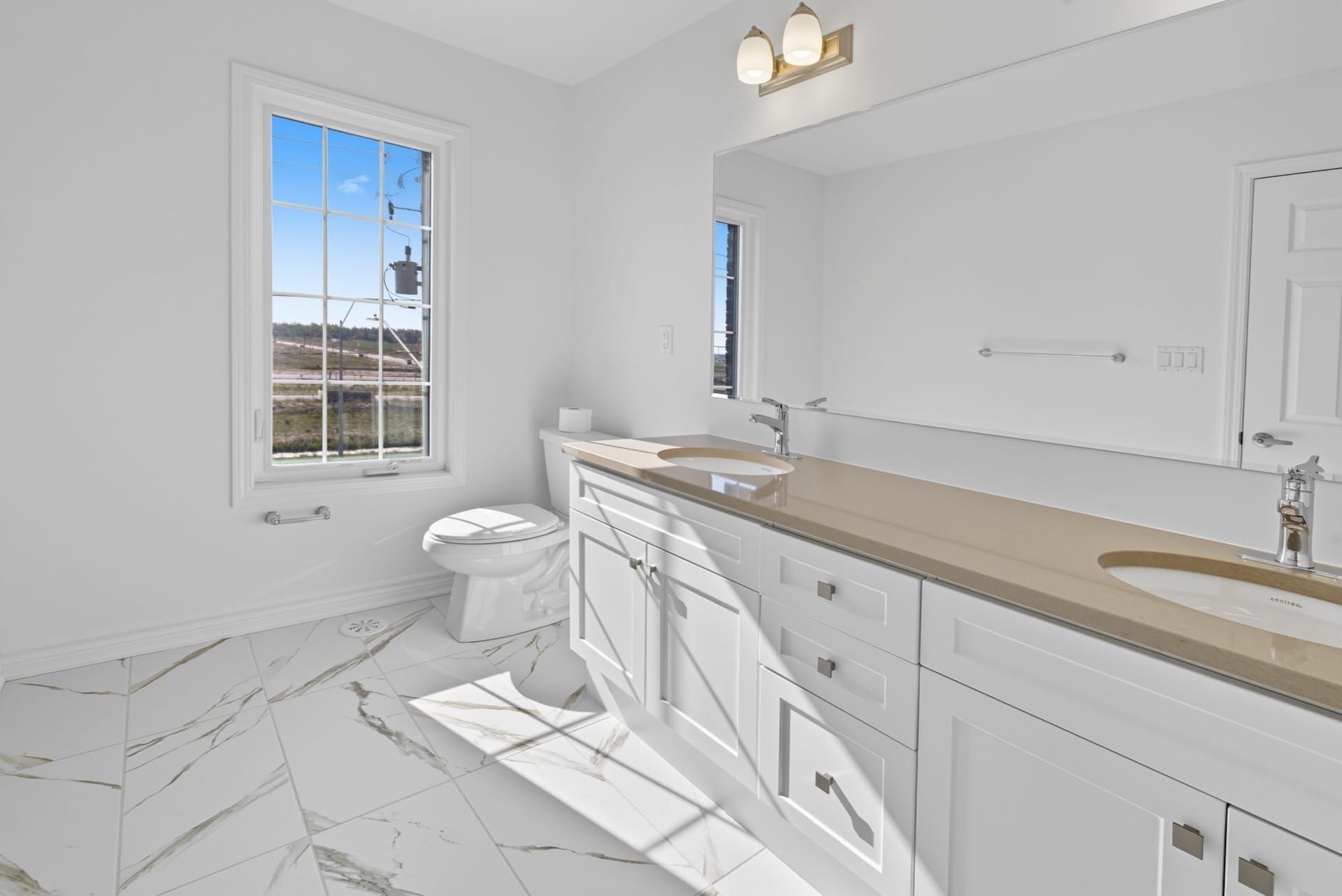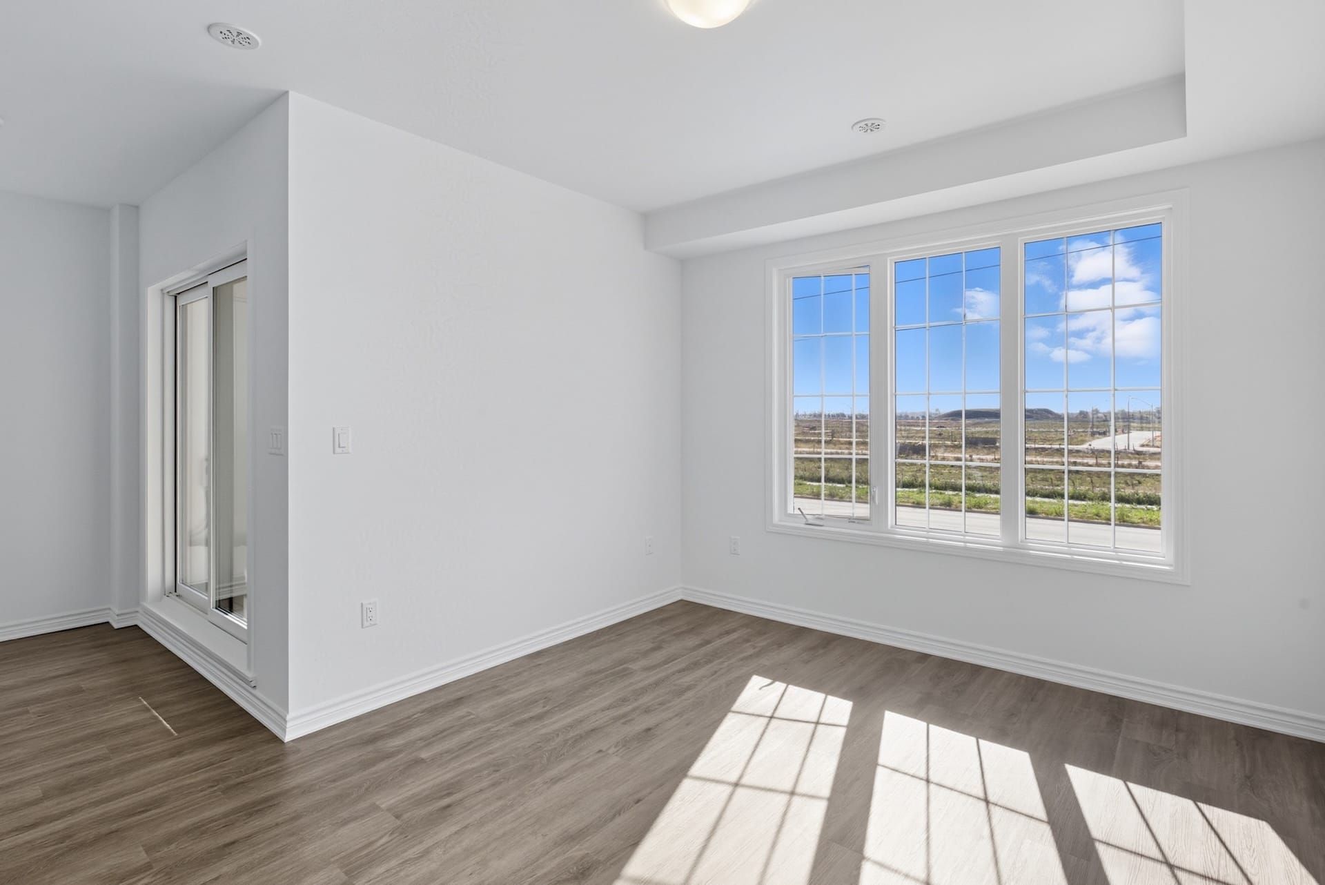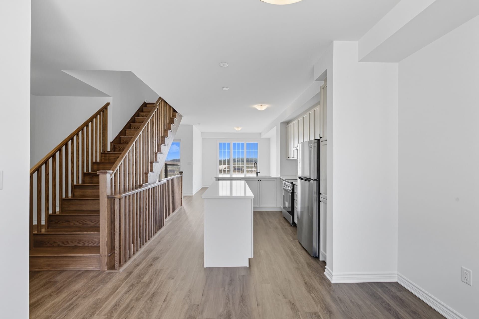 • Open-concept main level features high ceilings and large windows.