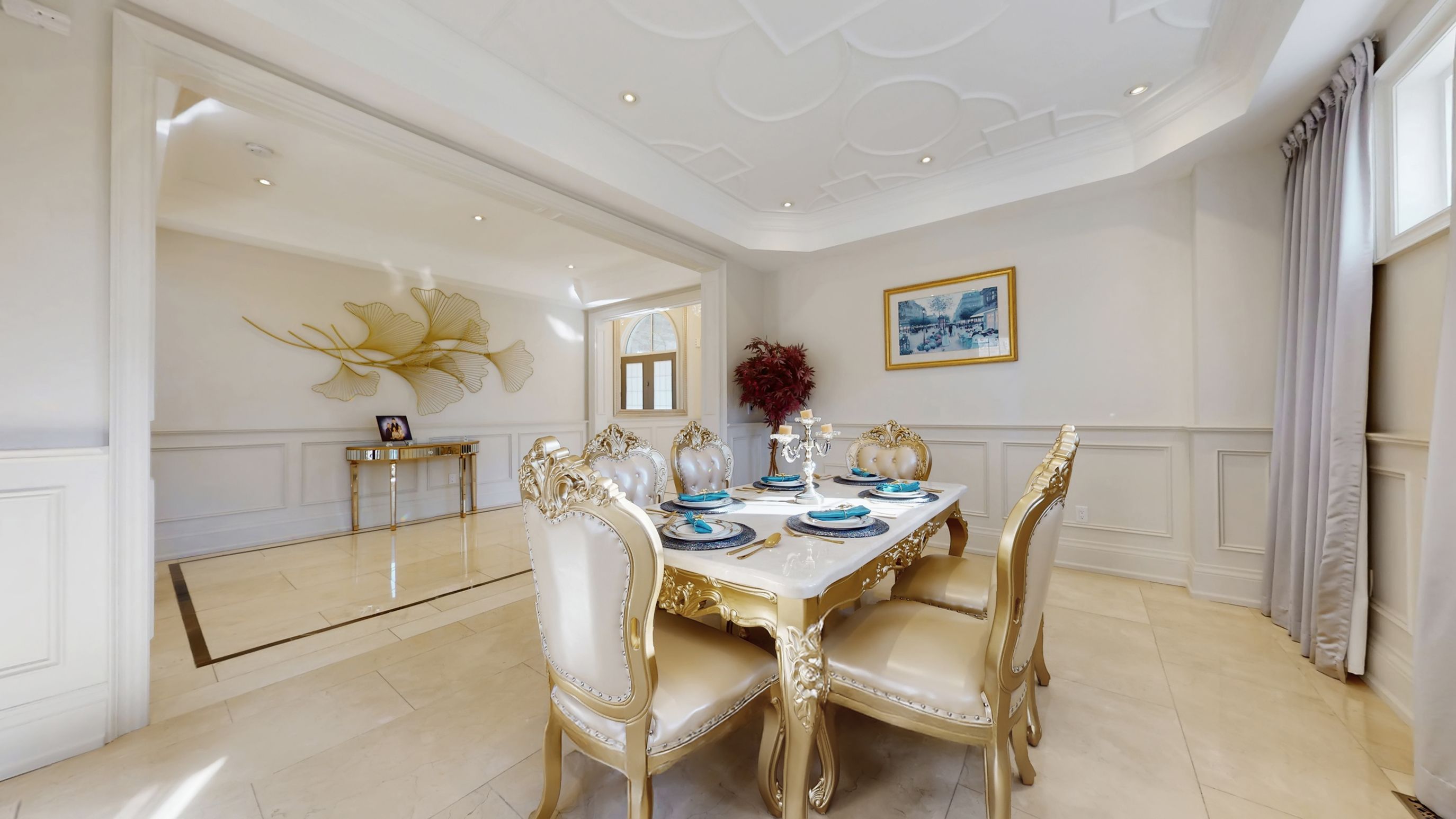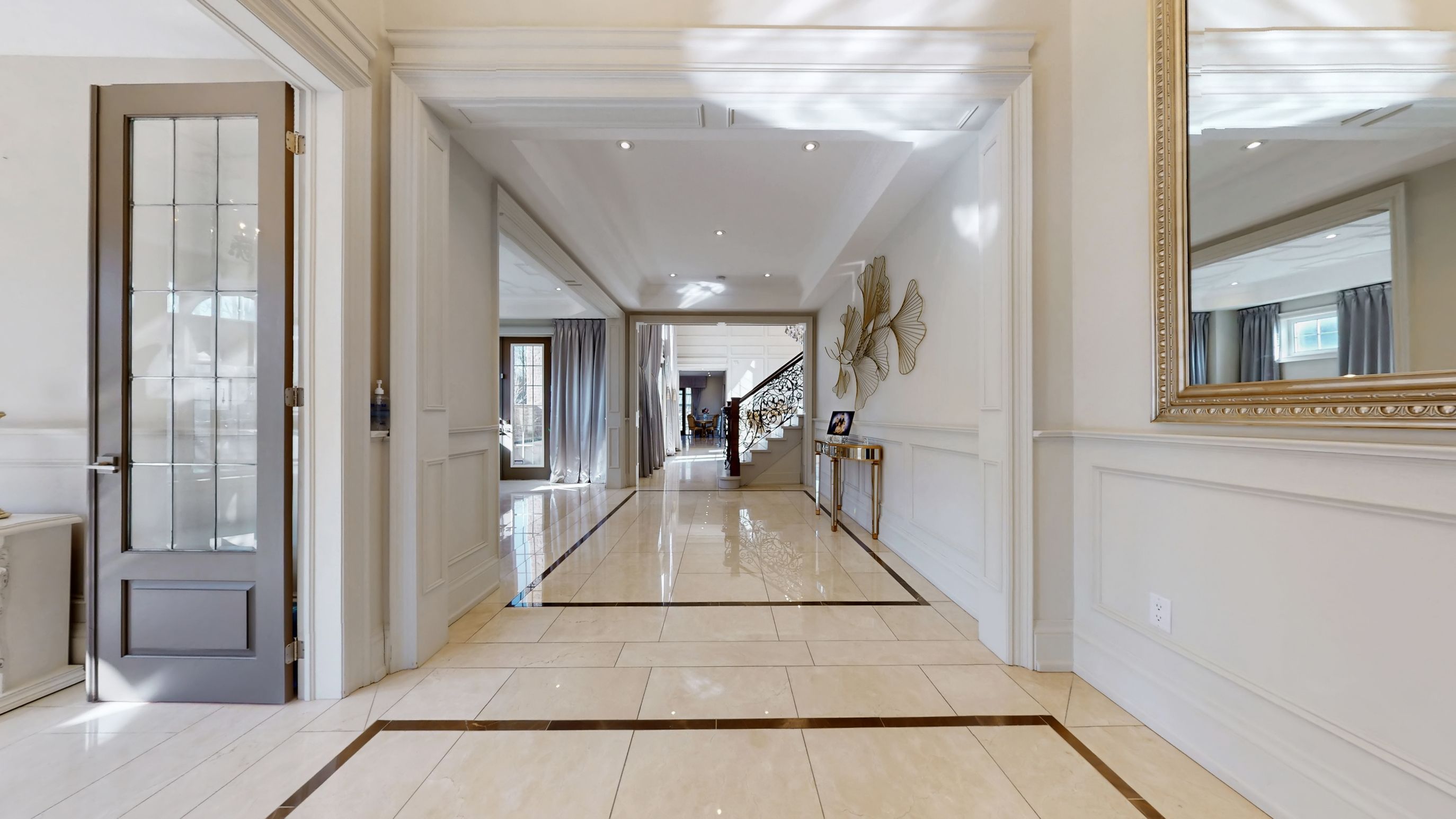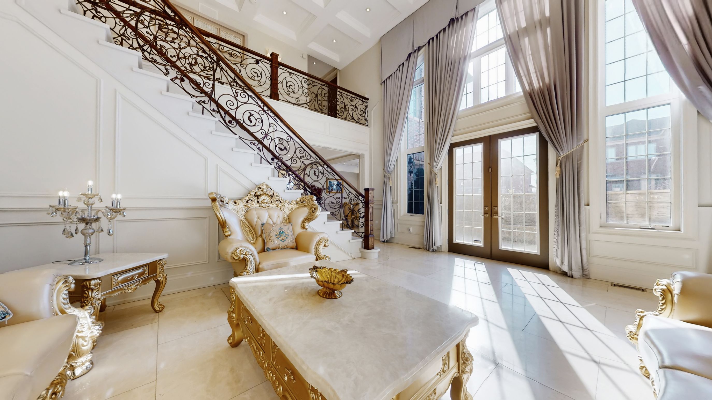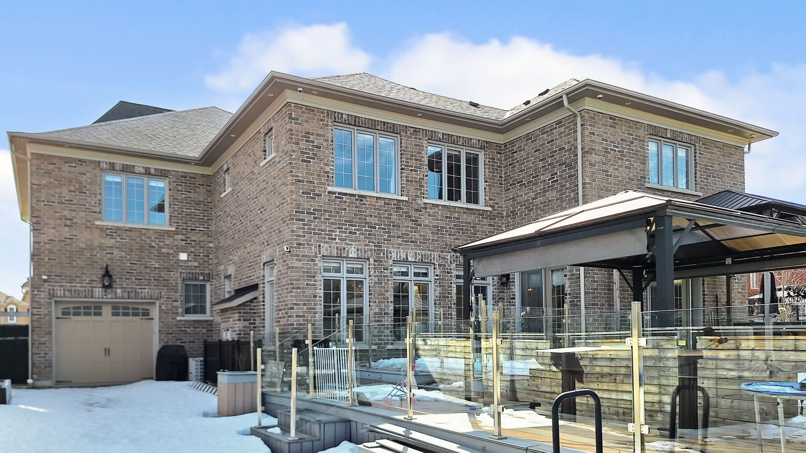 Magnificent custom built luxury château offering exceptional craftsmanship and over $1 million in premium upgrades! This stunning estate home features a rare 4-car garage and impressive curb appeal with elegant stone and brick exterior. Step inside to discover a grand interior highlighted by 10 ft ceilings on the main floor, luxurious heated marble flooring, and extensive custom wainscotting and wall panelling throughout. Elegant 9 inch baseboards run along the main and 2nd floors, showcasing the home's exceptional attention to detail. The impressive foyer opens to a dramatic staircase with wrought iron railings and leads into beautifully designed principal rooms. The spectacular 2 storey dining room with waffle ceilings creates an elegant space for entertaining, while the study, living room, and primary bedroom feature stunning custom floral pattern ceilings that add unique architectural character. At the heart of the home is a custom gourmet kitchen designed for both everyday living and hosting. The space features an impressive 12 ft centre island, premium sub-zero & wolf built-in appliances, custom cabinetry, stone counters, and high-end finishes throughout. Upstairs offers 9 ft ceilings and spacious bedrooms including a luxurious primary suite with heated marble floors in the spa-like ensuite. The walk-up basement offers incredible flexibility with a nanny or in-law suite featuring 2 bedrooms, second kitchen, cinema room, laundry, and additional living space. The professionally landscaped $500k+ backyard oasis is designed for relaxation and entertaining, featuring elegant stonework, water feature with 2 fountains, multiple outdoor seating areas, and a luxury hot tub, creating a private resort-style retreat. A truly remarkable home combining grand architecture, premium upgrades, and exceptional indoor-outdoor living in a prime victoria square location in markham.