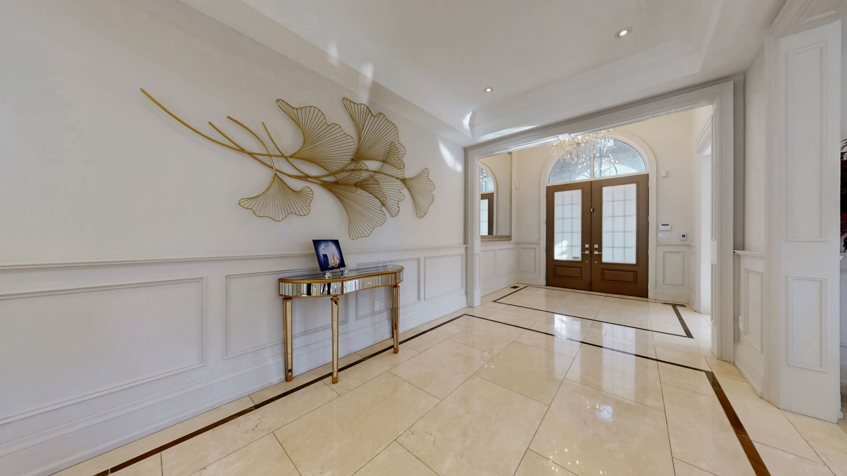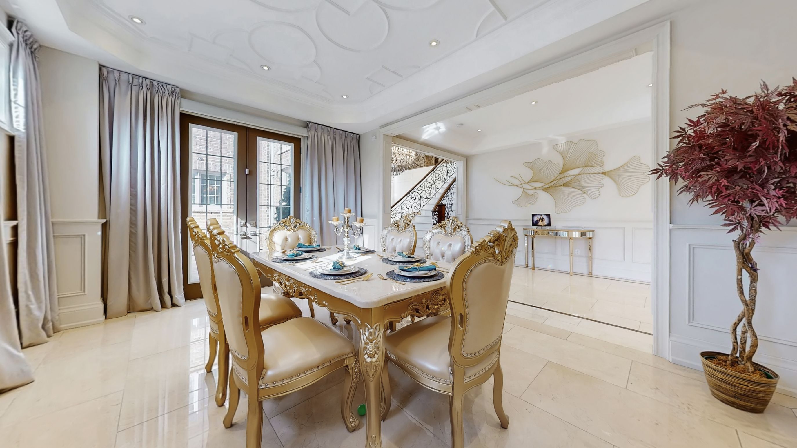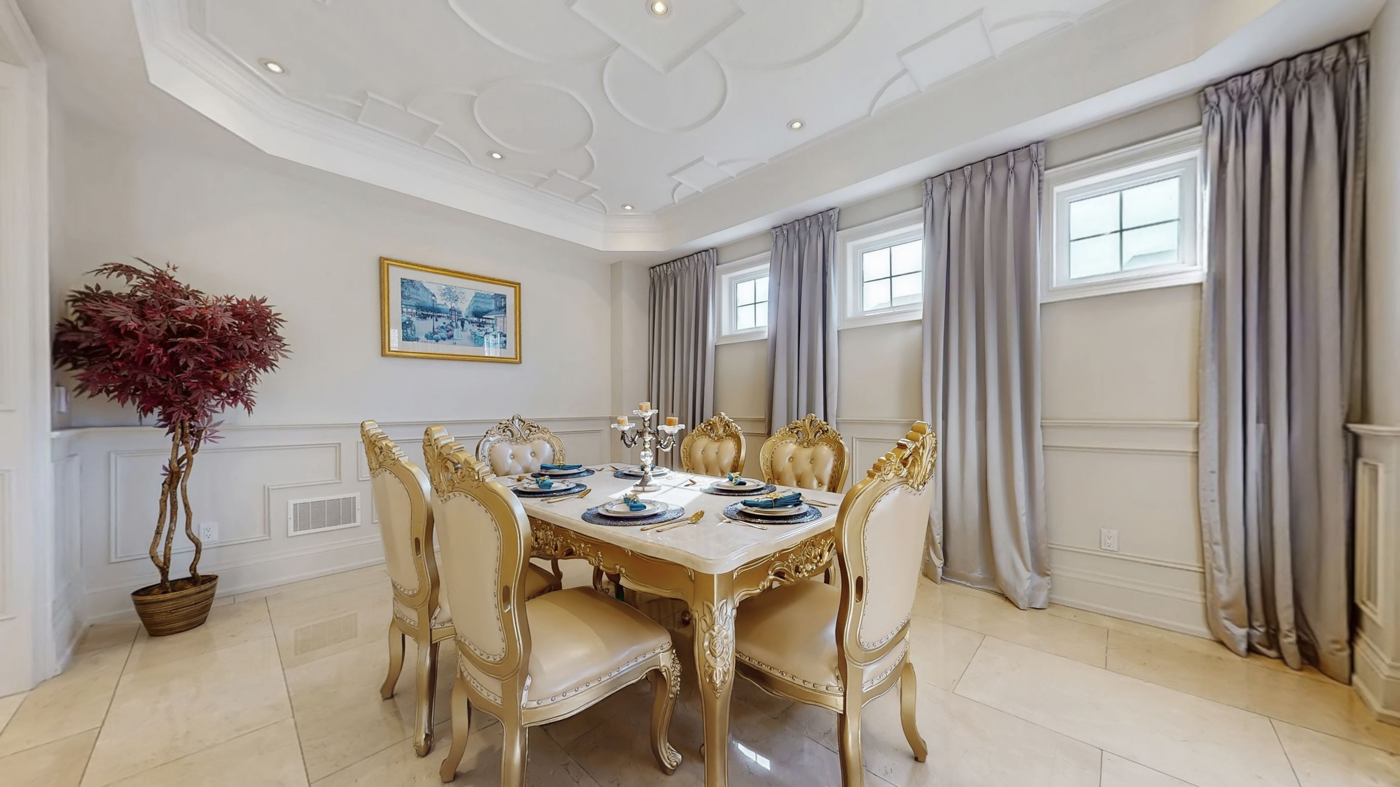 Magnificent custom built luxury château offering exceptional craftsmanship and over $1 million in premium upgrades! This stunning estate home features a rare 4-car garage and impressive curb appeal with elegant stone and brick exterior. Step inside to discover a grand interior highlighted by 10 ft ceilings on the main floor, luxurious heated marble flooring, and extensive custom wainscotting and wall panelling throughout. Elegant 9 inch baseboards run along the main and 2nd floors, showcasing the home's exceptional attention to detail. The impressive foyer opens to a dramatic staircase with wrought iron railings and leads into beautifully designed principal rooms. The spectacular 2 storey dining room with waffle ceilings creates an elegant space for entertaining, while the study, living room, and primary bedroom feature stunning custom floral pattern ceilings that add unique architectural character. At the heart of the home is a custom gourmet kitchen designed for both everyday living and hosting. The space features an impressive 12 ft centre island, premium sub-zero & wolf built-in appliances, custom cabinetry, stone counters, and high-end finishes throughout. Upstairs offers 9 ft ceilings and spacious bedrooms including a luxurious primary suite with heated marble floors in the spa-like ensuite. The walk-up basement offers incredible flexibility with a nanny or in-law suite featuring 2 bedrooms, second kitchen, cinema room, laundry, and additional living space. The professionally landscaped $500k+ backyard oasis is designed for relaxation and entertaining, featuring elegant stonework, water feature with 2 fountains, multiple outdoor seating areas, and a luxury hot tub, creating a private resort-style retreat. A truly remarkable home combining grand architecture, premium upgrades, and exceptional indoor-outdoor living in a prime victoria square location in markham.