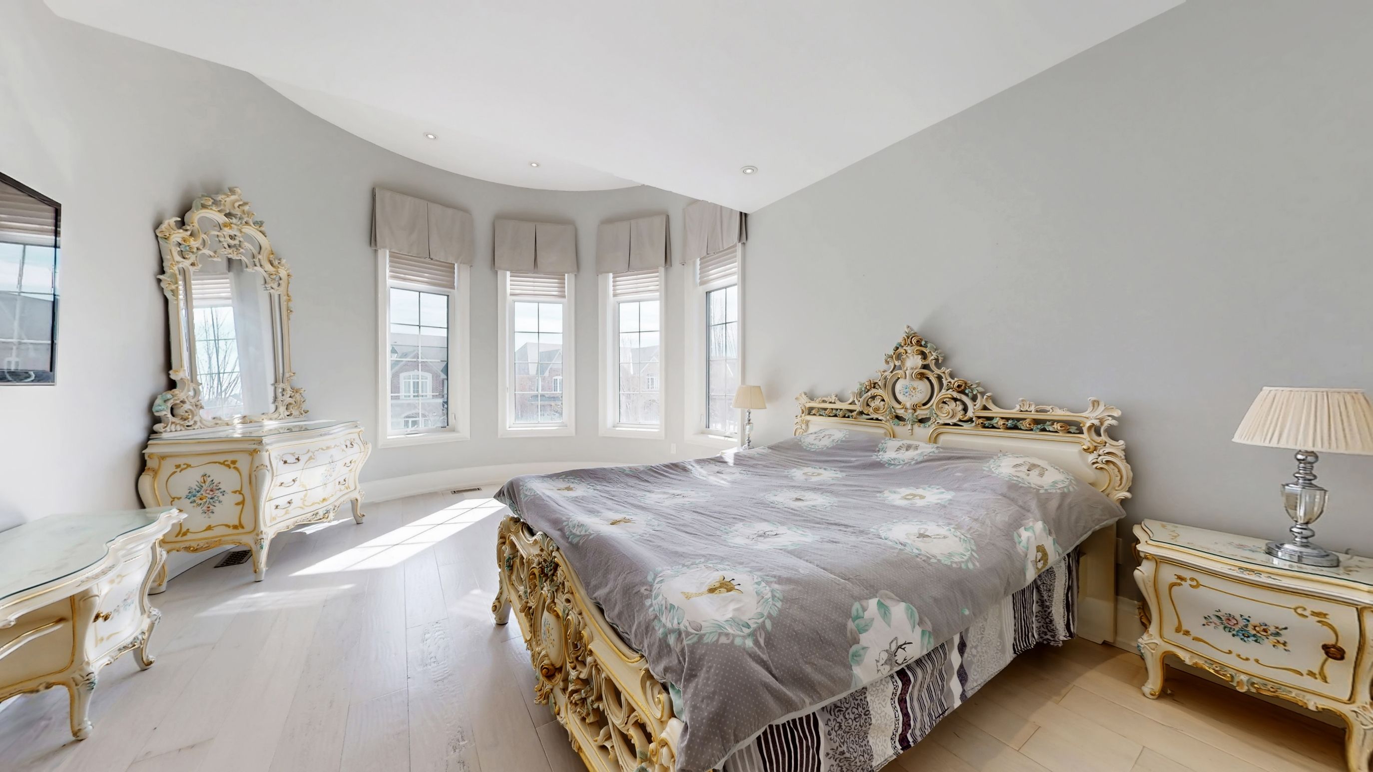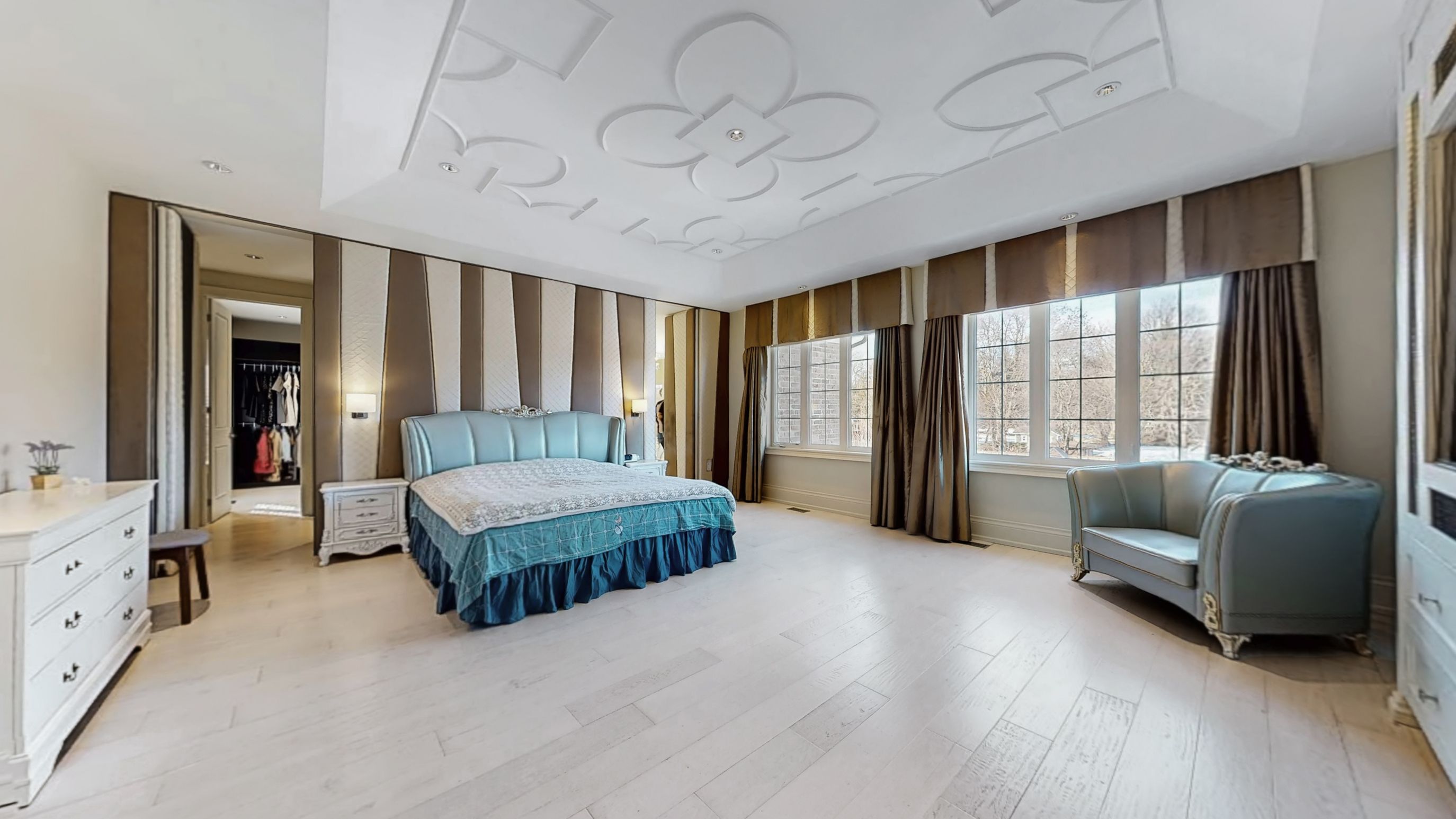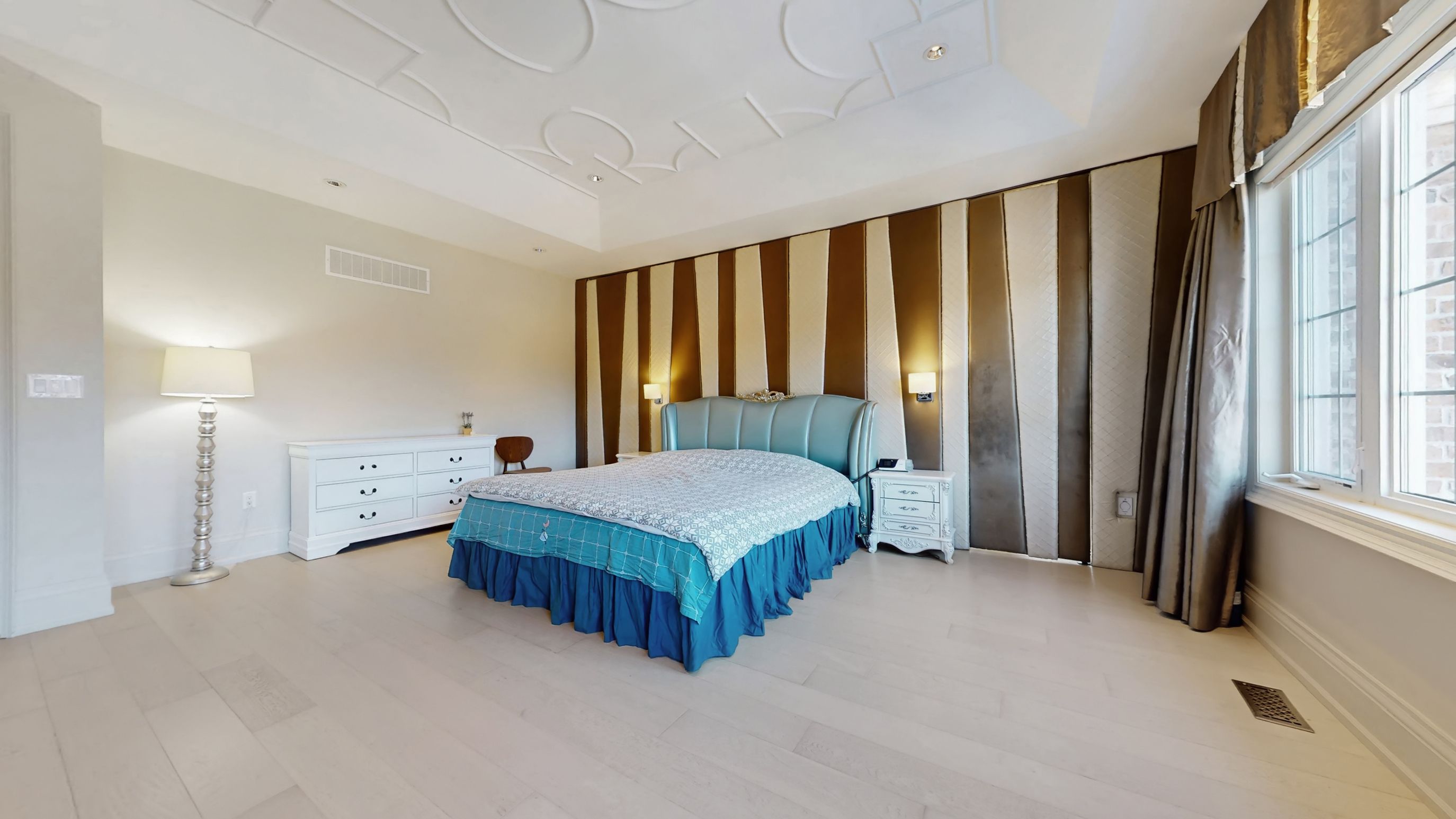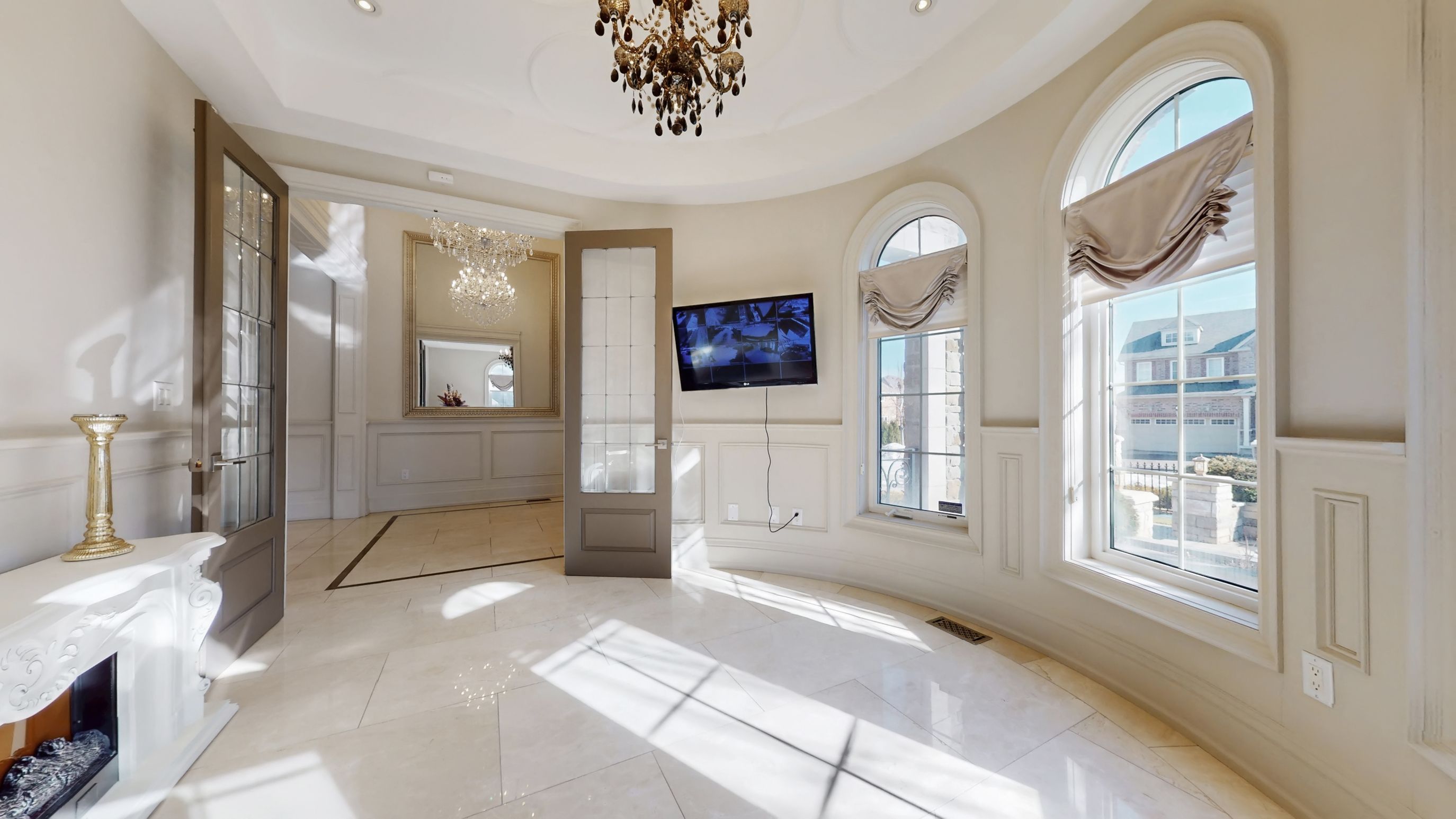 Magnificent custom built luxury château offering exceptional craftsmanship and over $1 million in premium upgrades! This stunning estate home features a rare 4-car garage and impressive curb appeal with elegant stone and brick exterior. Step inside to discover a grand interior highlighted by 10 ft ceilings on the main floor, luxurious heated marble flooring, and extensive custom wainscotting and wall panelling throughout. Elegant 9 inch baseboards run along the main and 2nd floors, showcasing the home's exceptional attention to detail. The impressive foyer opens to a dramatic staircase with wrought iron railings and leads into beautifully designed principal rooms. The spectacular 2 storey dining room with waffle ceilings creates an elegant space for entertaining, while the study, living room, and primary bedroom feature stunning custom floral pattern ceilings that add unique architectural character. At the heart of the home is a custom gourmet kitchen designed for both everyday living and hosting. The space features an impressive 12 ft centre island, premium sub-zero & wolf built-in appliances, custom cabinetry, stone counters, and high-end finishes throughout. Upstairs offers 9 ft ceilings and spacious bedrooms including a luxurious primary suite with heated marble floors in the spa-like ensuite. The walk-up basement offers incredible flexibility with a nanny or in-law suite featuring 2 bedrooms, second kitchen, cinema room, laundry, and additional living space. The professionally landscaped $500k+ backyard oasis is designed for relaxation and entertaining, featuring elegant stonework, water feature with 2 fountains, multiple outdoor seating areas, and a luxury hot tub, creating a private resort-style retreat. A truly remarkable home combining grand architecture, premium upgrades, and exceptional indoor-outdoor living in a prime victoria square location in markham.