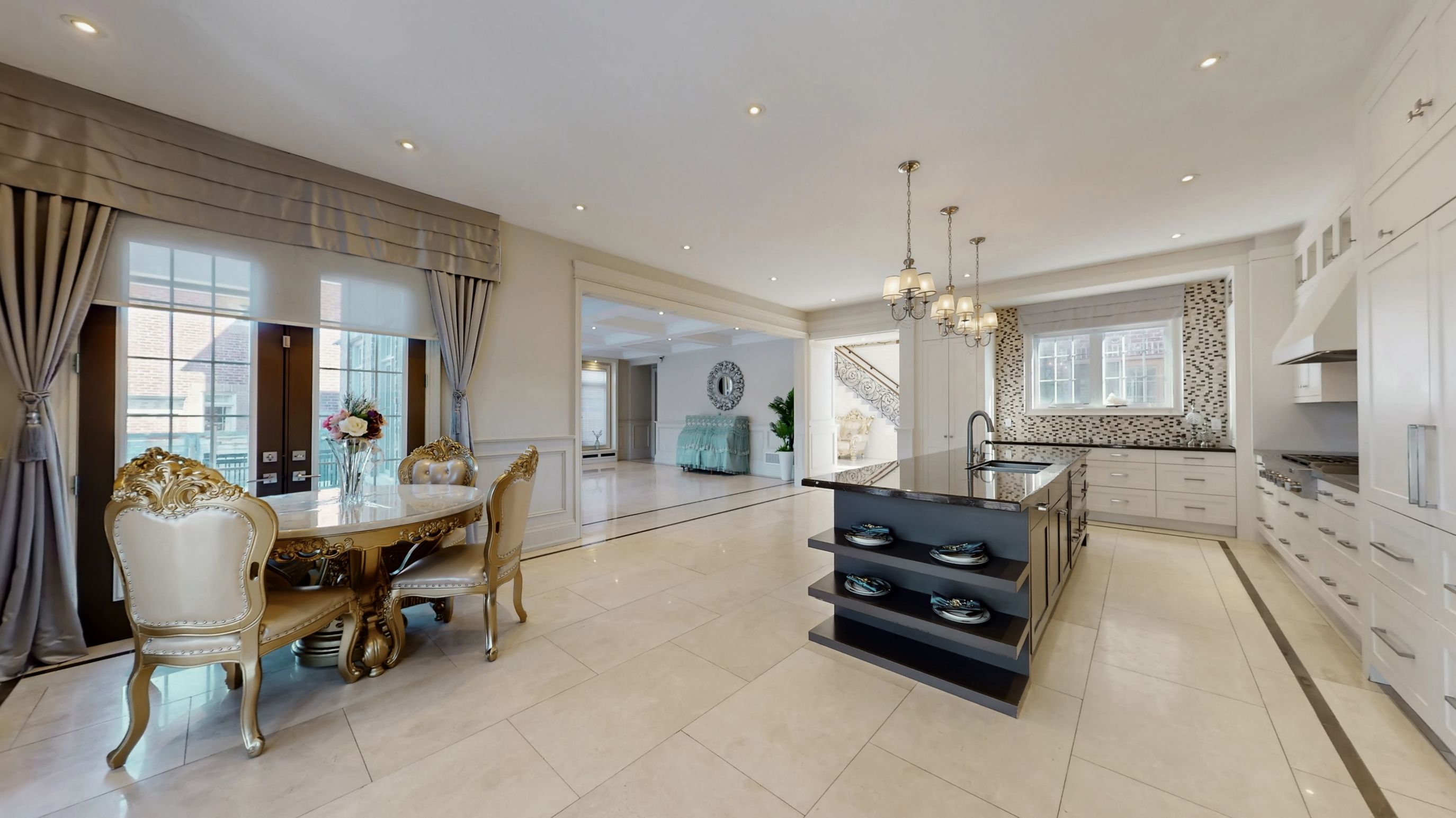 • Gourmet kitchen with high-end appliances and a large center island.