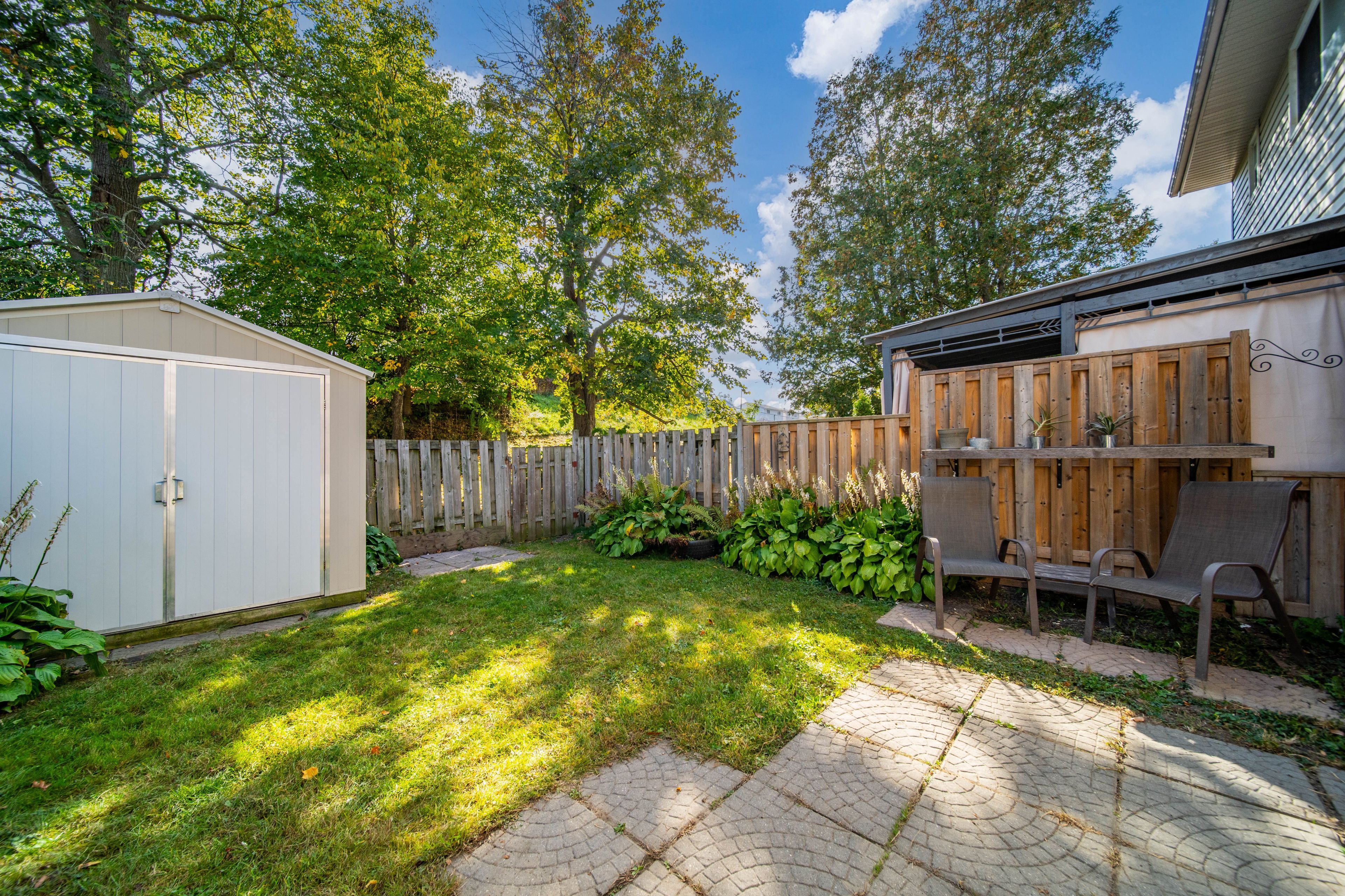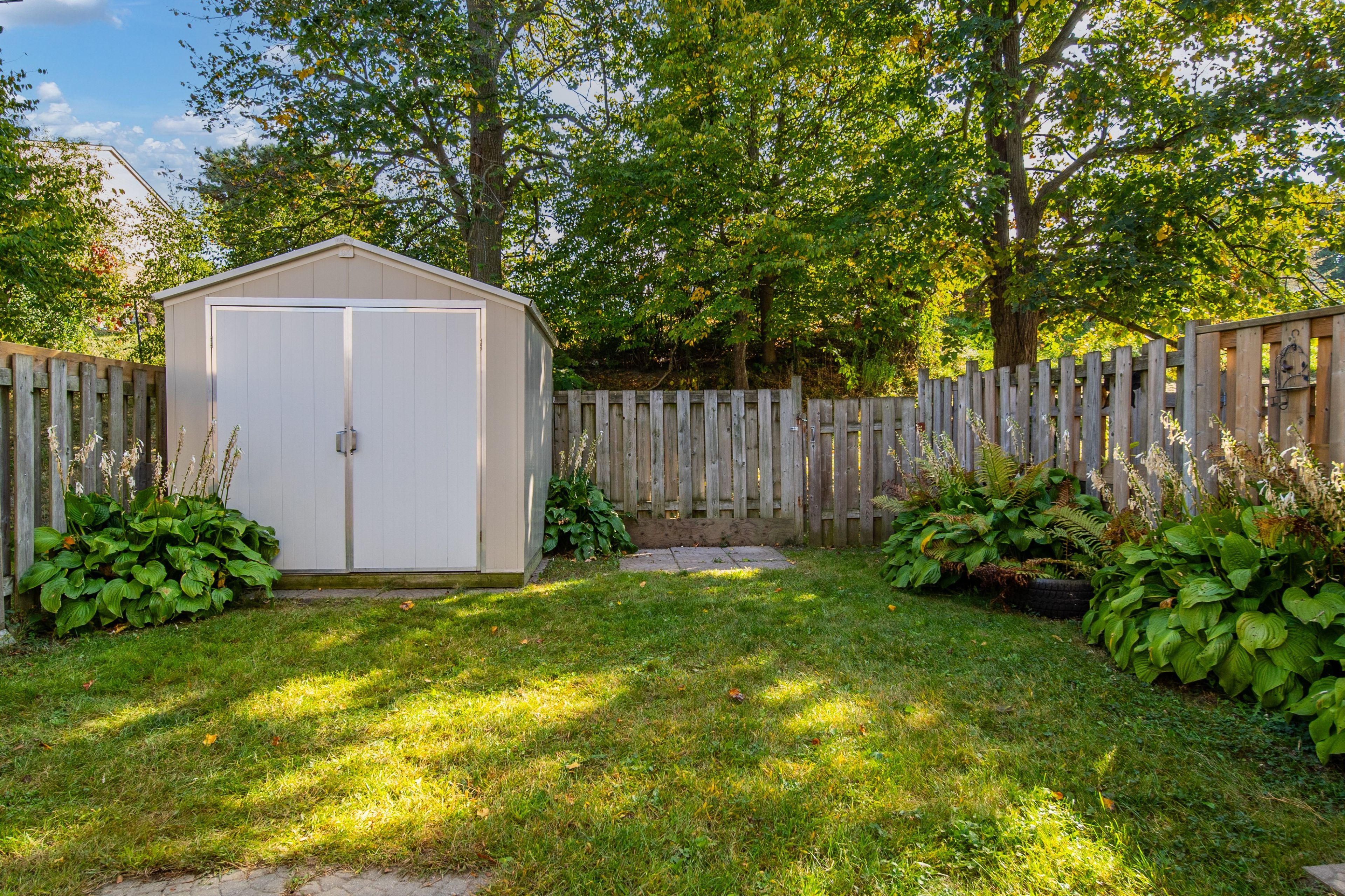 Welcome home to this lovely end-unit townhome, located in the beautiful neighbourhood of strathcona park! The main floor features a good sized living room with a pass-through to the eat-in kitchen, a 2-piece bathroom, and laminate floors. The bright kitchen provides access to the private, fully fenced rear yard, complete with patio, large garden shed, mature trees and no rear neighbours! There are three good-sized bedrooms and a 4pc bath on the updated and carpet-free upper level. The fully finished basement features a fourth bedroom, family room and spacious laundry/storage room. Centrally located, minutes to everywhere, with wonderful schools, and parks, this home is perfect for a family to call home!