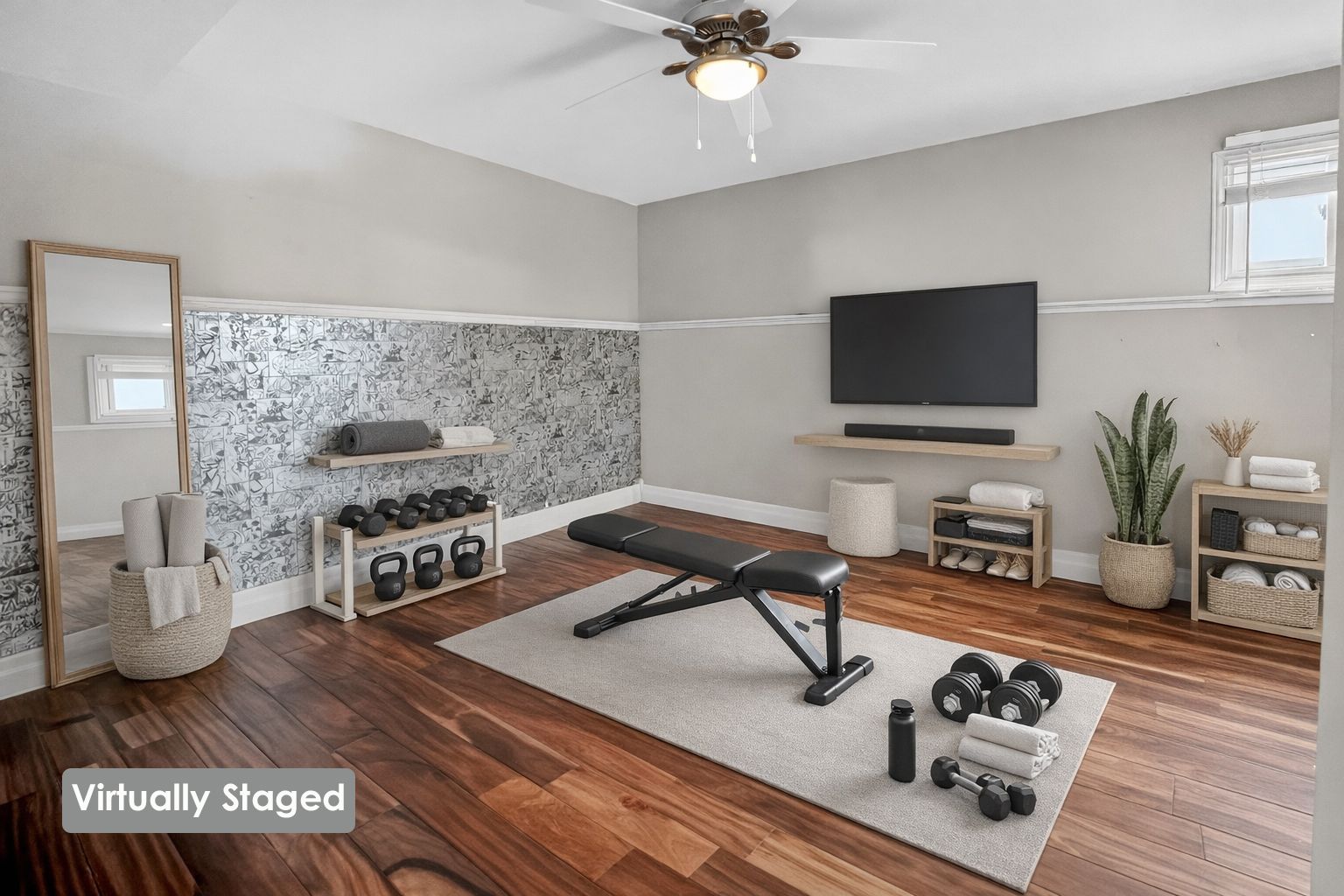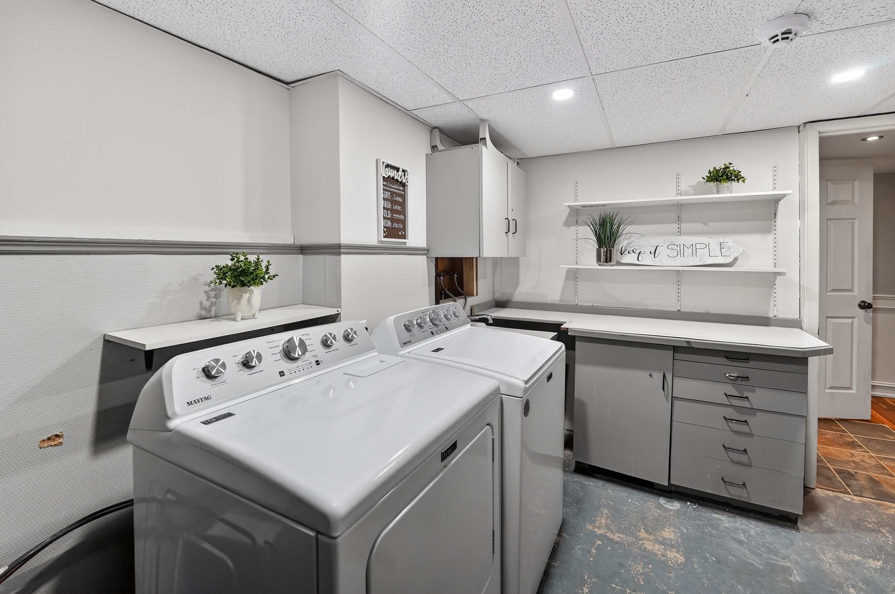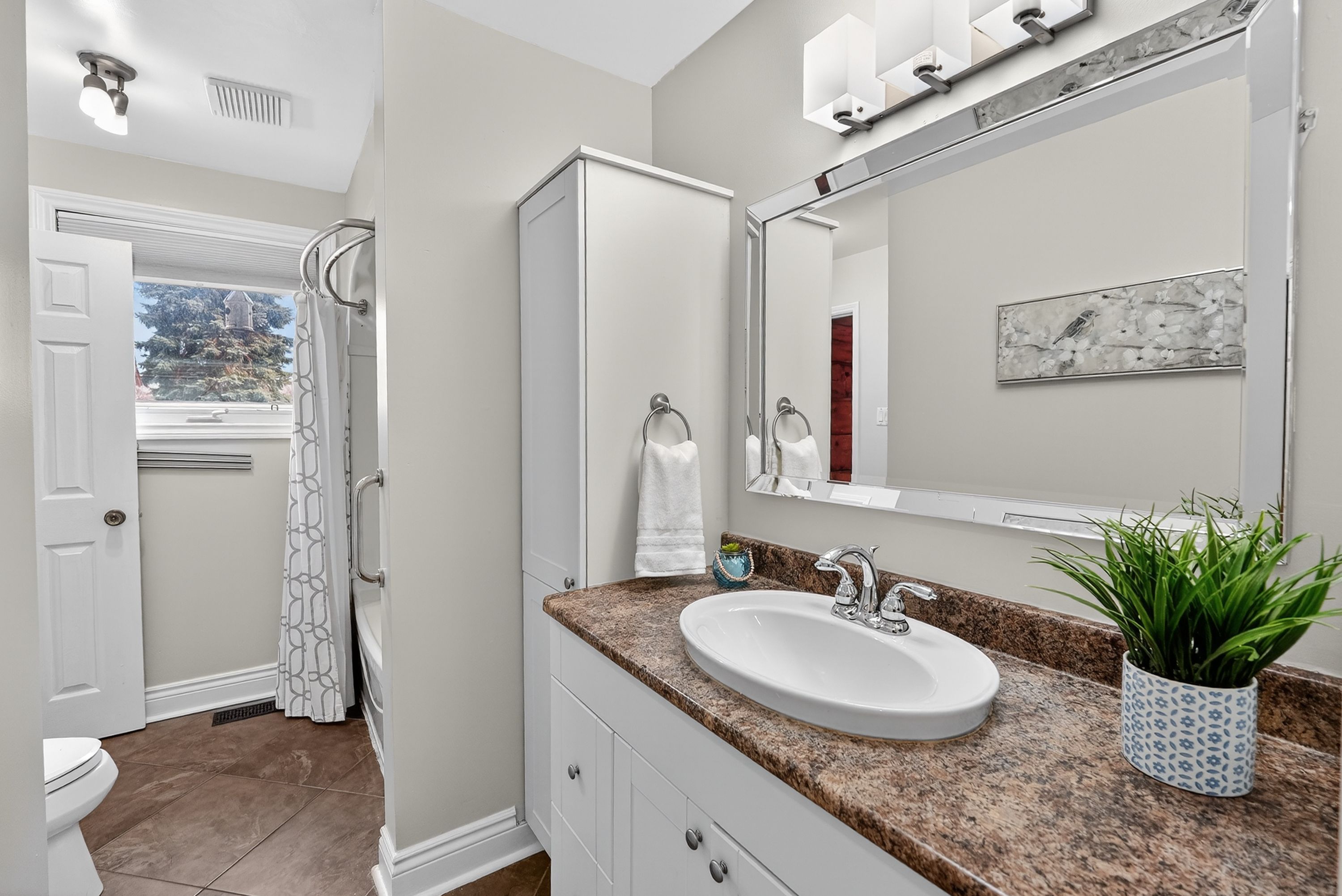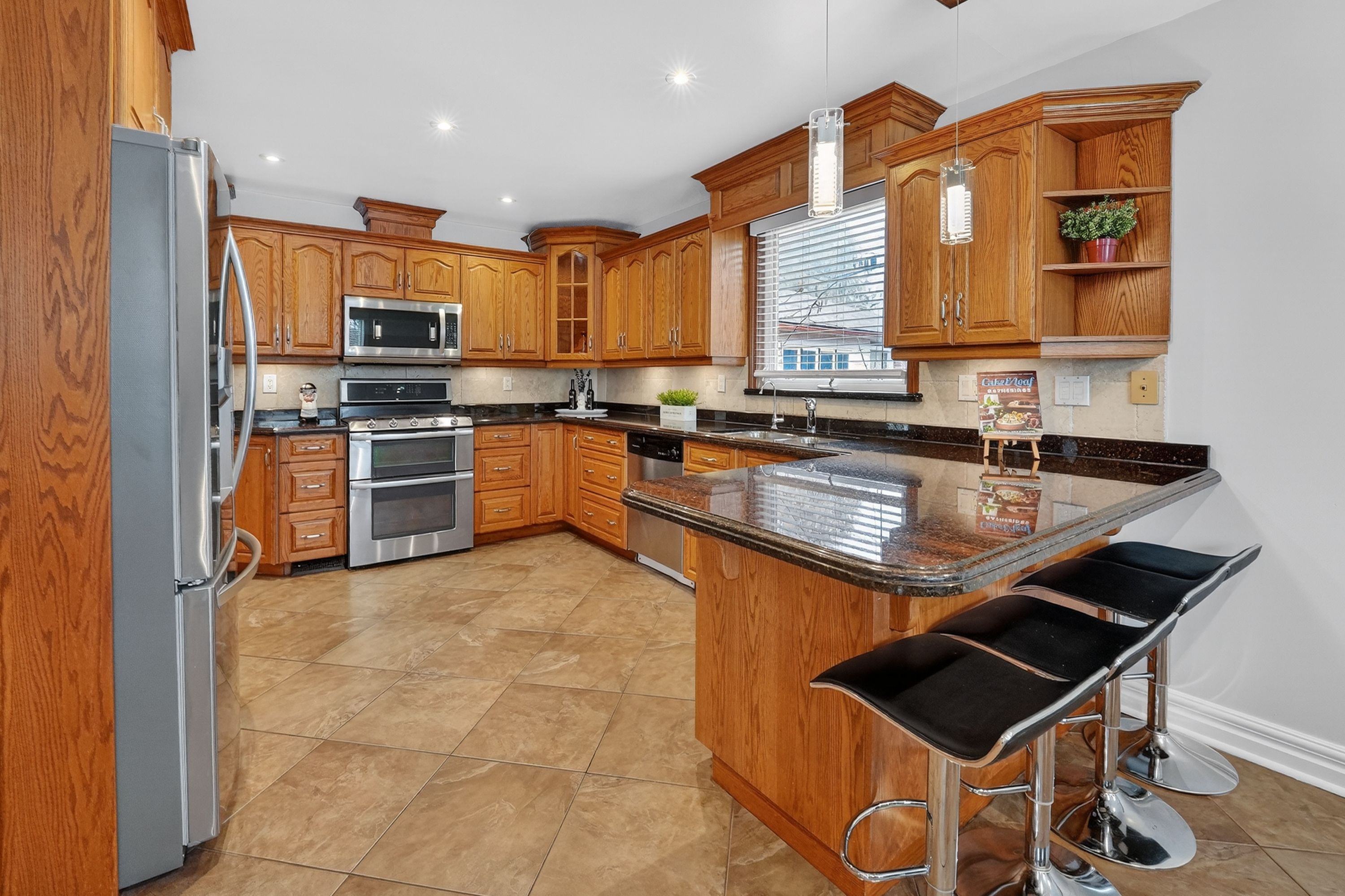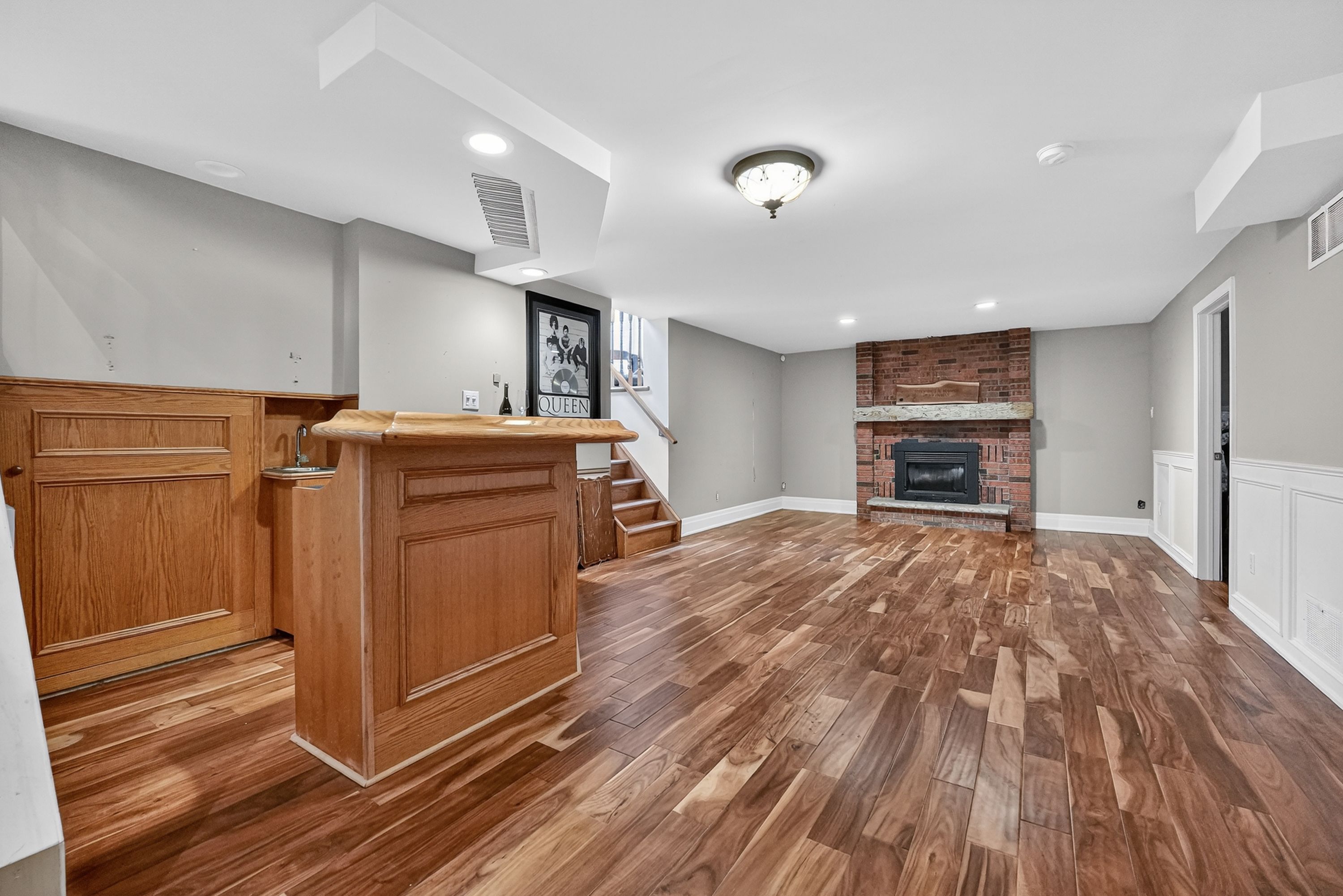 • Fully finished basement with a rec room, wet bar, and extra bedroom space.