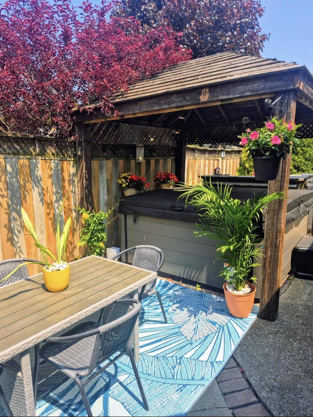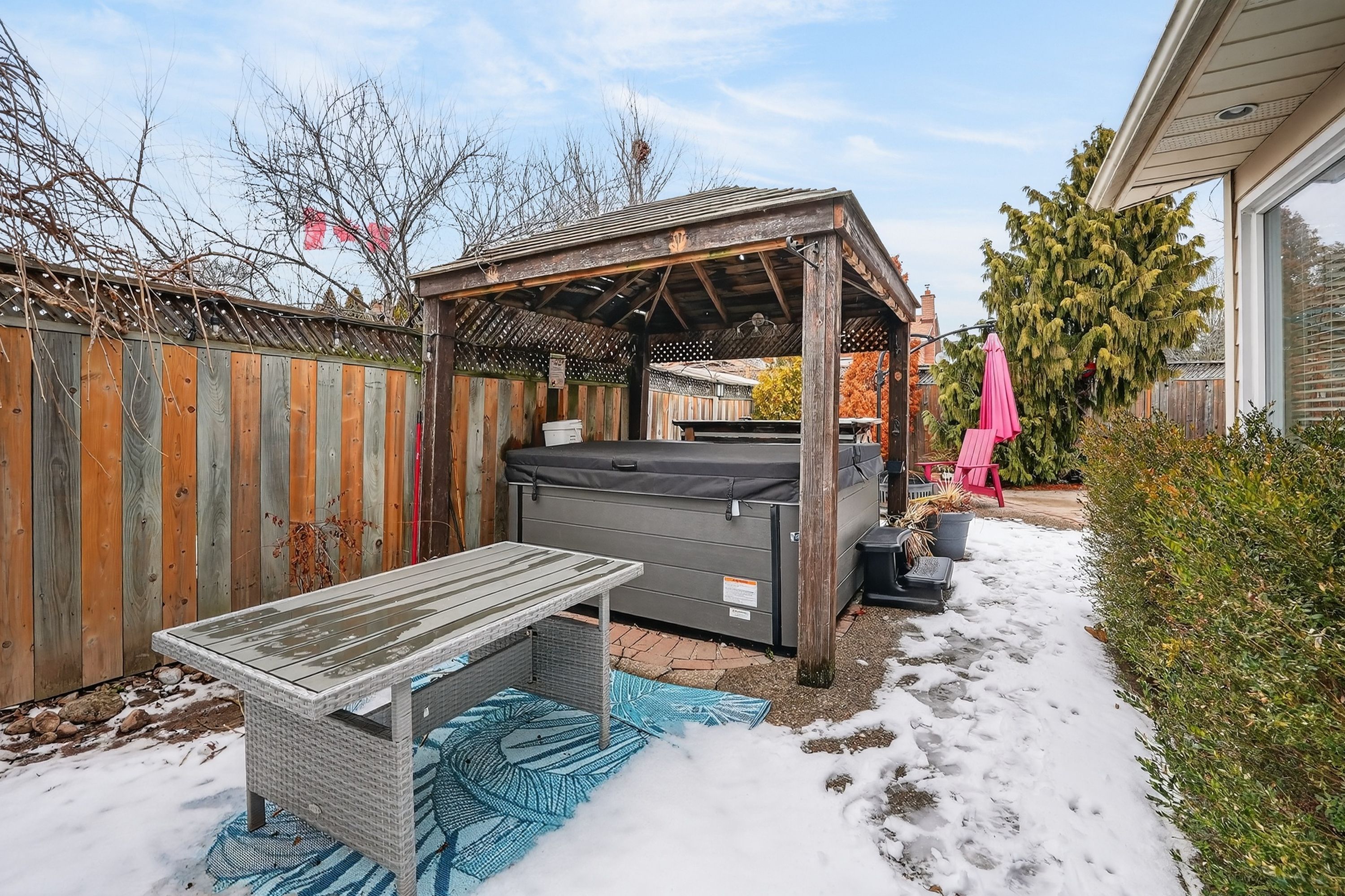 • Backyard features a fully fenced yard with an inground pool and hot tub.