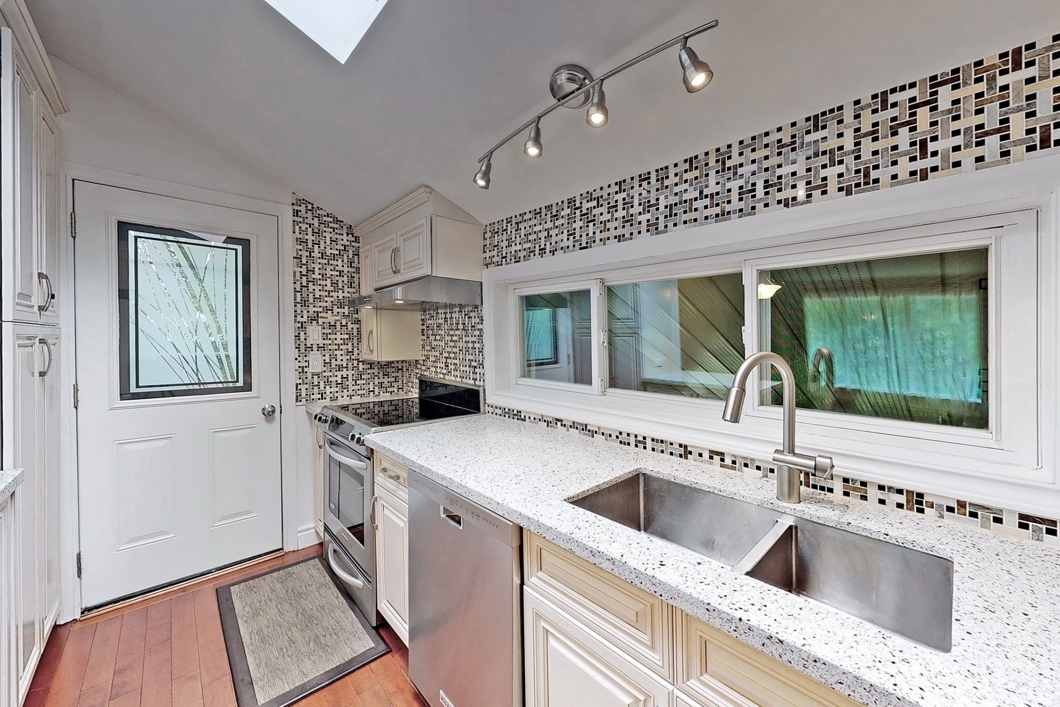 • Chef's kitchen with skylights and KitchenAid appliances for cooking enthusiasts.