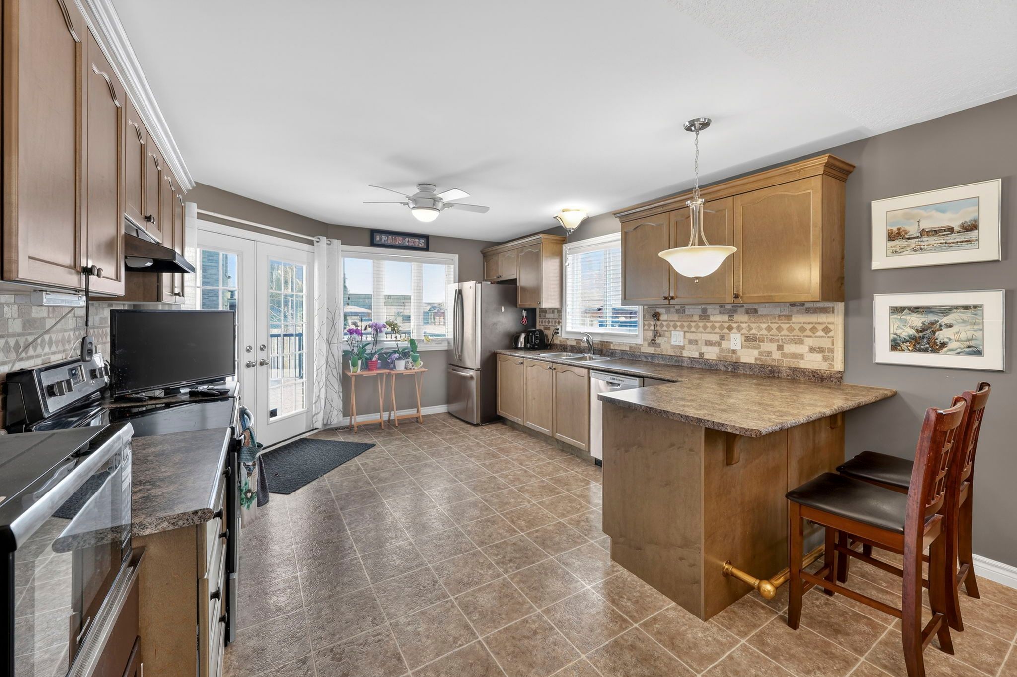 • Spacious kitchen with newer stainless appliances and access to a large deck.