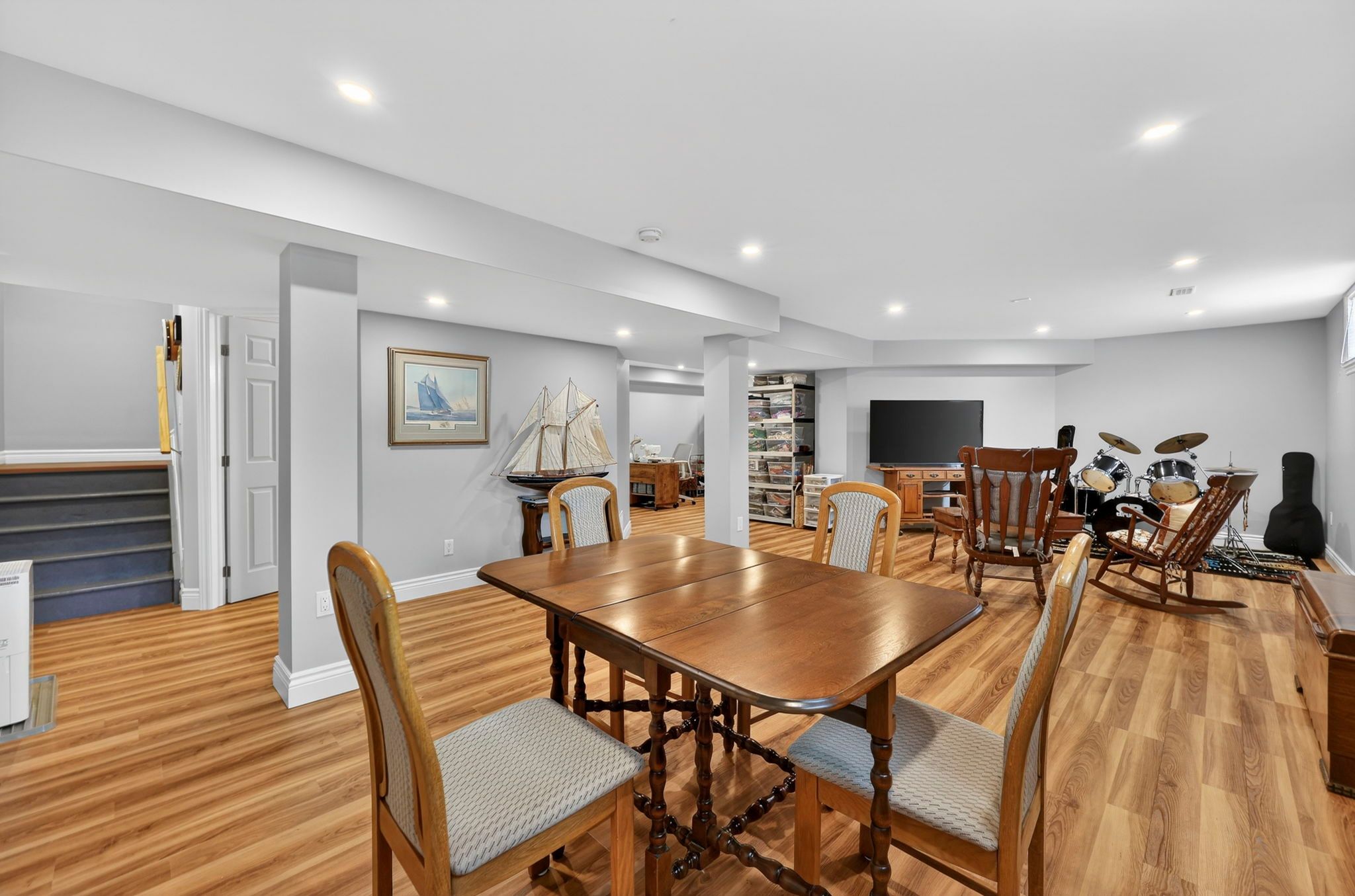 • Finished basement with recreation room and workshop space for hobbies.