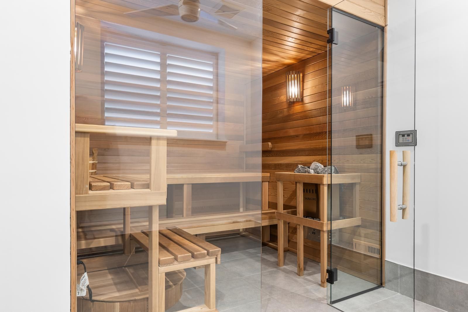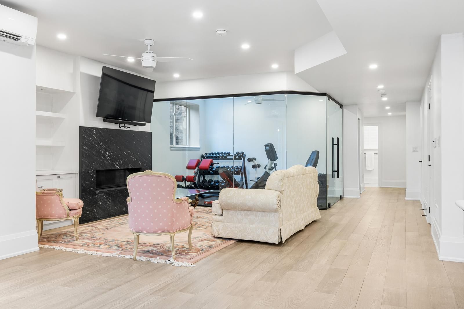 • Bright finished basement with recreation area, exercise room, and sauna.