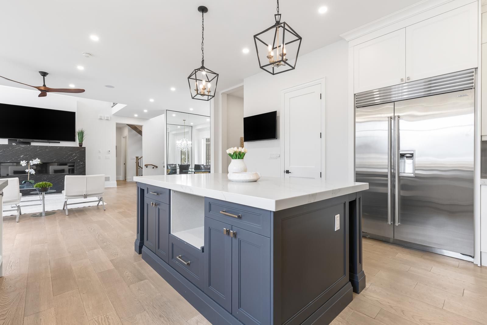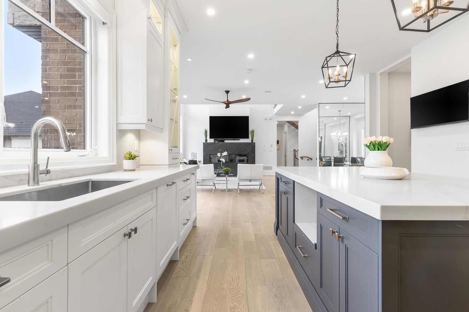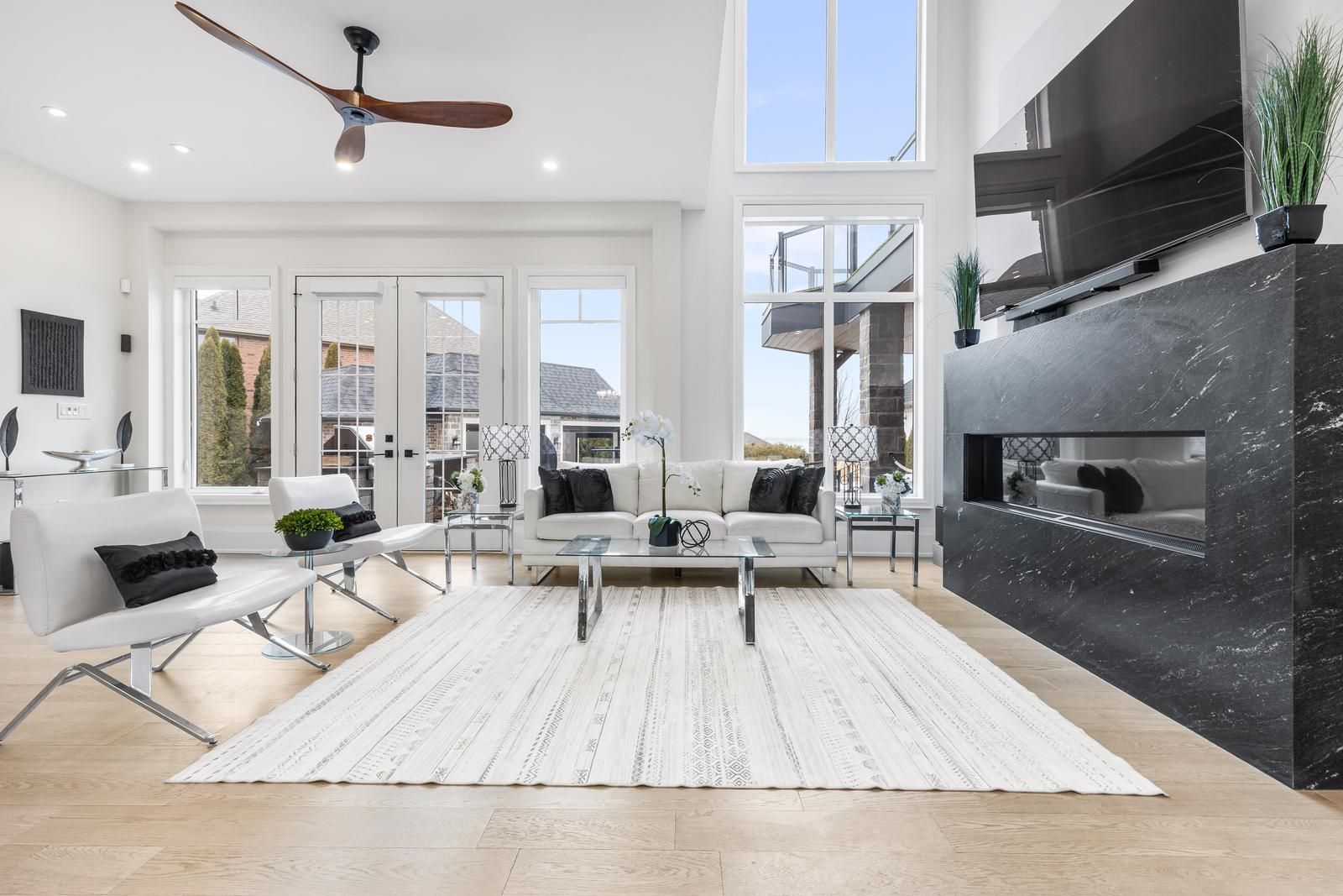 • Open-concept main floor features high ceilings and a modern chef's kitchen.