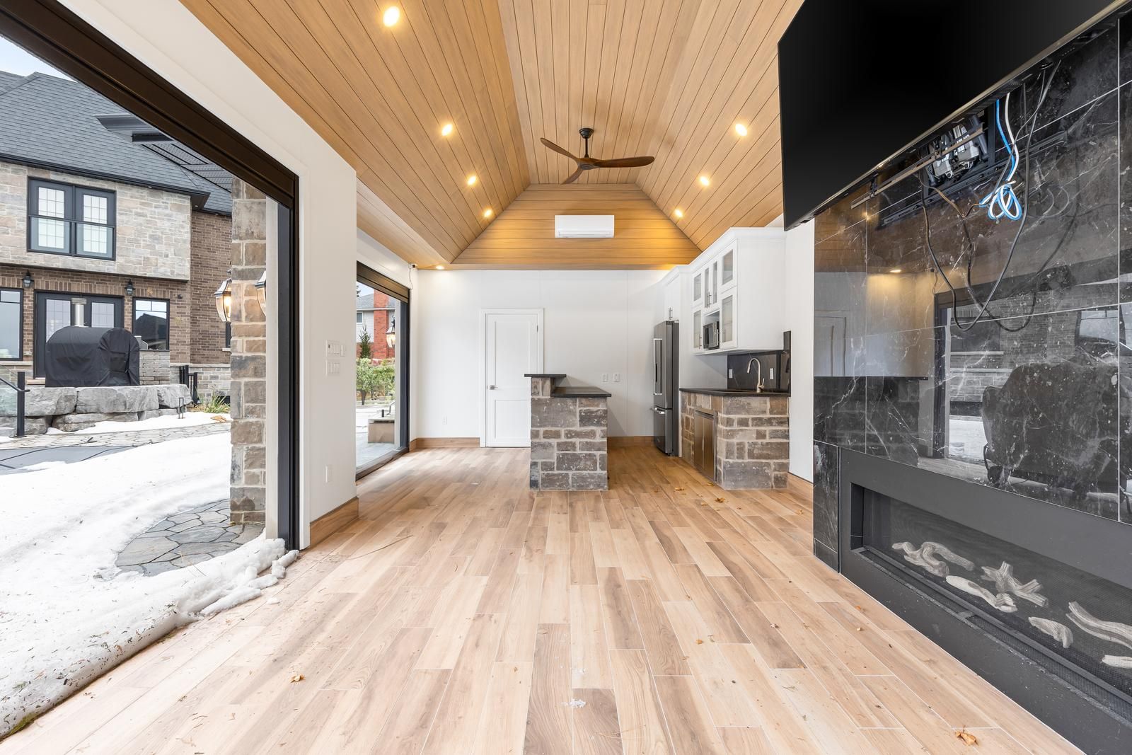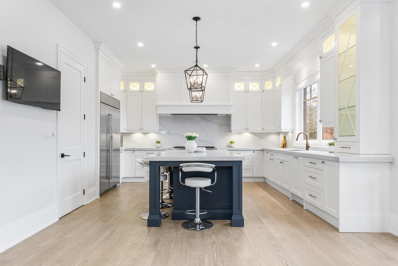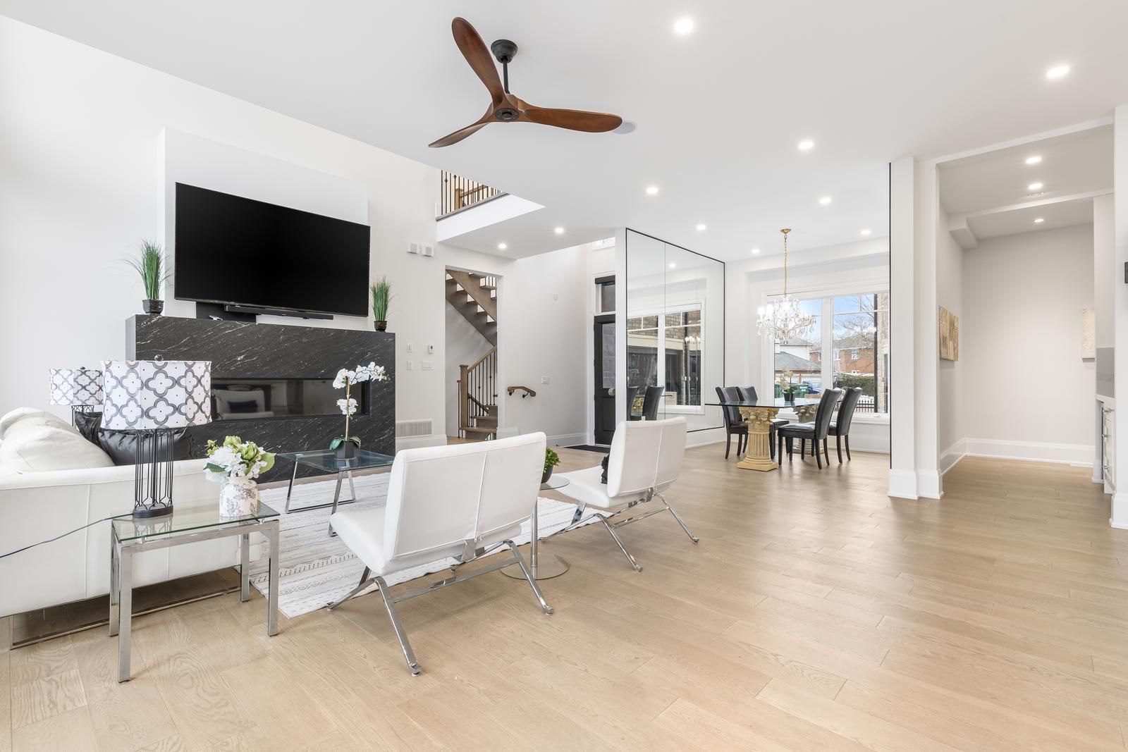 • Open-concept main floor features high ceilings and a modern chef's kitchen.
