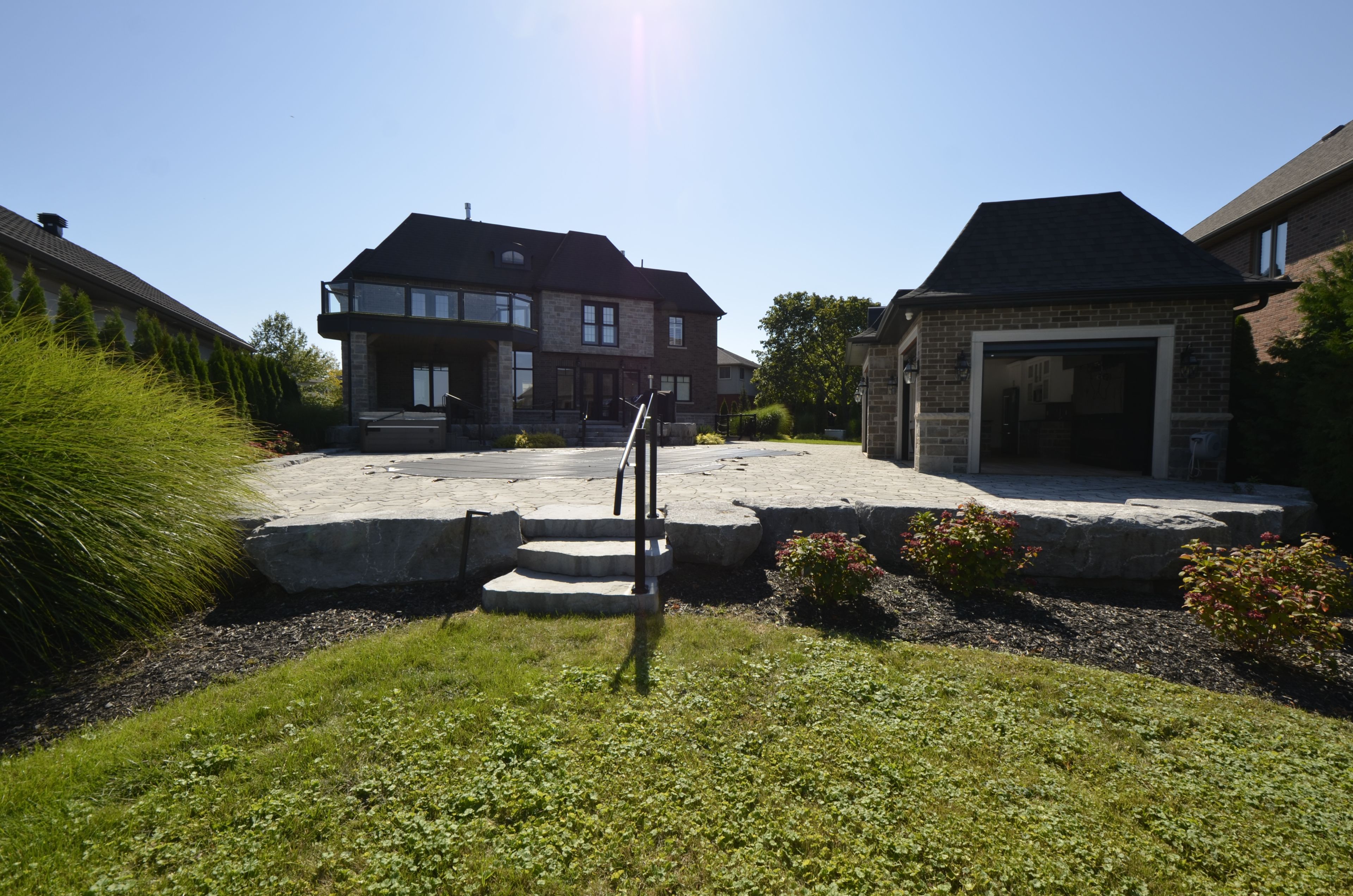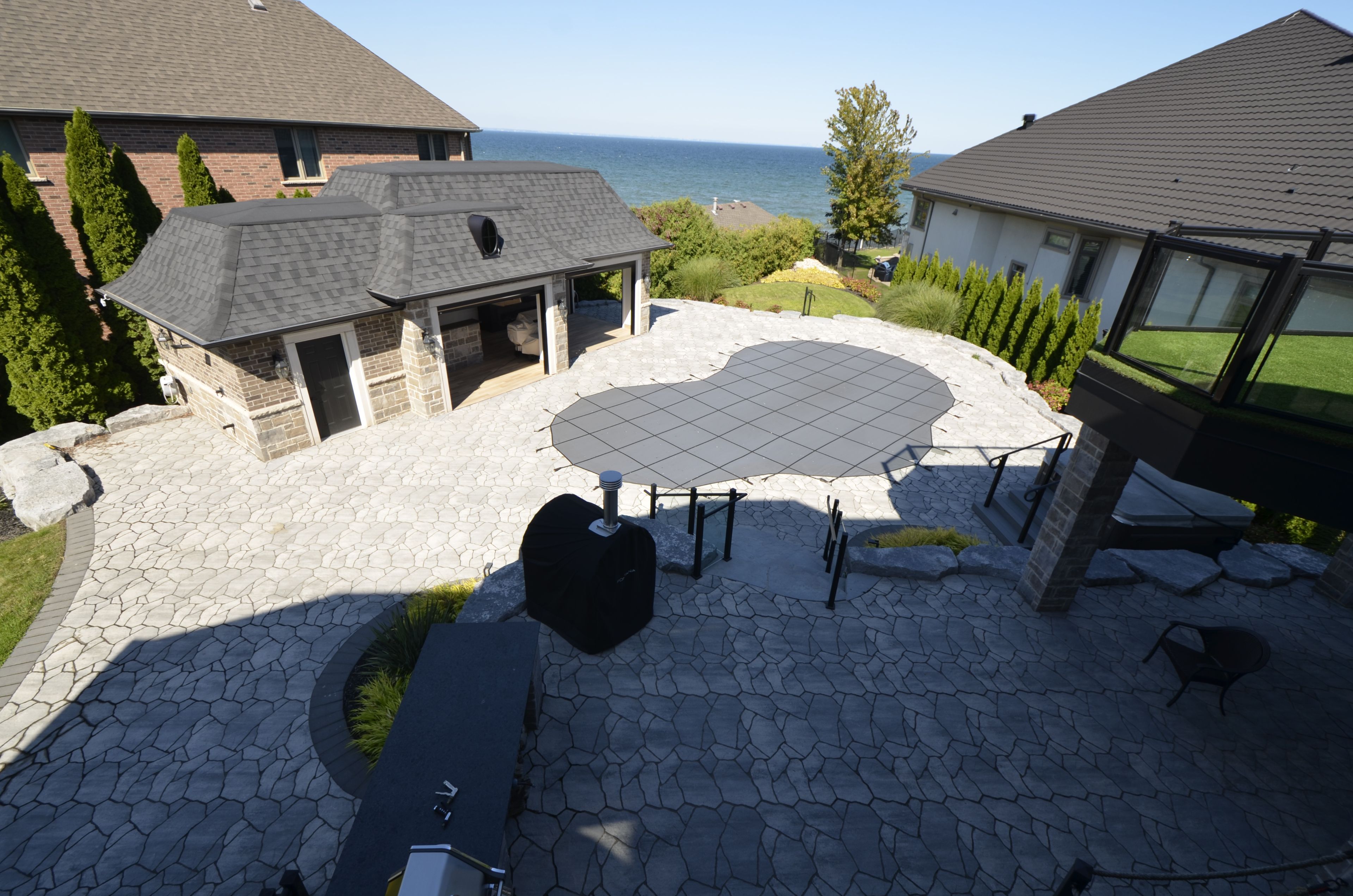 • Private resort-style backyard with a pool, outdoor kitchen, and BBQ area.