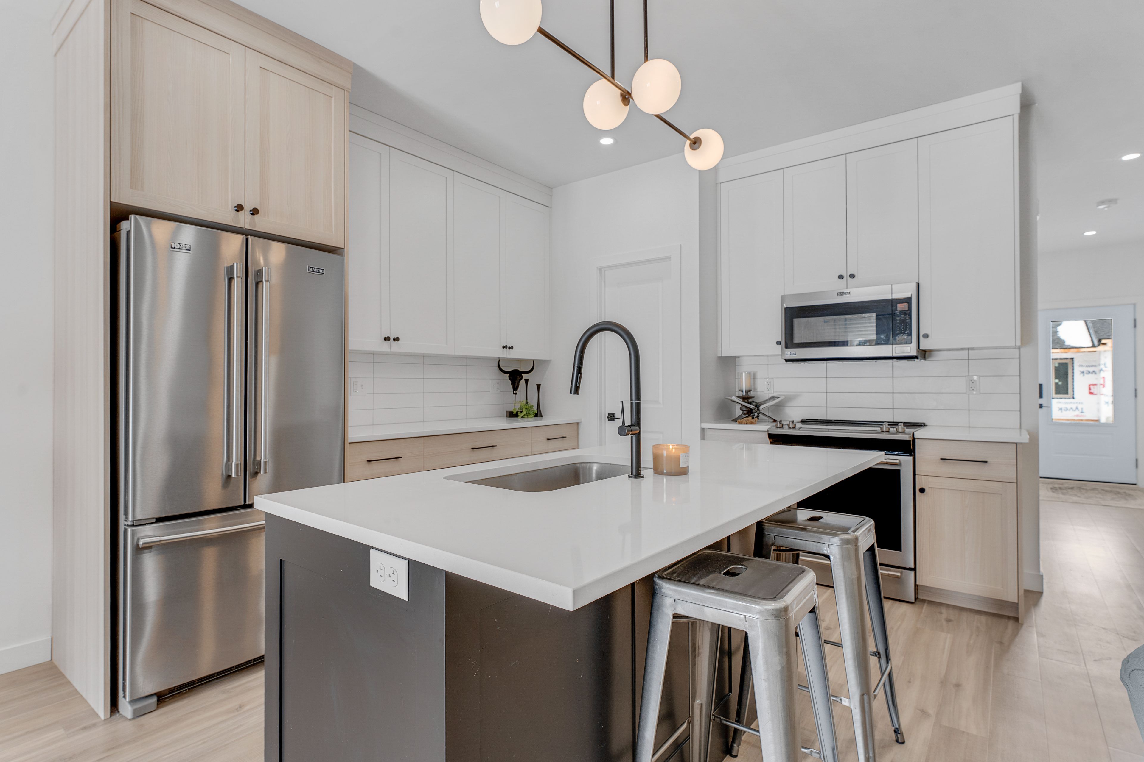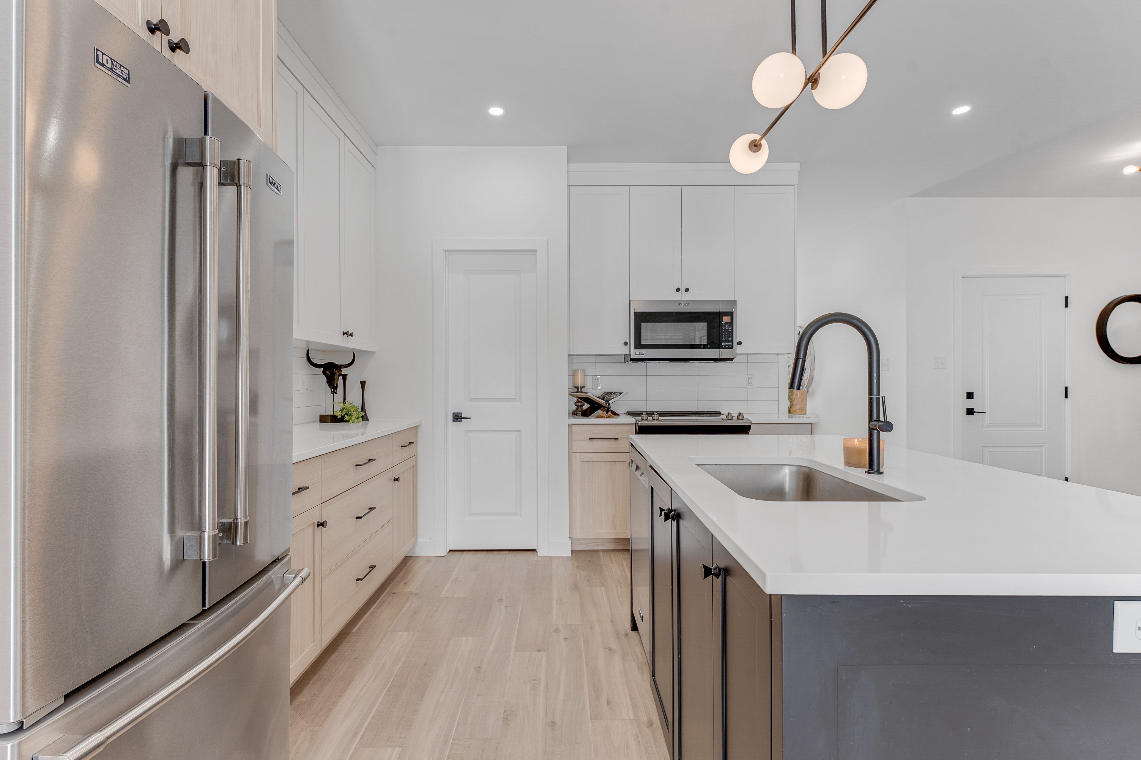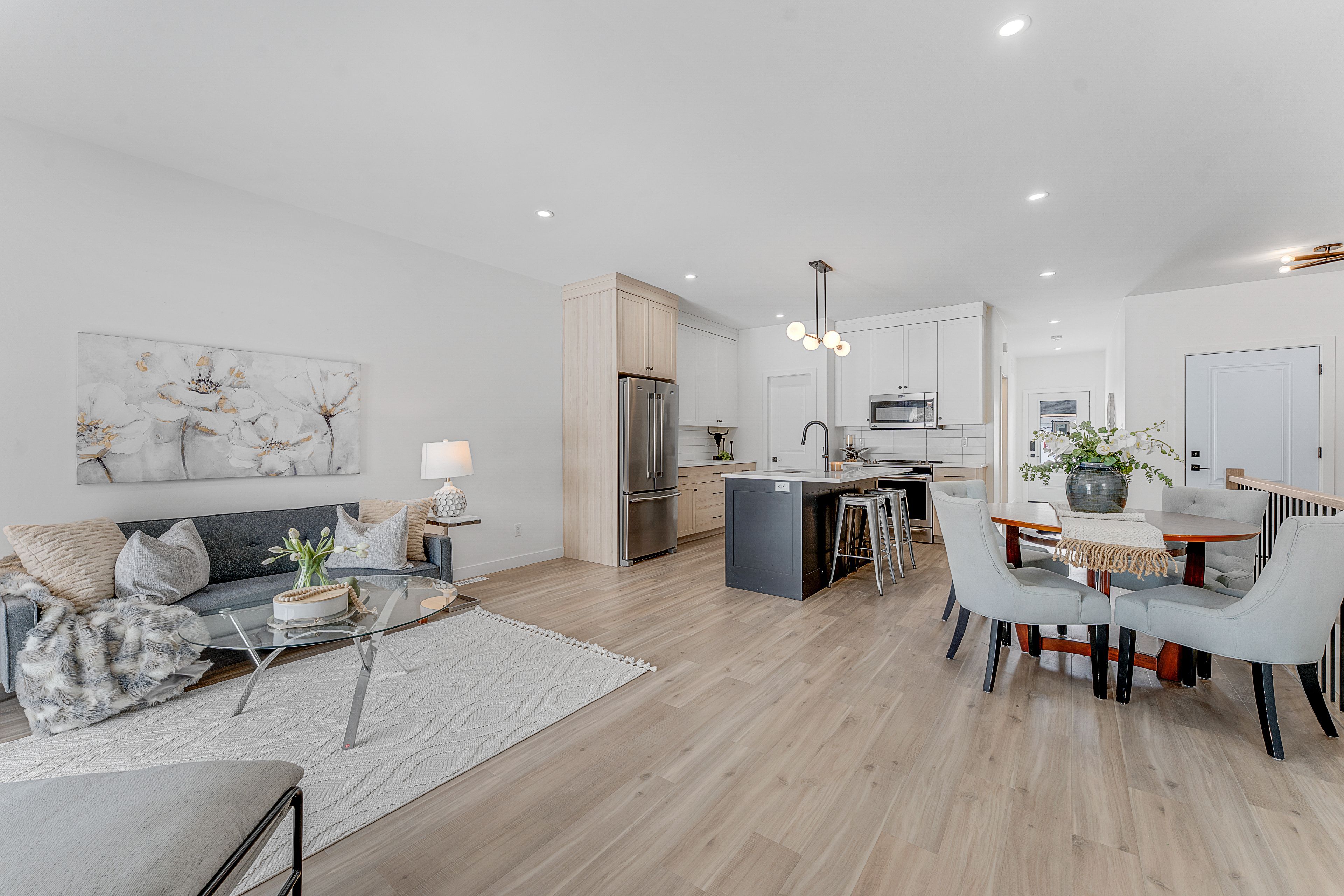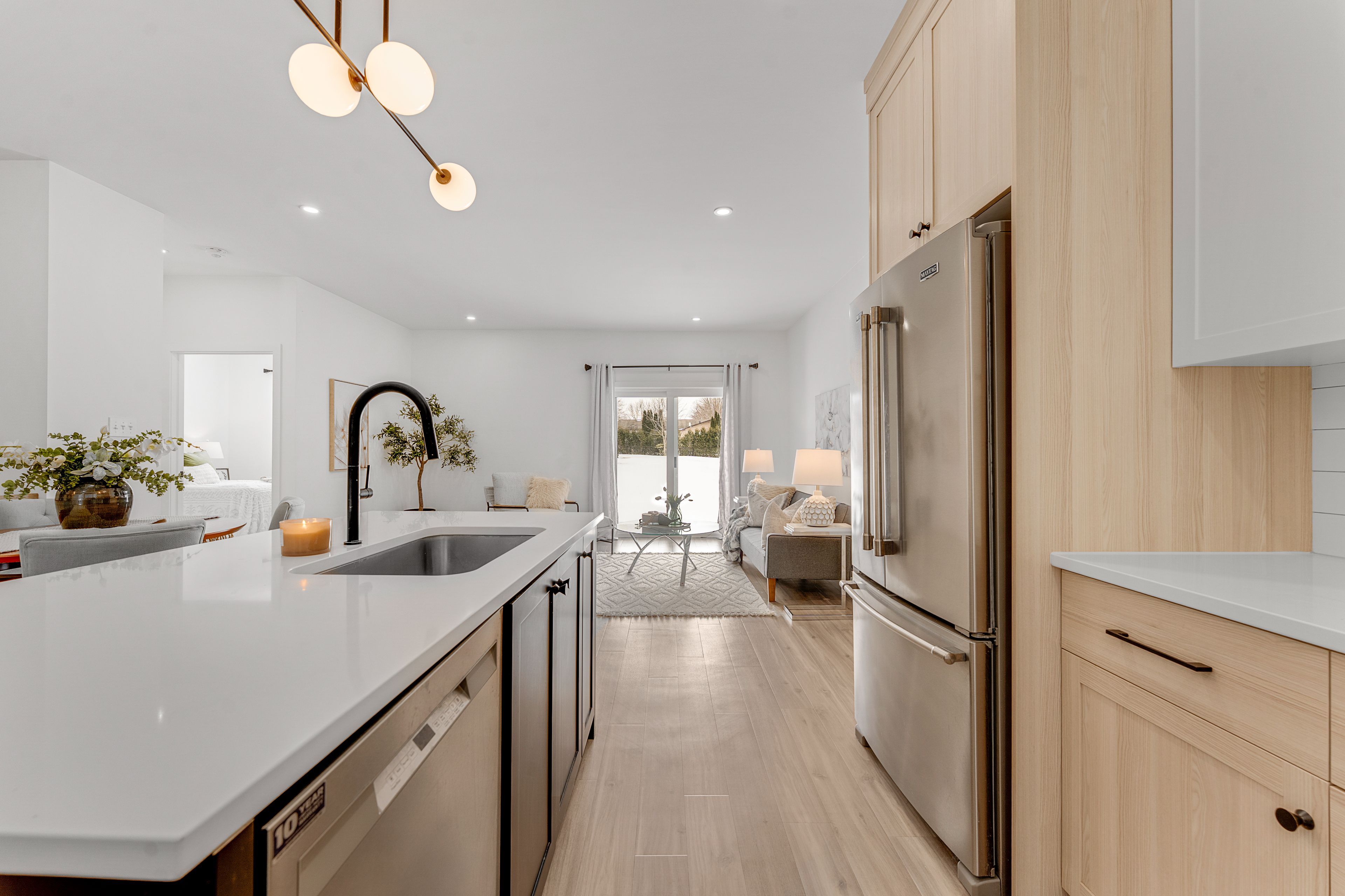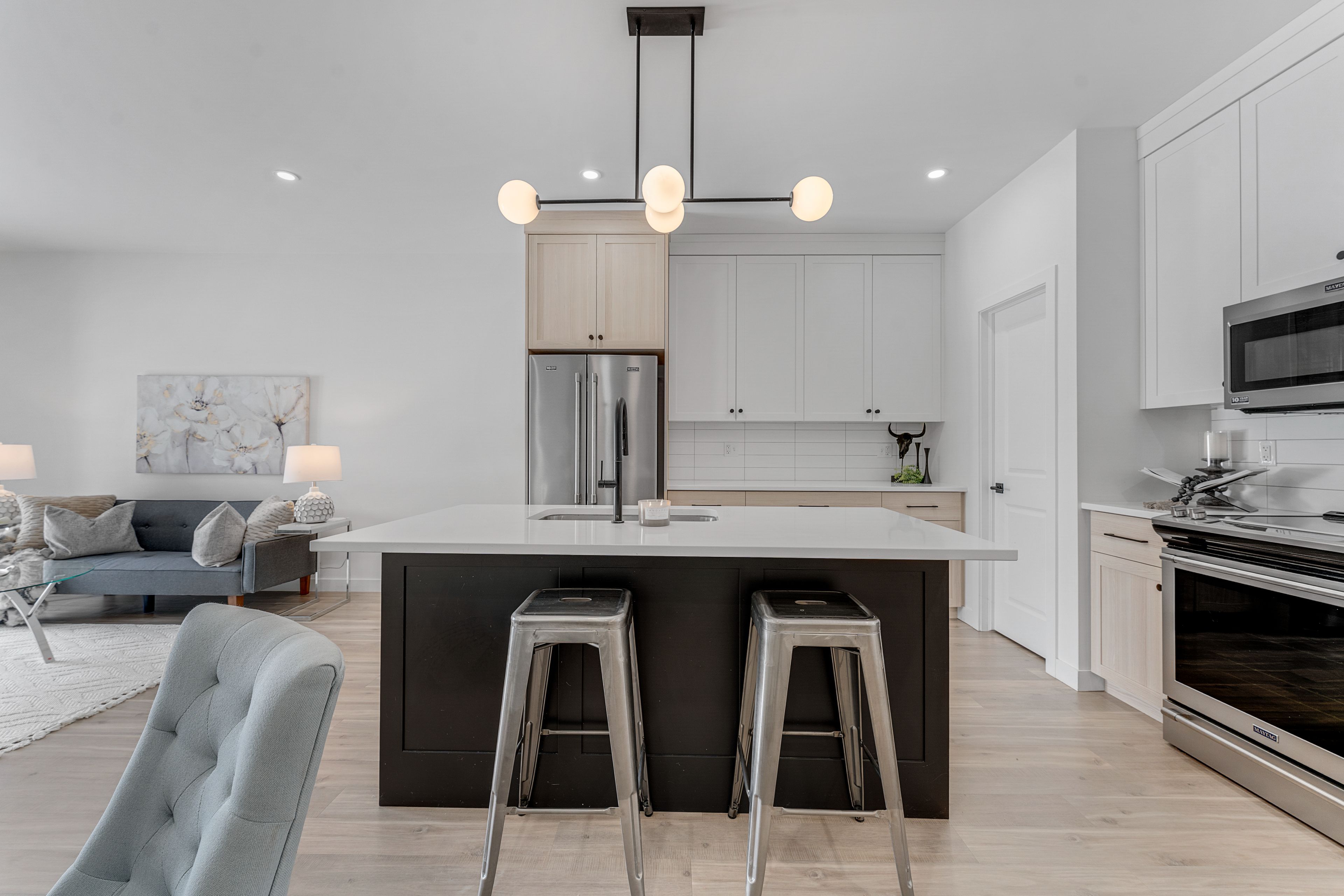 • Open concept layout with a custom kitchen and quartz countertops.