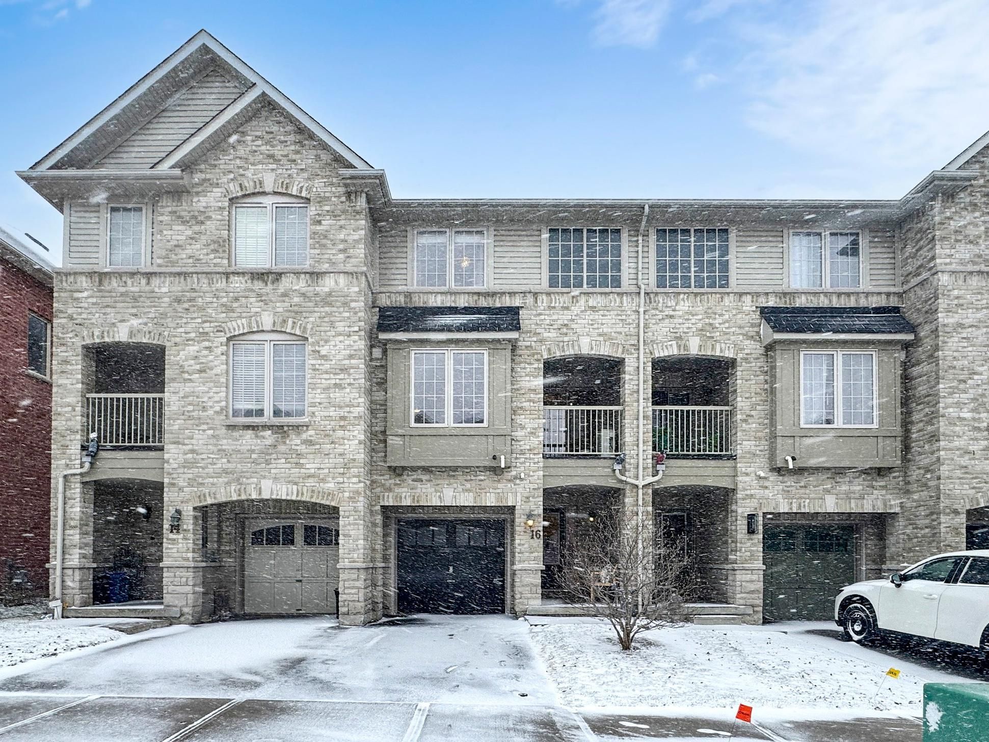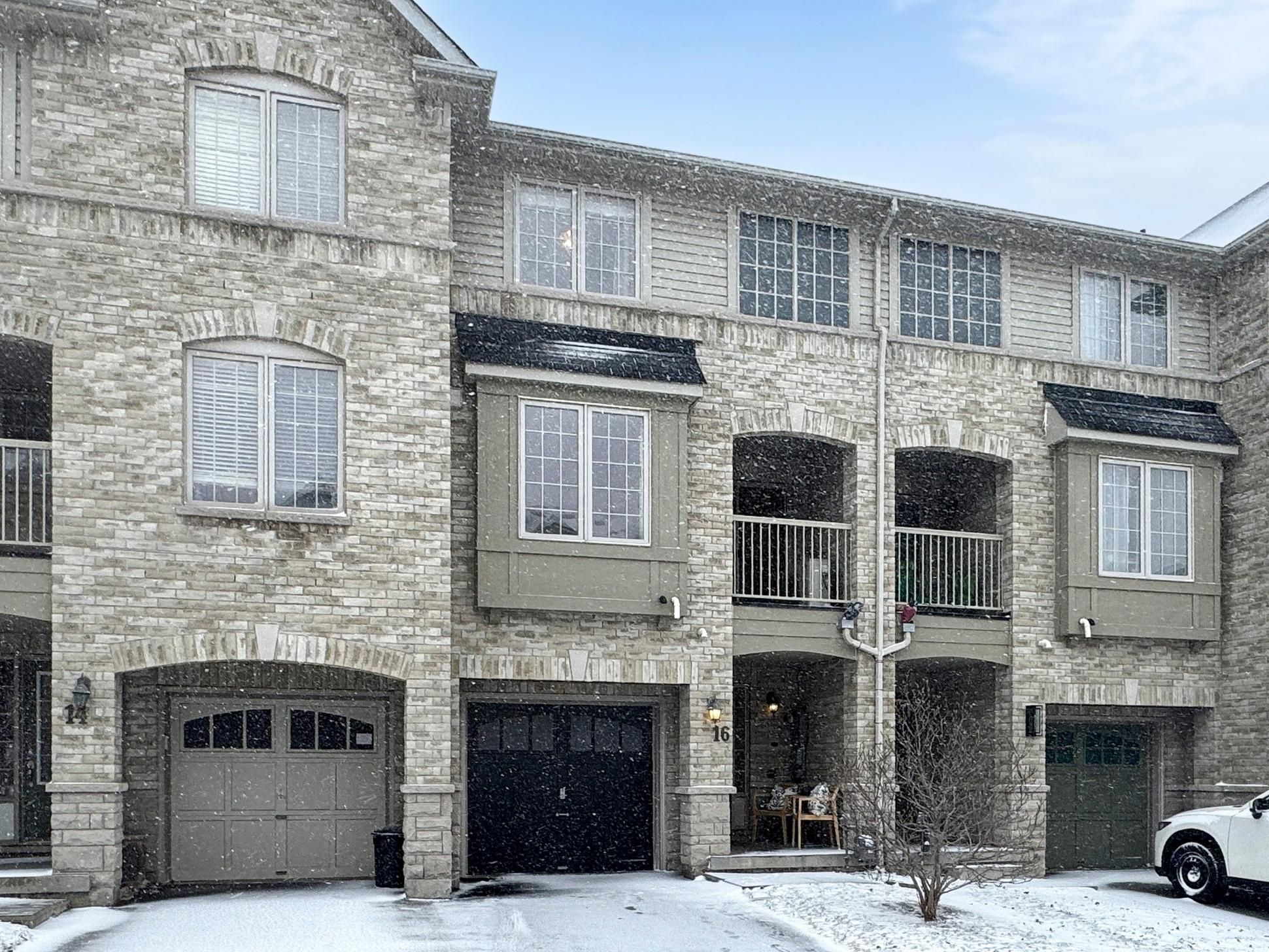 Welcome to 16 silvester st in northeast ajax-a beautifully updated freehold townhome with no maintenance or potl fees. This bright and functional home features 2 bedrooms and 1 bathroom with a thoughtfully designed open-concept layout. The main level showcases a modern eat-in kitchen with quartz countertops, flowing seamlessly into the living and dining area, complete with a walk-out to a private balcony-perfect for your morning coffee. Recent upgrades include hardwood flooring throughout (no carpet) and a refinished staircase with wooden treads and modern metal spindles, creating a clean contemporary look. Freshly painted and move-in ready. The third level features a spacious primary bedroom with his-and-her closets, easily accommodating a king-size bed, along with a second bedroom highlighted by a skylight. Convenient third-floor laundry adds everyday practicality. Additional features include direct access from the attached garage and parking for up to 2 vehicles. Located in a family-friendly neighborhood, steps from parks and the highly rated viola desmond public school, and minutes to highway 401, highway 407, shopping, restaurants, banks, and costco wholesale. Garage has custom built in storage unit for additional storage