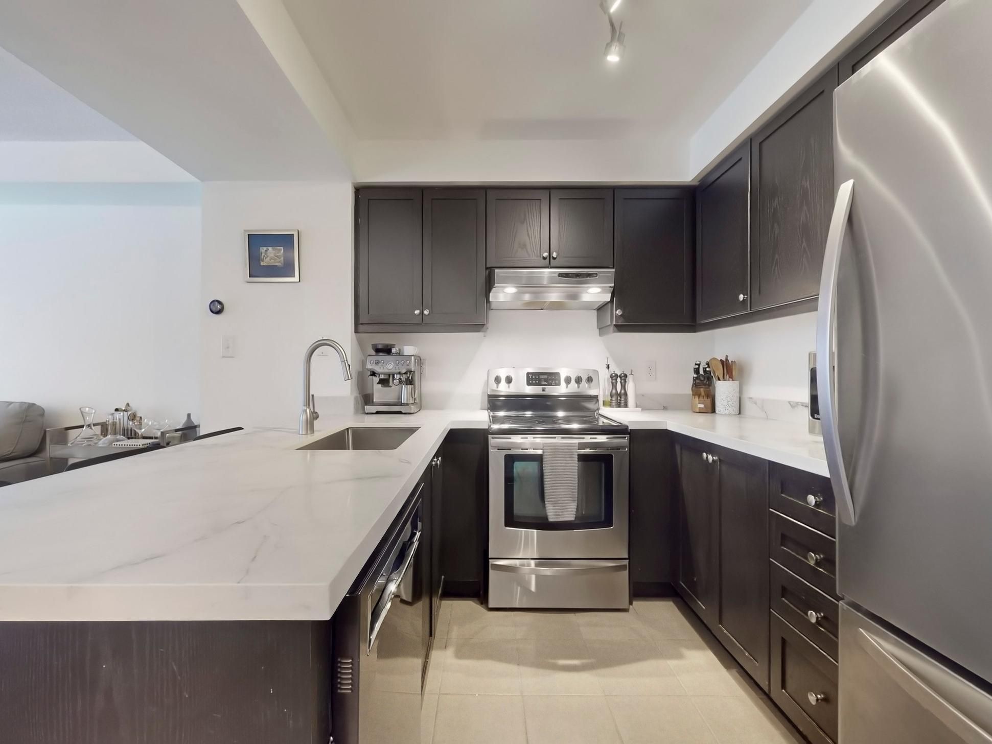 • Bright open-concept layout with a modern eat-in kitchen and balcony.