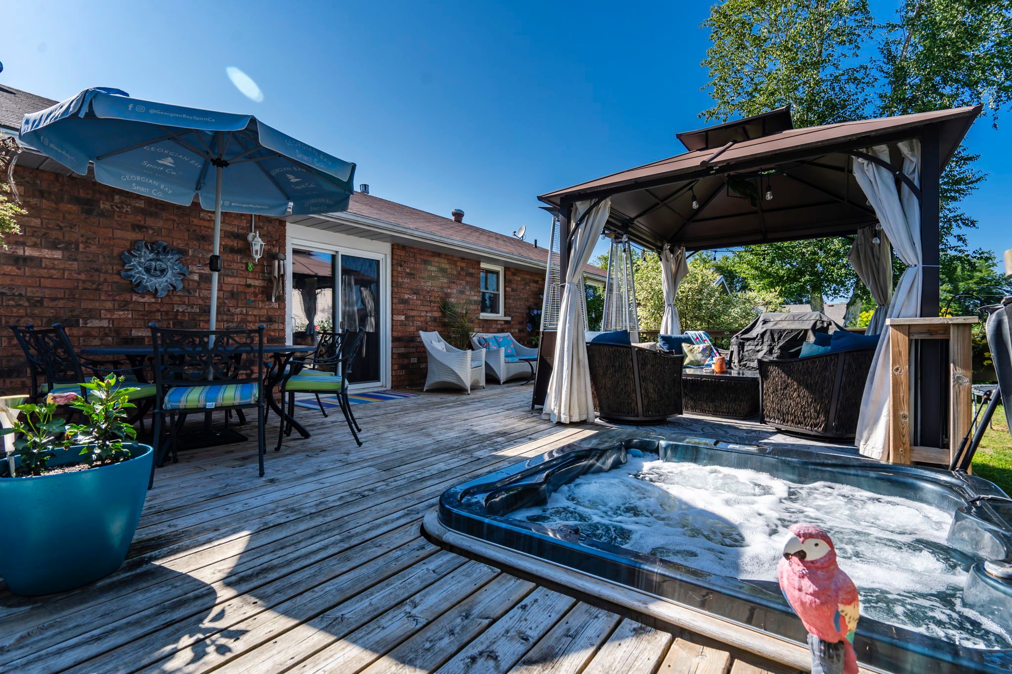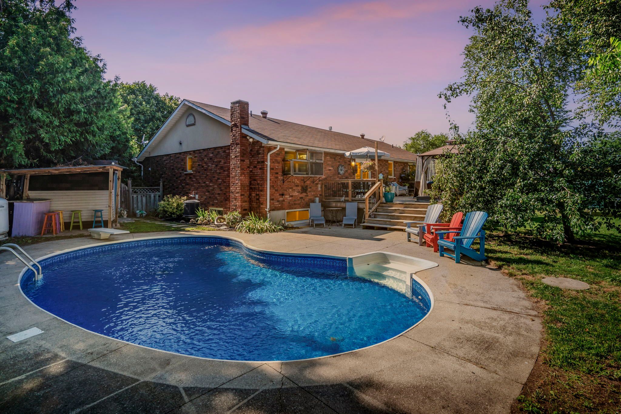 Welcome to a home where every day feels like a getaway. Tucked away on a tranquil, private court with friendly neighbors and mature trees, this expansive ranch bungalow is a true entertainer's paradise and a serene family sanctuary. With over 3,100 sq ft of finished living space, including 1,740 sq ft on the main floor, this home provides a flexible layout for any family. The main level boasts three large bedrooms, with an option to easily convert one back to two, while the basement offers two more. Inside, you'll find generous principle rooms including a large kitchen with granite countertops and lots of storage, 4 fully renovated bathrooms with granite countertops. Downstairs includes a massive family room and a spacious rec room with a wet bar, perfect for hosting or simply relaxing. Step outside to your stunning backyard oasis. Enjoy the sparkling pool, unwind in the hot tub, and host memorable summer gatherings on the large deck complete with a pool bar. This prime location offers the ultimate in convenience, just minutes from everything. Tee off at nearby golf courses, relax on beautiful beaches, explore scenic walking and biking trails, or hit the slopes for thrilling skiing and snowboarding. Don't miss the chance to make this exceptional property your own.