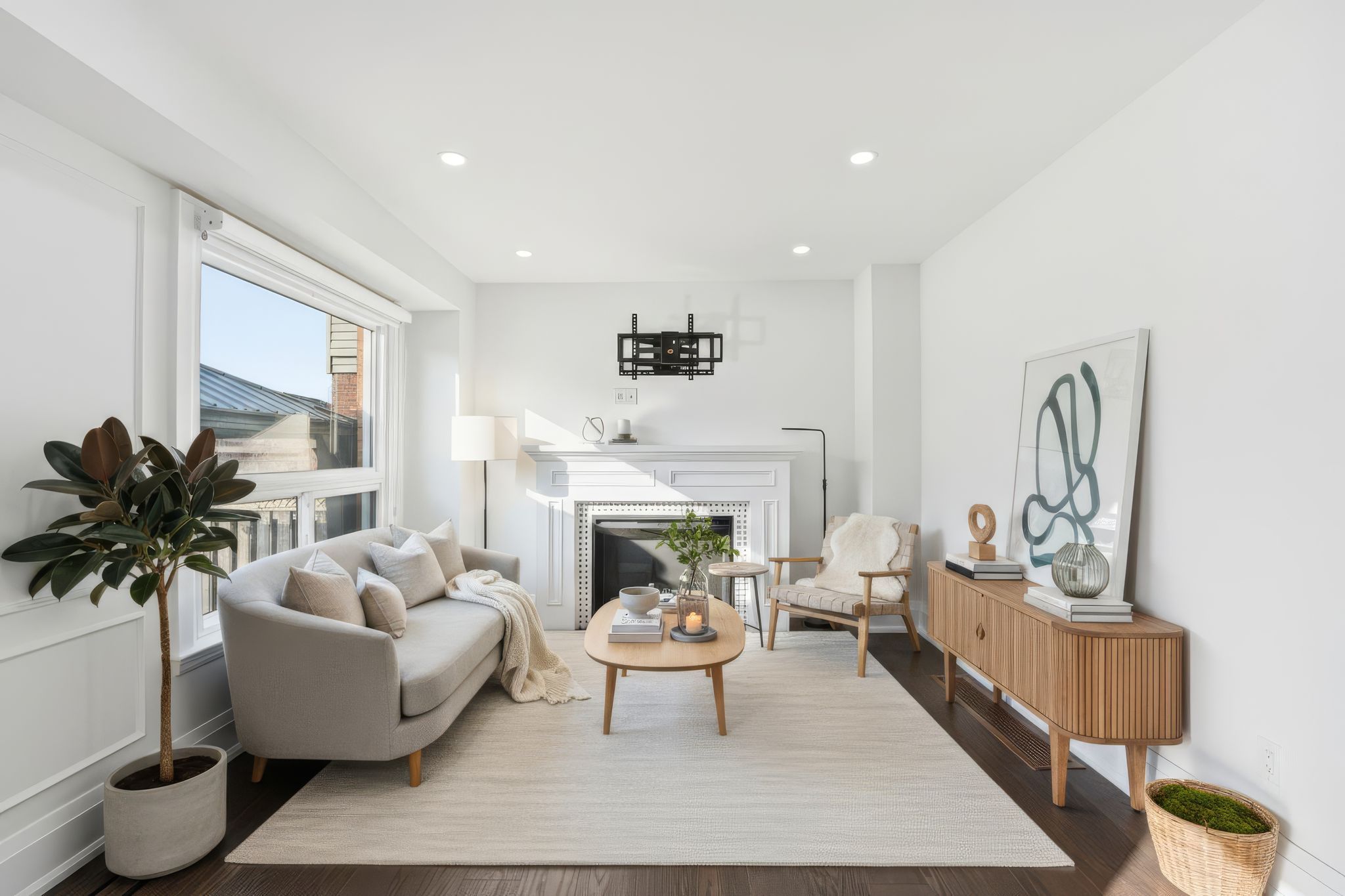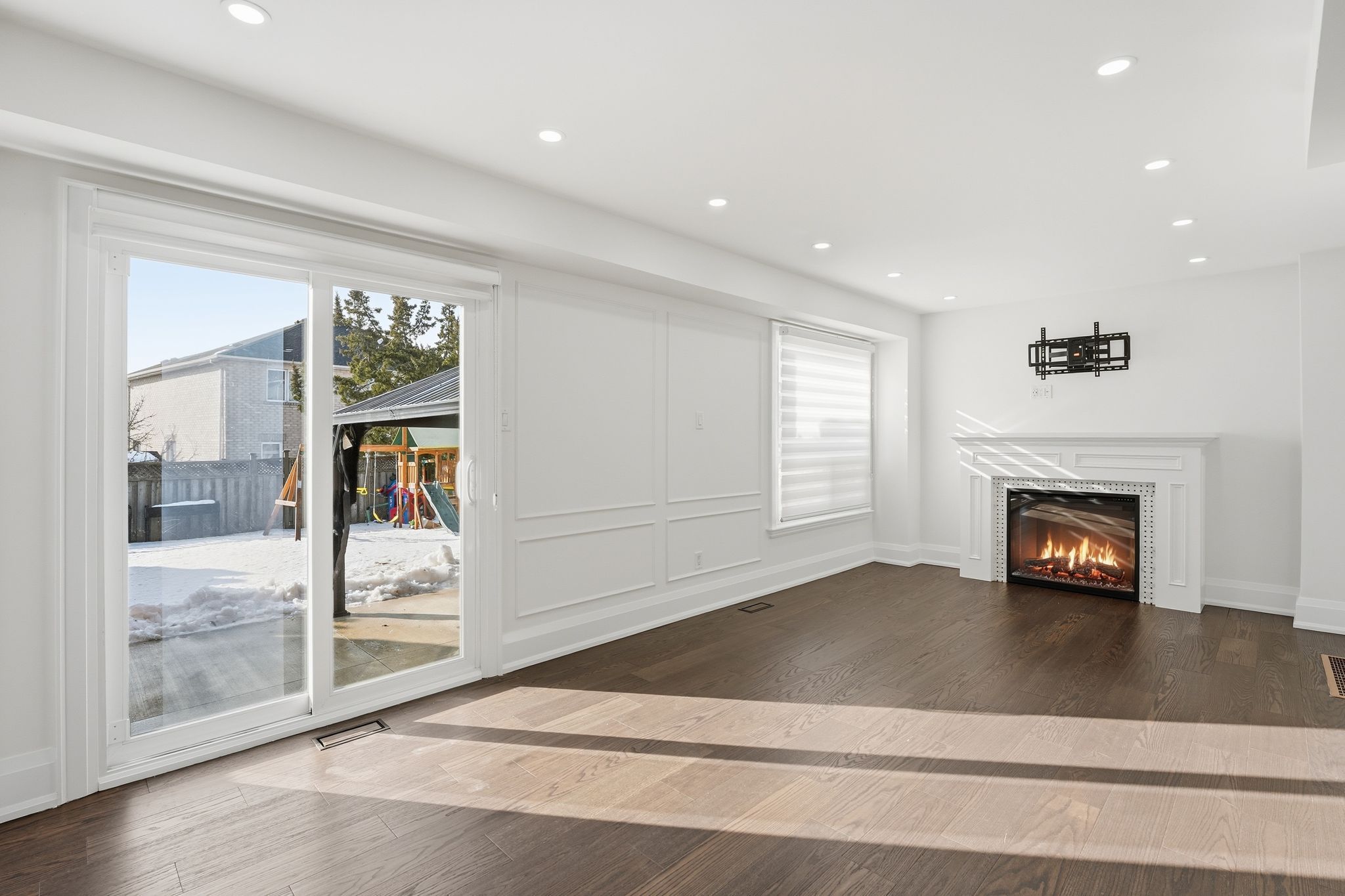 • Bright open-concept layout with a cozy family room and classic fireplace.