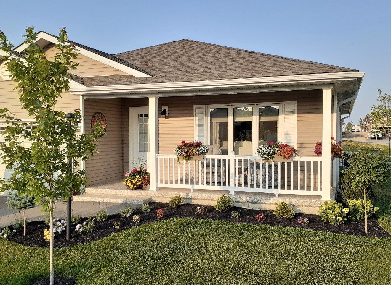 Gorgeous bungalow located on a premium corner lot in the very desirable "bluffs at huron!" this immaculate "stormview" model features over $116k in upgrades! Step inside the front foyer and you'll be very impressed with the bright open concept and warm welcoming feeling! The living room is stunning and boasts wall to wall custom built-in shelving, napoleon tri-vista electric fireplace and 65" sony tv which is included in the purchase price! The kitchen provides an abundance of upgraded cabinetry with soft closing doors and crown moulding, premium appliances, center island, quartz counter tops and walk-in pantry. There's a dining area adjacent to the kitchen with large south facing window offering an abundance of natural light. The cozy sunroom also offers tons of light and sports upgraded terrace doors leading to a spacious wooden deck. The primary bedroom offers a walk-in closet and 3pc en-suite bath including vanity with quartz countertop. The second bedroom and 4 pc main bath are located just down the hall. Plenty of storage options are available in the home as well, with lots of closets and storage in the full crawl space. Additional features include replacement premium engineered hardwood flooring throughout, brought in from "craft artisan wood floors" of burnaby, bc and installed over 1/2" plywood! There are also custom hunter douglas blinds throughout along with upgraded light fixtures and pot lights. The separate laundry room offers lg front load appliances on pedestals and has direct access to the 1. 5 car heated garage which has epoxy coated flooring. The covered front porch also sports premium epoxy covered concrete! This impressive home is located in an upscale adult land lease community, with private recreation center and indoor pool and located along the shores of lake huron, close to shopping and several golf courses.