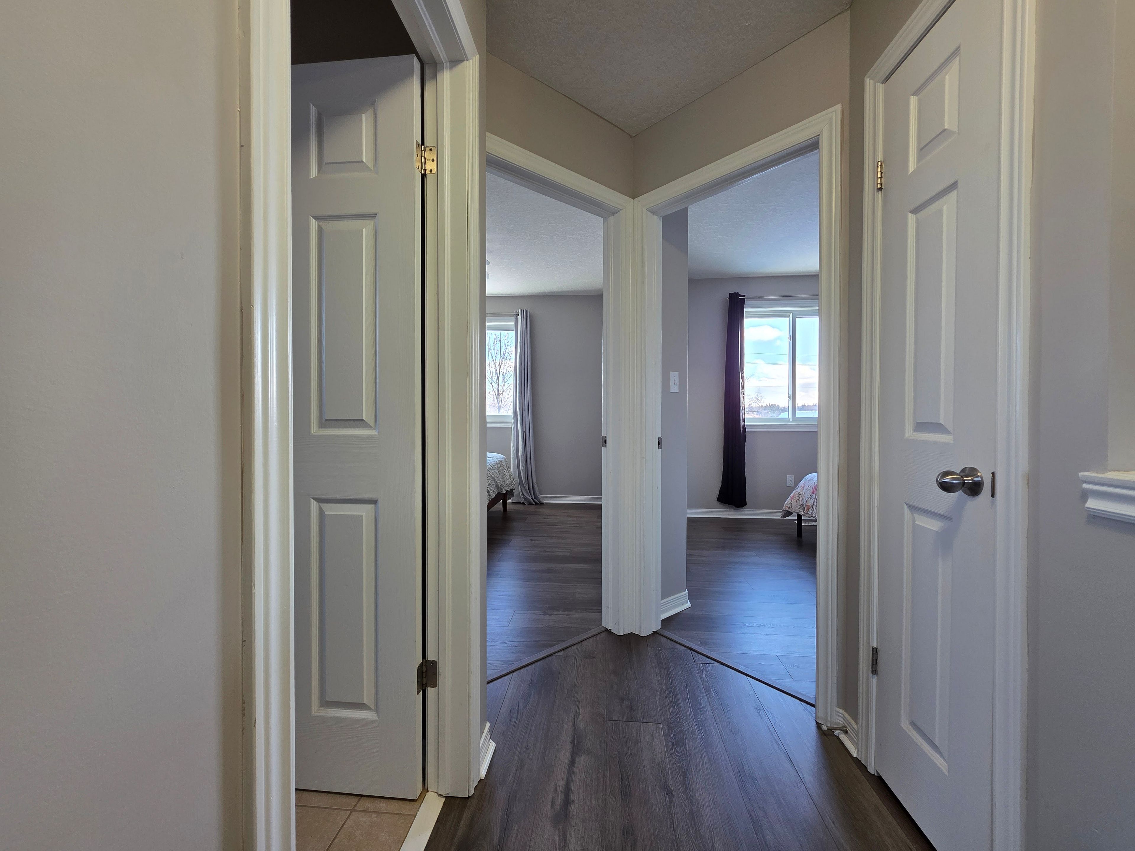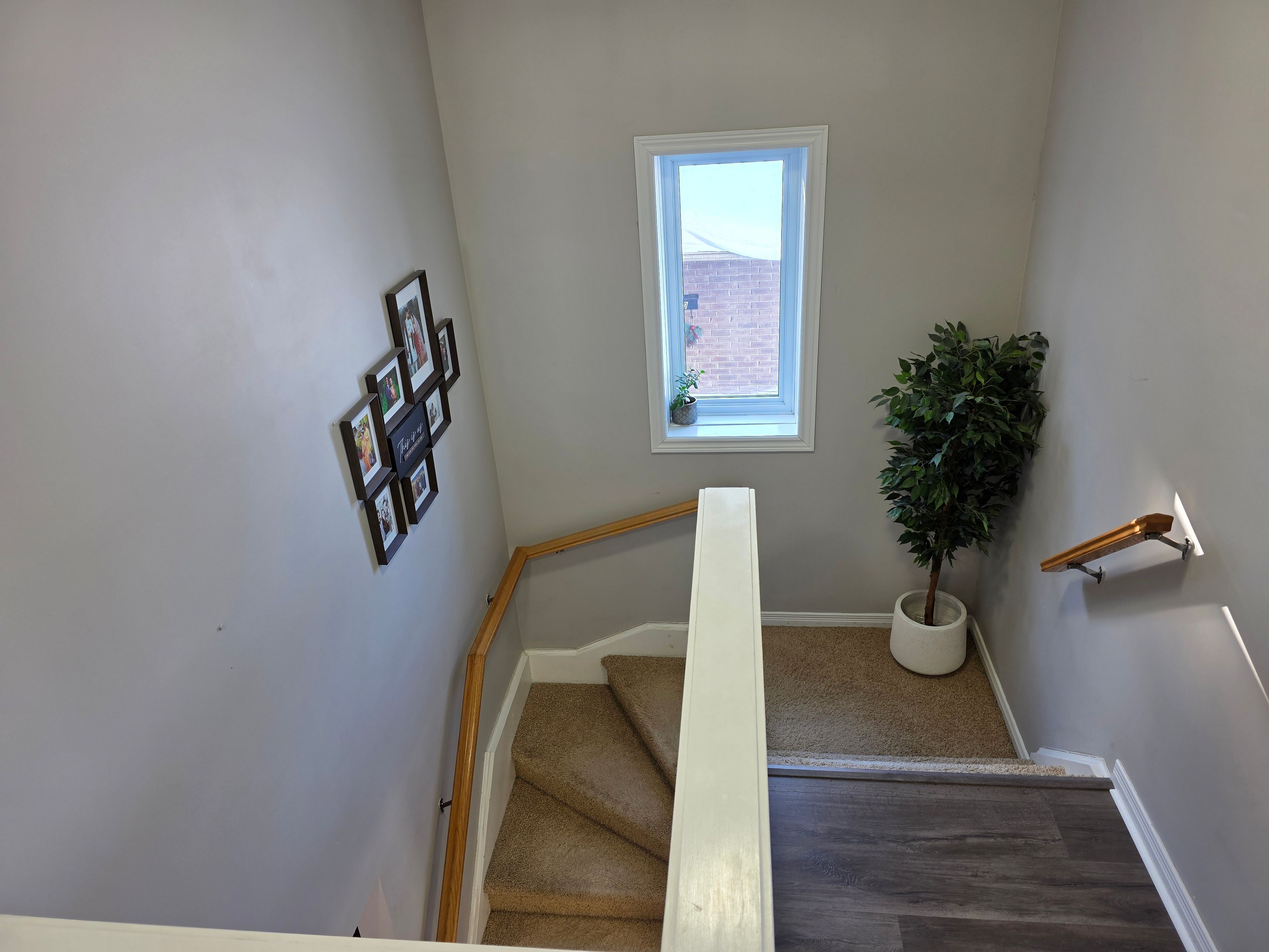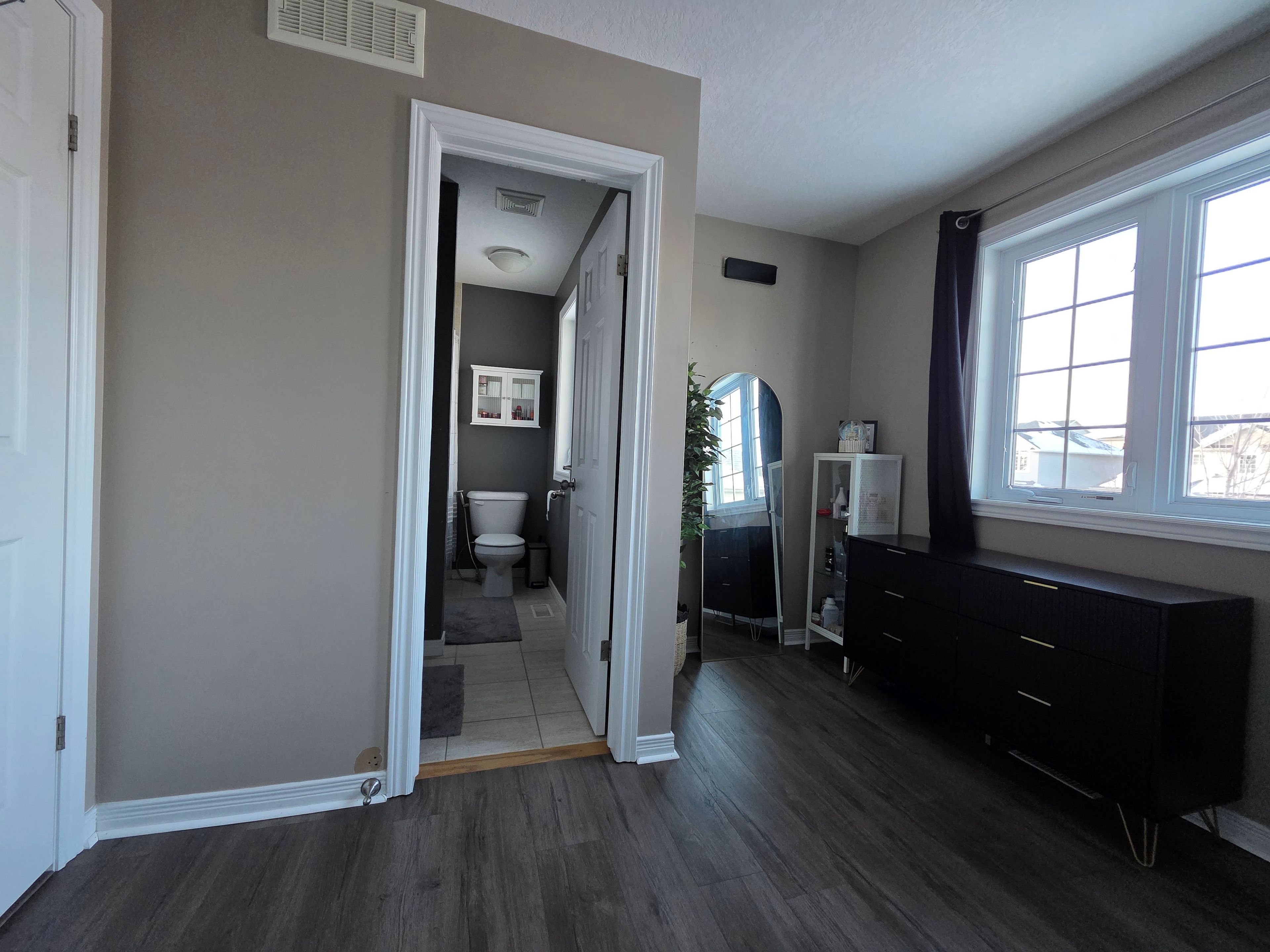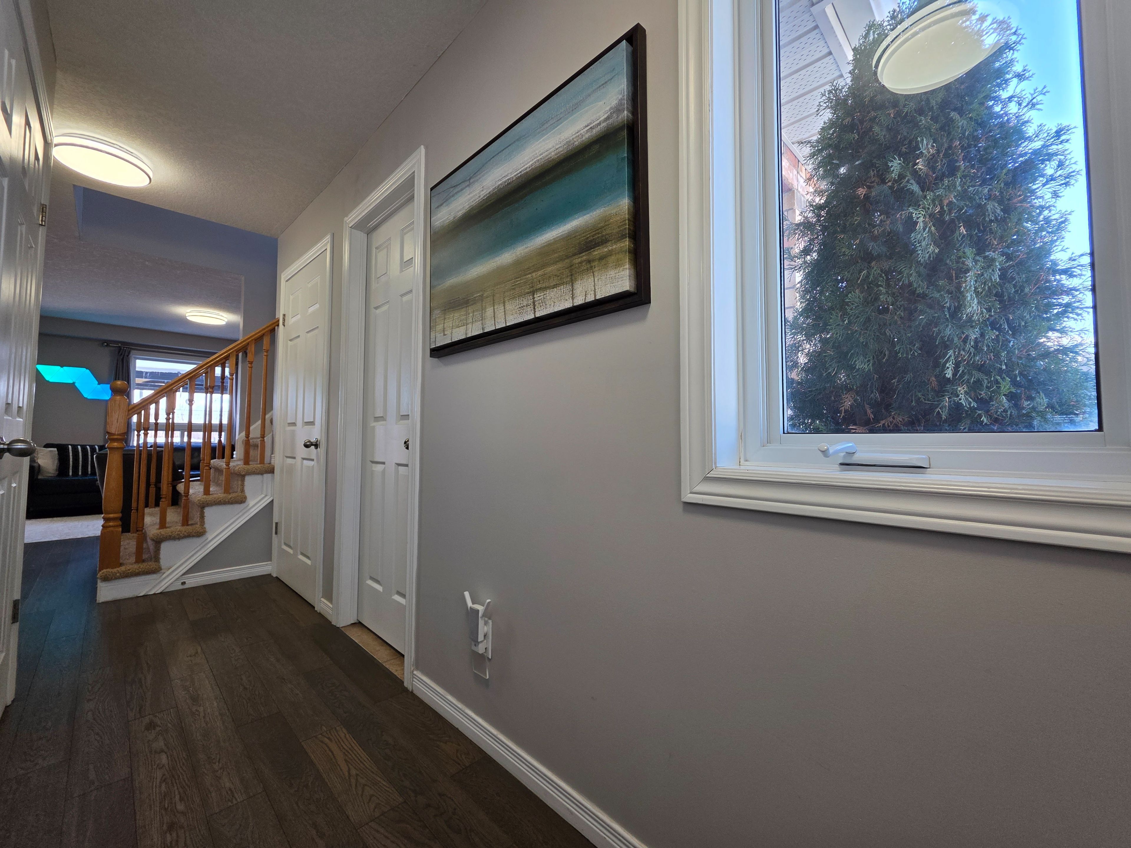 Welcome to this well-maintained 3-bedroom, 2. 5-bathroom home offering comfort, functionality, and an ideal location. The galley-style kitchen is designed for efficient everyday living. It opens to the dining area with a sliding door leading to a large, fully fenced backyard, providing privacy with no rear neighbours. The main level features a bright, open-concept layout with a spacious living room, perfect for entertaining or relaxing. Upstairs, the primary bedroom offers a private retreat complete with a 4-piece ensuite and two generous closets. Two additional well-sized bedrooms and a second 4-piece bathroom complete the upper level. The unfinished basement presents endless potential for future living space, whether a home gym, media room, or office. Additional highlights include a large paved driveway, an attached insulated single-car garage, and recently updated shingles. Ideally located on a quiet dead-end street, this home offers quick access to highway 401 and nearby exits, making commuting easy. A hospital, along with schools, parks, shopping, and dining, is just minutes away, adding to the convenience of this desirable neighbourhood. Don't miss the opportunity to make this property your home. Schedule your private showing today.