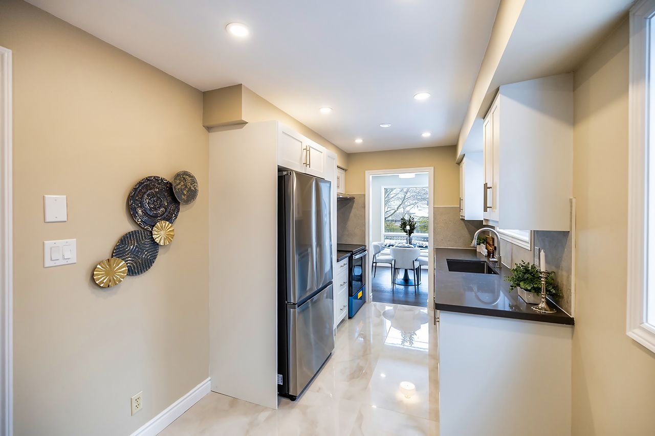 Welcome to this exquisite family residence nestled within a highly coveted courtice neighborhood. Boasting three generously proportioned bedrooms and one and a half refined bathrooms, this recently renovated home presents a luminous, inviting interior adorned with upgraded engineered hardwood plank flooring and freshly painted walls throughout. Ambient pot lights further illuminate the abundant natural light, while a welcoming foyer reveals a stylish powder room and gleaming porcelain tile floors. Thoughtfully curated updates include a bespoke kitchen featuring luxurious quartz countertops, brand new stainless steel appliances, contemporary lighting, and a charming eat-in area. The open-concept living and dining spaces are freshly appointed, highlighted by a striking designer accent wall in the dining area, and offer seamless access to the rear yard-perfect for both everyday family life and elegant entertaining. The finished basement provides valuable additional living space with a versatile den, ideal for a home office or potential fourth bedroom, alongside a convenient laundry room and cold storage. Truly move-in-ready, this remarkable home is perfectly positioned near schools, shopping, the gatehouse parkette, public transit, and the 401 for easy commuting, this home effortlessly fulfils every requirement for modern, discerning homeowners. Updates- a/c and furnace 2024, main roof 2025, kitchen windows 2023, bedroom windows 2018.