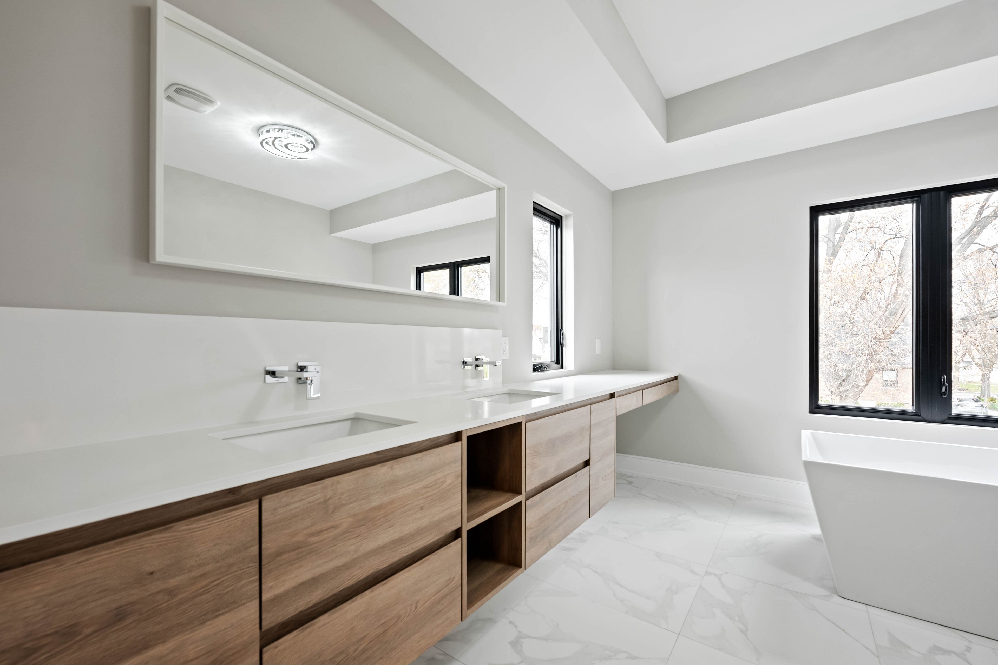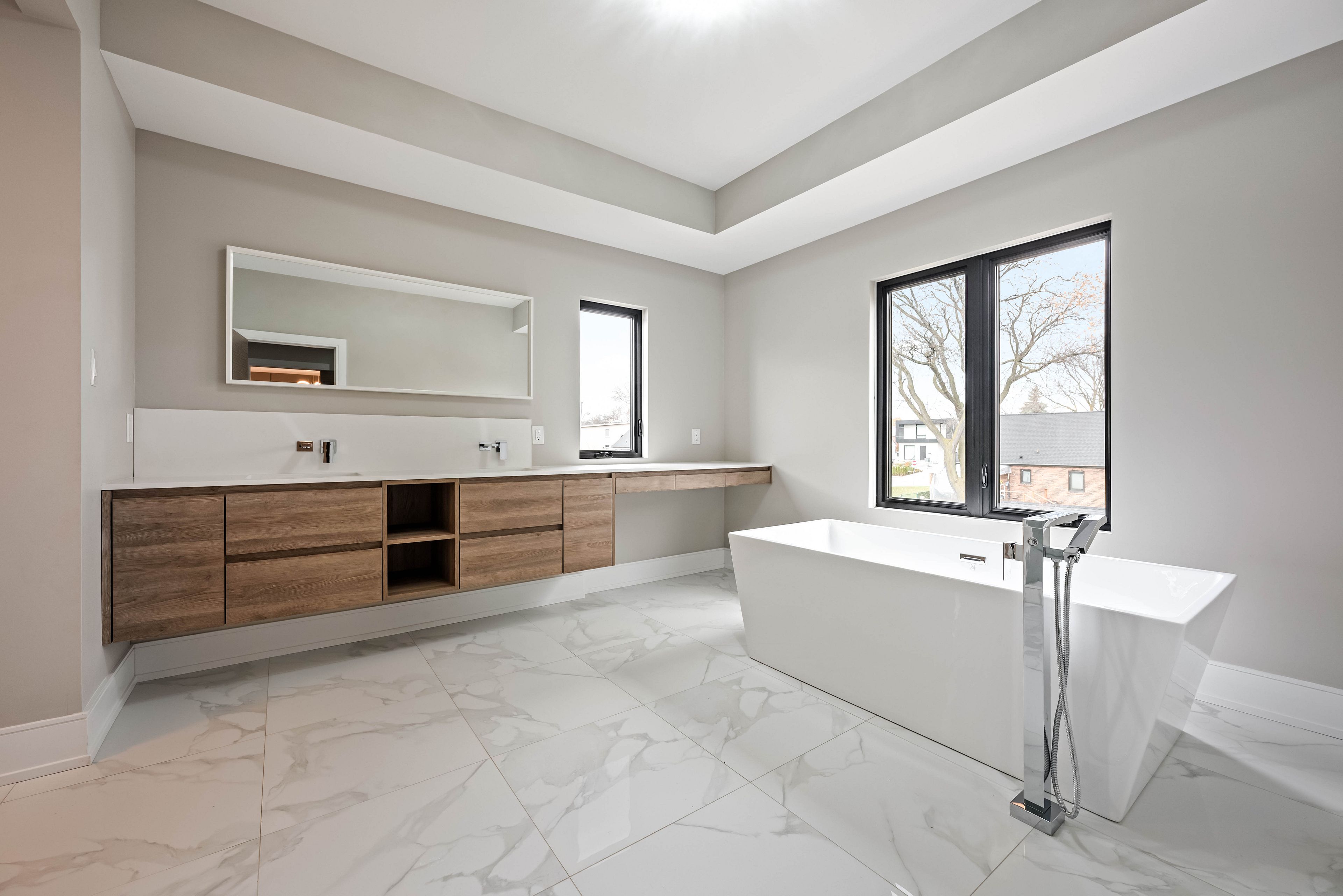 16 walsh ave, north york - modern luxury redefined. Welcome to an architectural masterpiece where stunning contemporary design meets exceptional craftsmanship. This brand-new 5-bed, 5-bath custom home offers over 3,000 sq ft of sophisticated living in one of north york's most convenient and connected neighbourhoods. From the moment you arrive, the modern stucco exterior sets the tone - sleek, elegant, and built with state-of-the-art materials including an r31 insulated wall system, premium 50-year fiberglass shingles, and high-efficiency low-e windows that maximize comfort and energy performance. Oversized sliding doors, colour-concrete driveway, full privacy fencing, and led exterior lighting complete the upscale curb appeal. Inside, every detail speaks luxury. The open-concept main floor features engineered hardwood, custom led strip lighting, and a high-efficiency fireplace wrapped in a modern feature wall. The chef-inspired kitchen boasts custom cabinetry with integrated lighting, full-height quartz backsplash, and high-end bosch appliances - perfect for everyday living or elevated entertaining. Upstairs, the primary suite is a serene retreat with a custom walk-in closet and a hotel-worthy ensuite featuring a skylit european-style shower, floating double vanity, and deep soaker tub. Each additional bedroom includes its own ensuite or shared luxury bath. With top-tier mechanicals (200-amp service, ev-ready outlet, r60 attic insulation, hrv system, and 90,000 btu furnace), lower level with bathroom, and a beautifully landscaped yard with an 8x8 deck, this home delivers unmatched comfort and durability. Located minutes from transit, yorkdale, major highways, parks, schools, and the future western north york rec centre-this is modern living at its finest. Experience the luxury lifestyle you've been waiting for at 16 walsh ave.